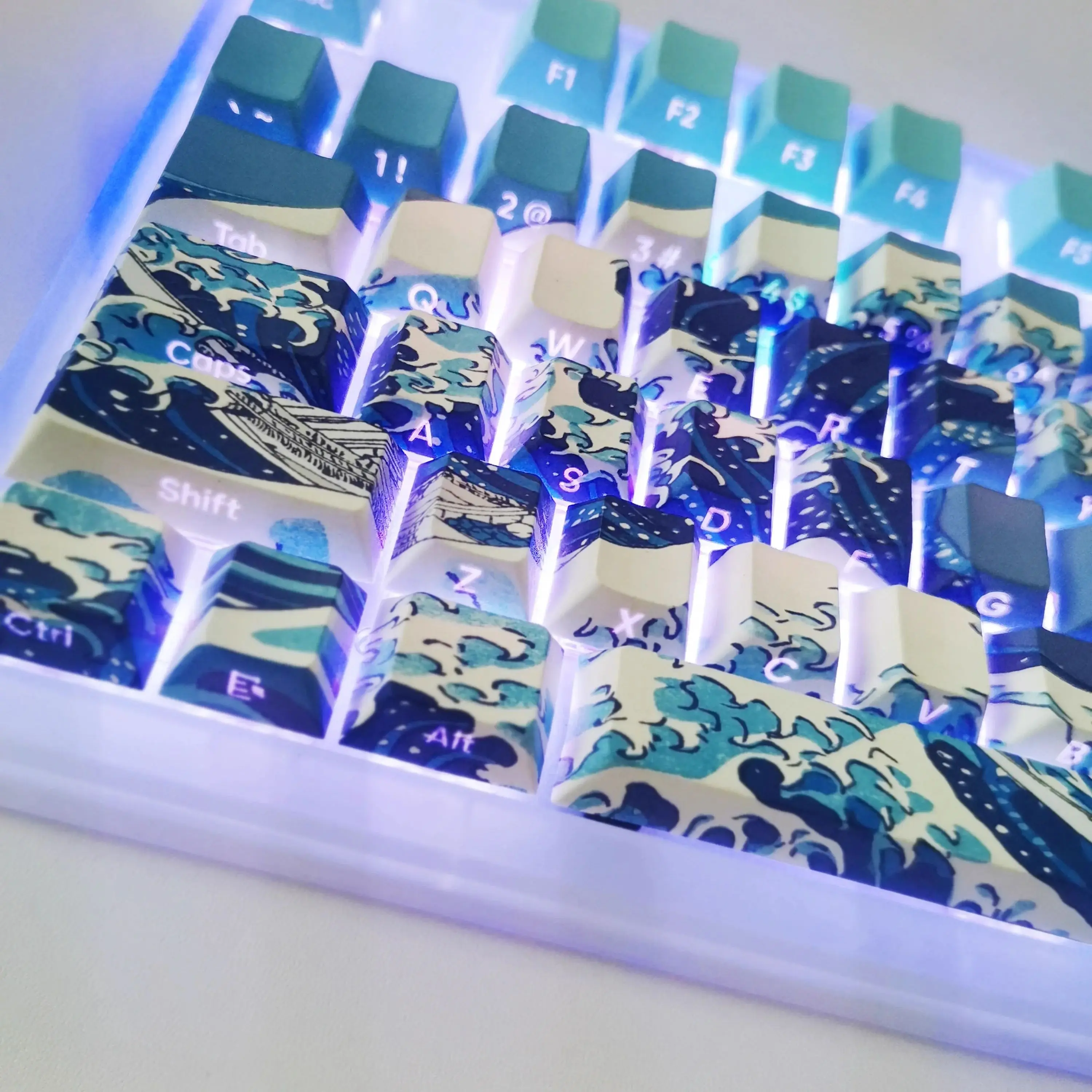 Teclas brillantes con perfil Cherry: la tapa de la tecla diseñada con el perfil Cherry clásico, diseñada para la mejor experiencia de escritura.No te cansarás incluso si lo usas durante mucho tiempo en el trabajo o jugando. 【Ampliamente compatible】Este juego de teclas personalizadas contiene 125 teclas.Puede adaptarse a la mayoría de teclados 60%/65%/75%/80%/96%/100% (61/64/68/84/75/87/96/980/104/08). 【Lo que obtienes】 Juego de 125 teclas personalizadas, nuestra garantía de 18 meses sin preocupaciones y un servicio al cliente amigable.Son solo teclas, no incluye teclado. 【Gran opción de regalo】Nuestra ola de tapa de llave kanagawa es el mejor regalo para sus familiares o amigos en Acción de Gracias, Navidad, Año Nuevo u otros días festivos. Puedes elegir el juego de teclas más adecuado para ti y tus amigos a quienes les encanta jugar.