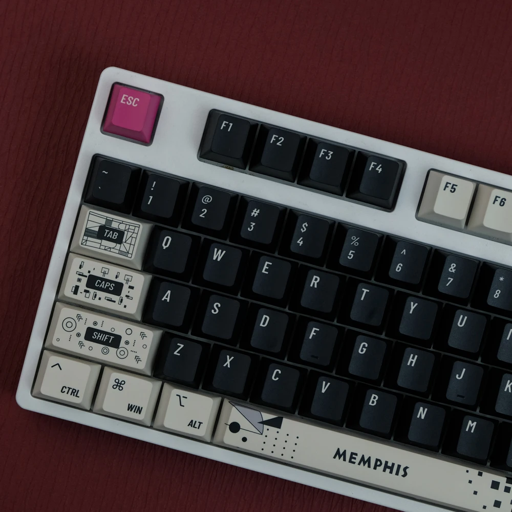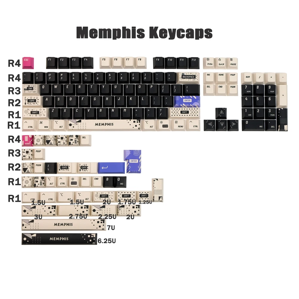 Comprar Teclas inglesas de Memphis para teclado mecánico, teclas con 142 teclas, perfil de cereza, tinte PBT, sublimación, para MX Switch 61/64/68/75/87/104