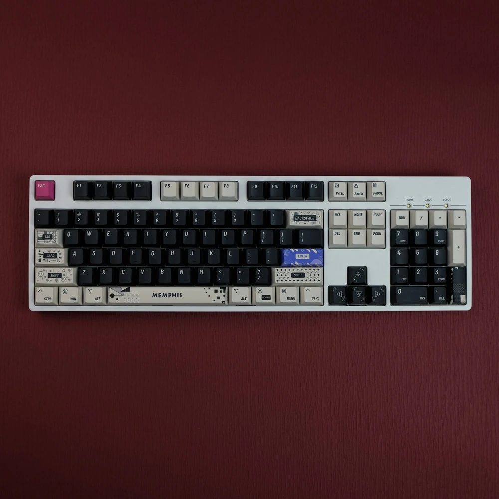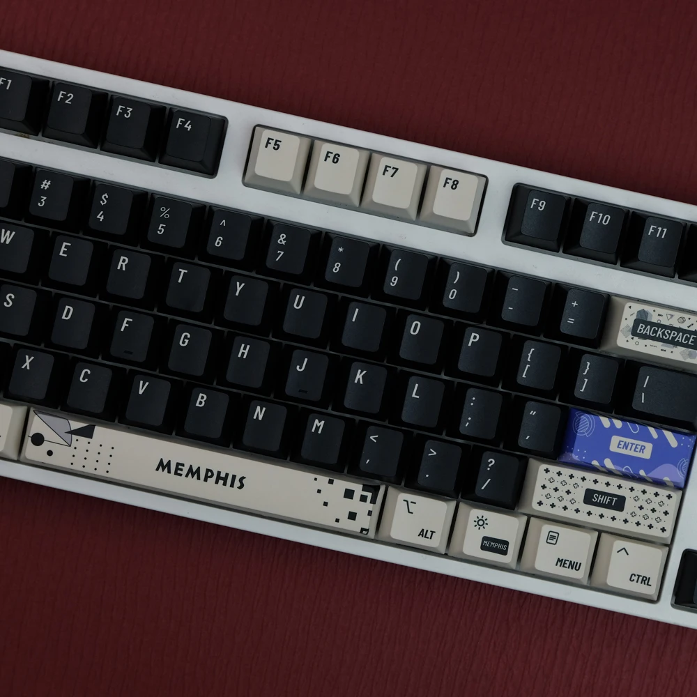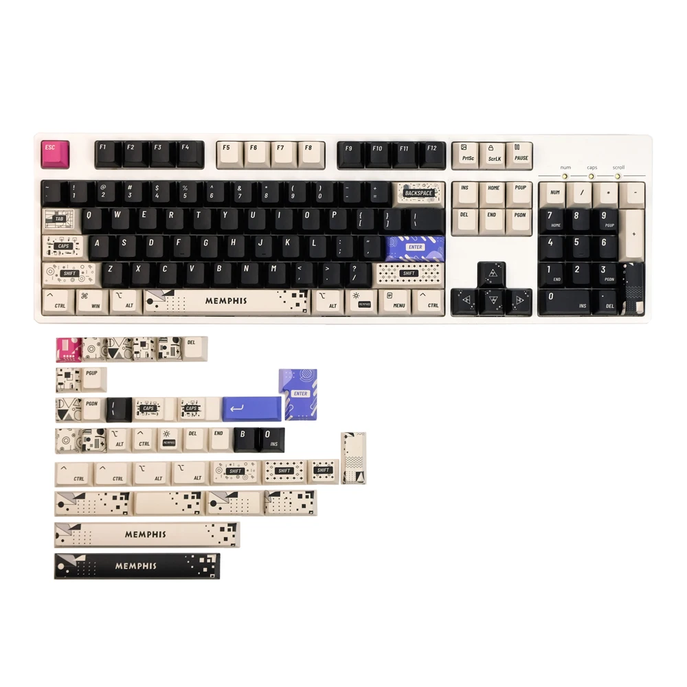 Comprar Teclas inglesas de Memphis para teclado mecánico, teclas con 142 teclas, perfil de cereza, tinte PBT, sublimación, para MX Switch 61/64/68/75/87/104