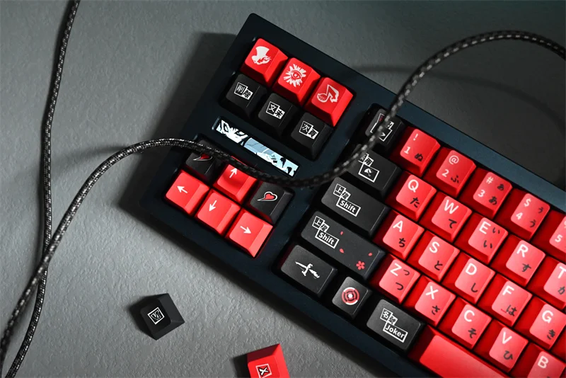 Comprar Teclas japonesas de 142 teclas, color negro y rojo, perfil de cereza, teclas de sublimación de tinte PBT para teclado mecánico MX Switch 61/68/75/84/87