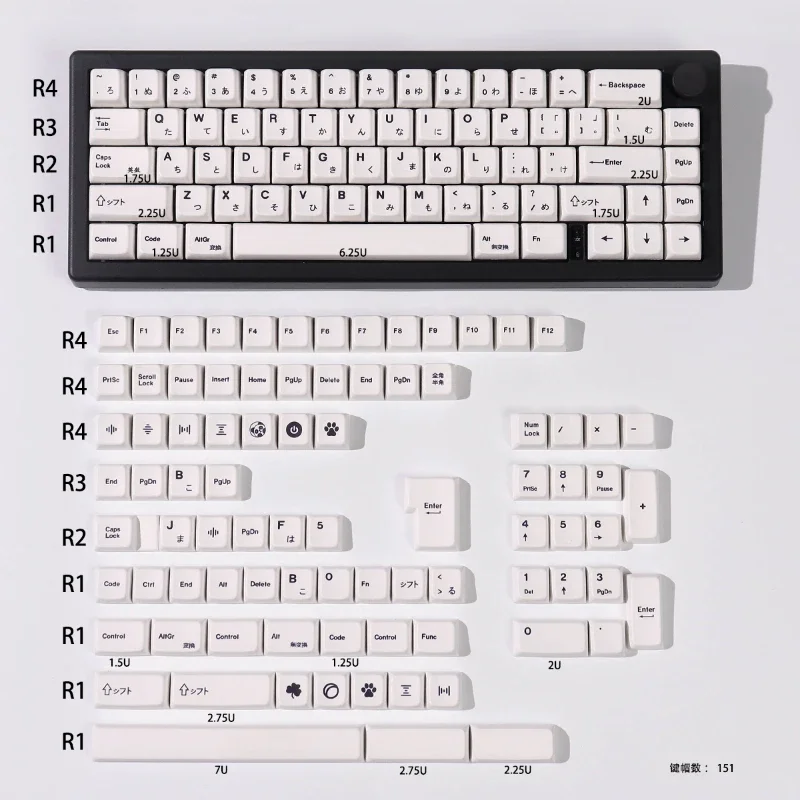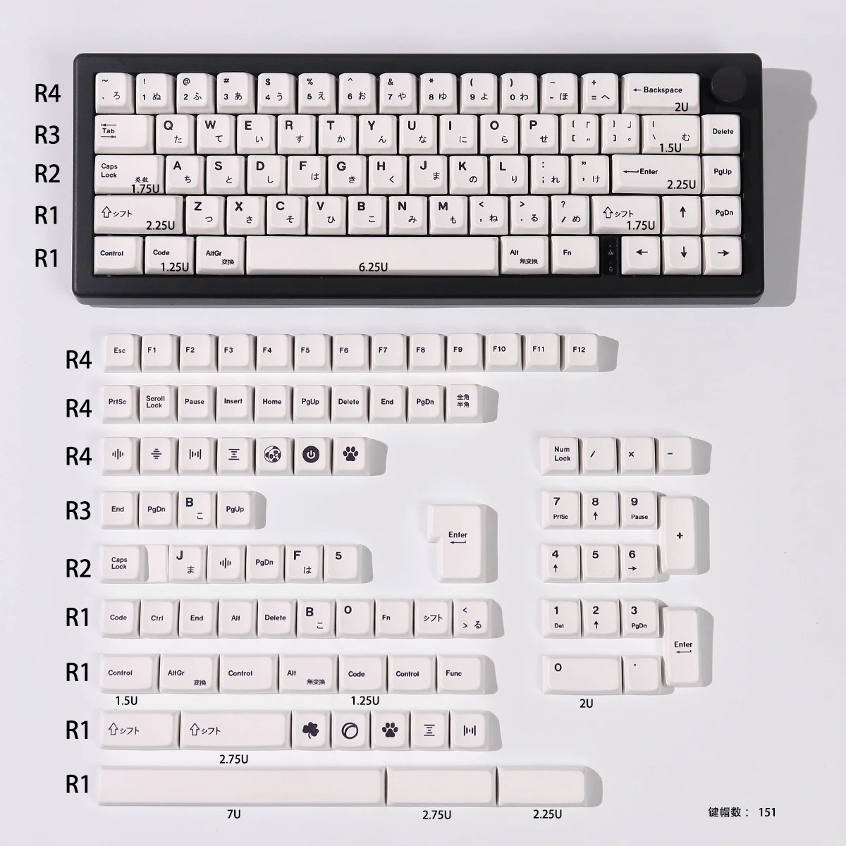 Teclas japonesas blancas minimalistas, teclas personalizadas de perfil PBT MDA, teclas de punto de Anime de dibujos animados bonitos para teclado mecánico de juegos