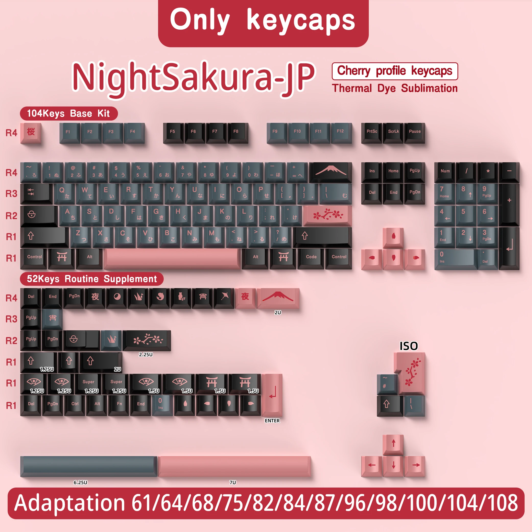 Comprar Teclas japonesas Night Sakura para teclado mecánico coreano brasileño español francés tinte Sub ISO 7U cereza perfil PBT Keycap