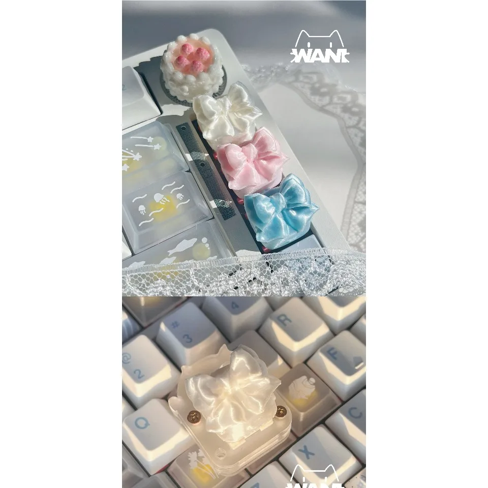 Teclas con lazo de seda, teclas hechas a mano personalizadas, impresión 3D, teclas de perfil de cereza para teclado para juegos, accesorios de teclado mecánico
