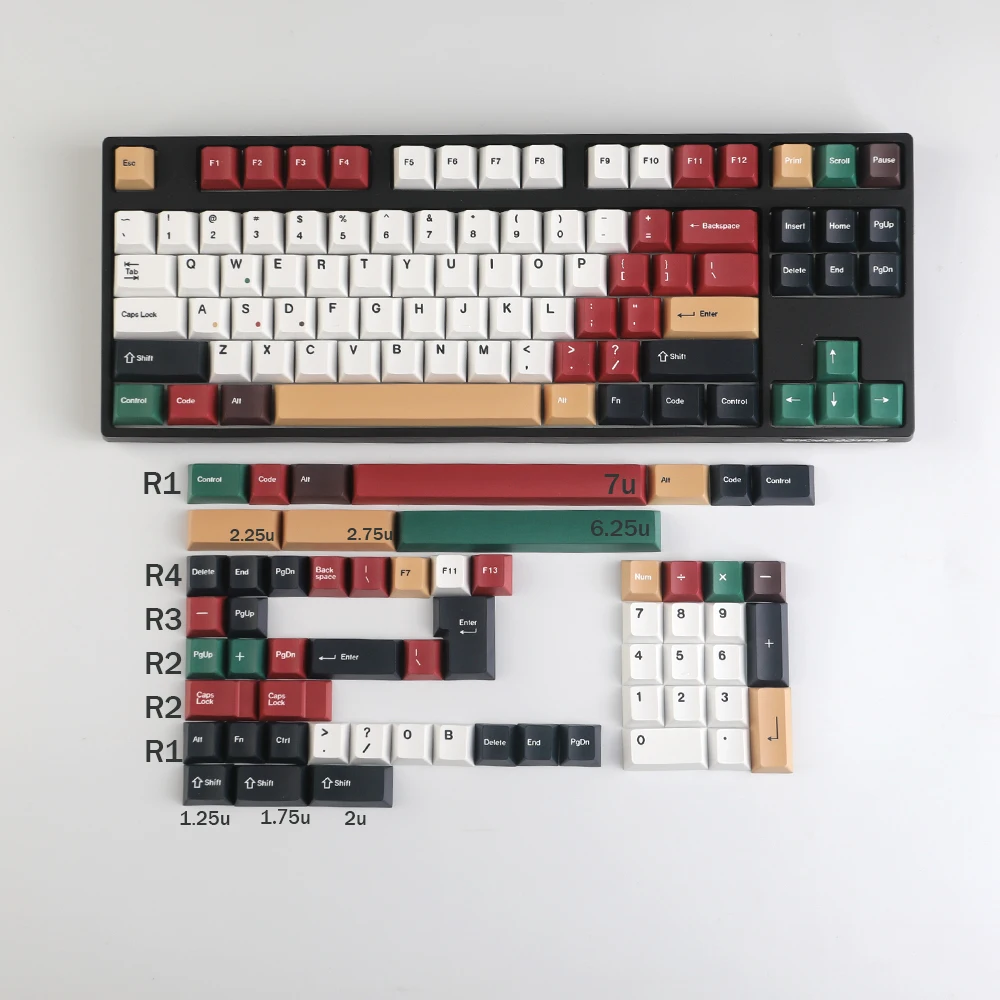 Número de teclas: 145 teclas, incluye 1,25U 1.75U 2U shift, 1.5U alt ctrl, 2.25U 2.75U 6.25U 7U barra espacial, ISO Enter