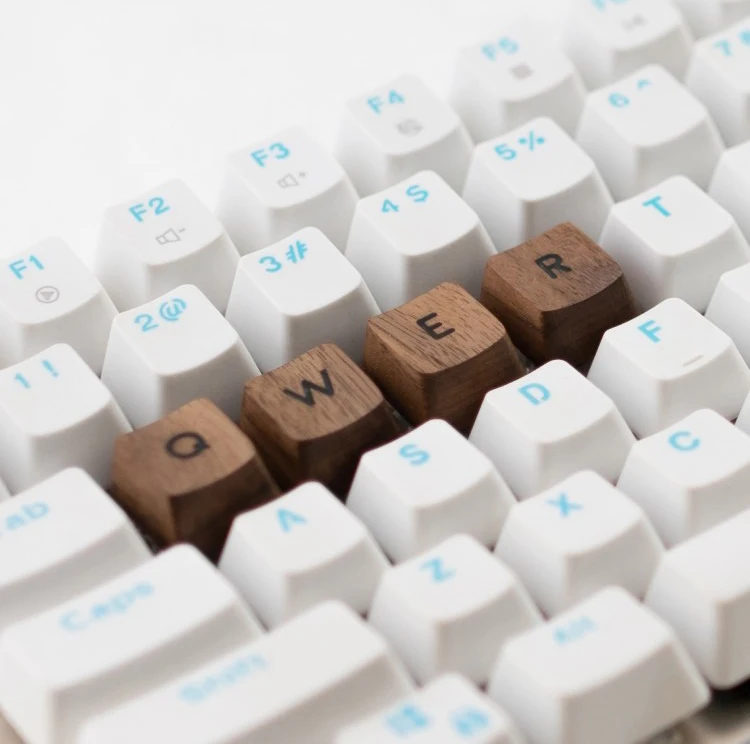 Las teclas de madera de nogal están grabadas, teclas de Teclado mecánico de madera maciza, teclas translúcidas OEM personalizadas, regalo personalizado