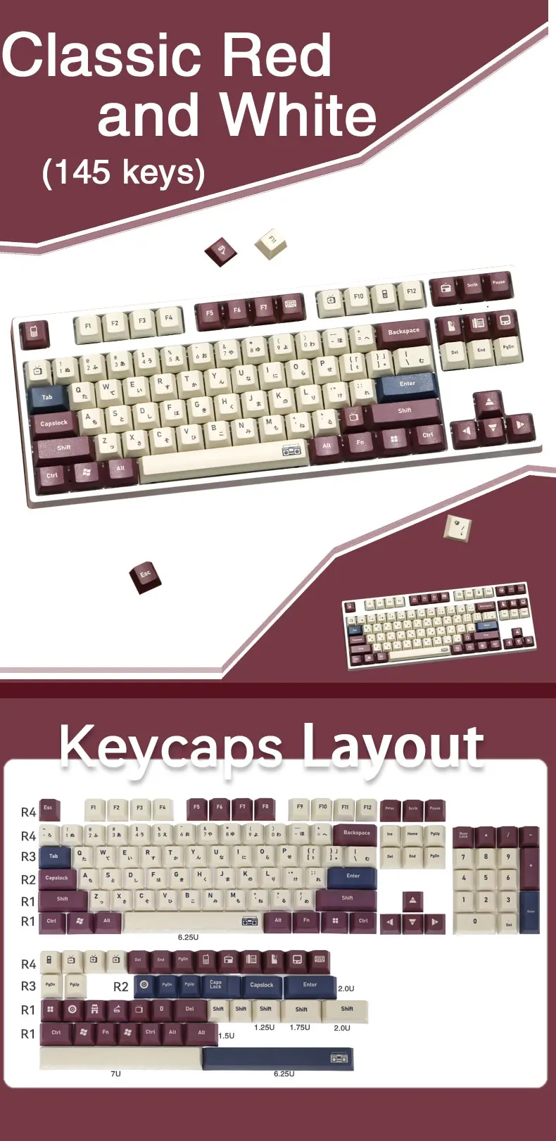 Comprar Teclas de máquina roja y blanca de 145 teclas, perfil de cereza, tapa de tecla de sublimación de tinte PBT para teclado mecánico MX Switch GK61/64/68/75