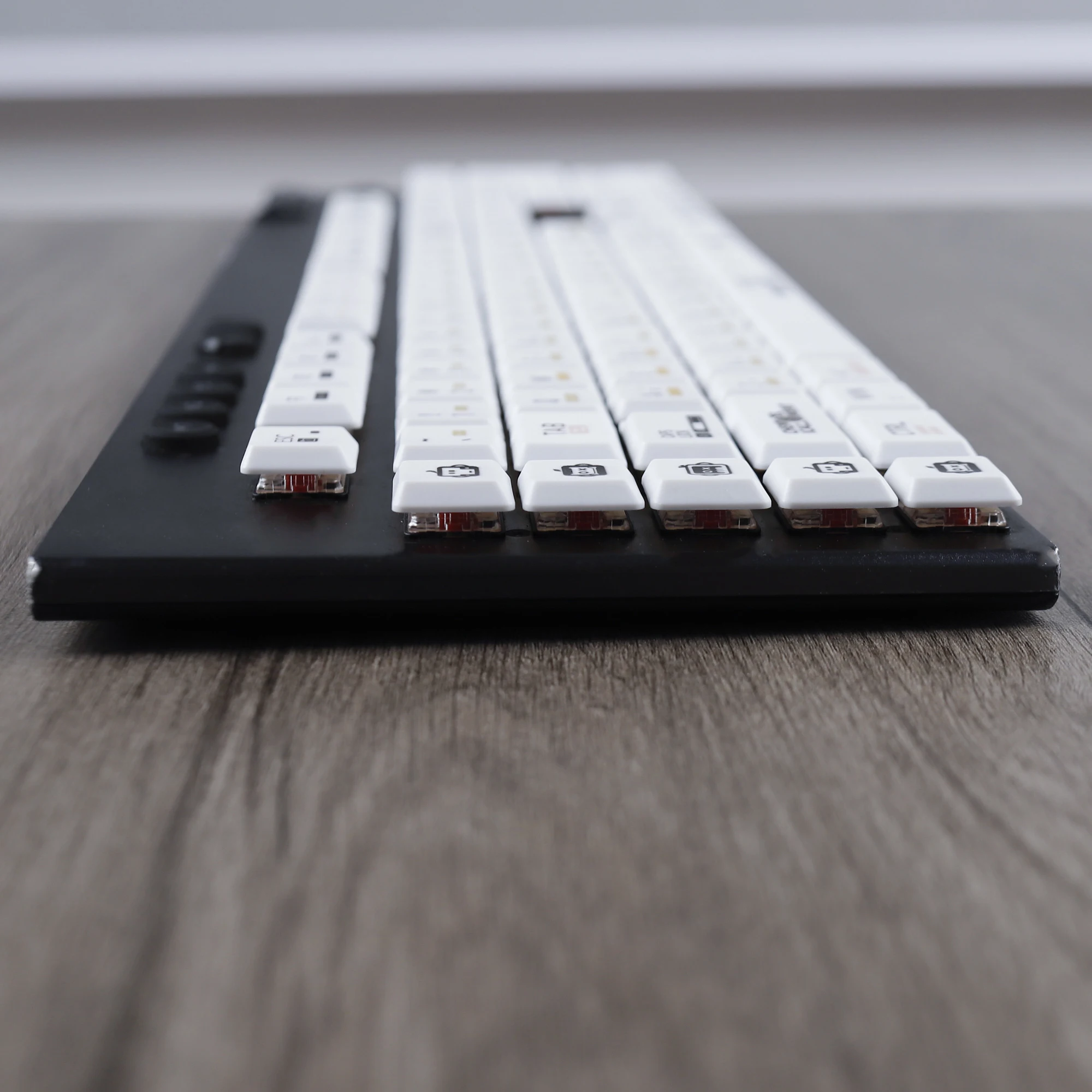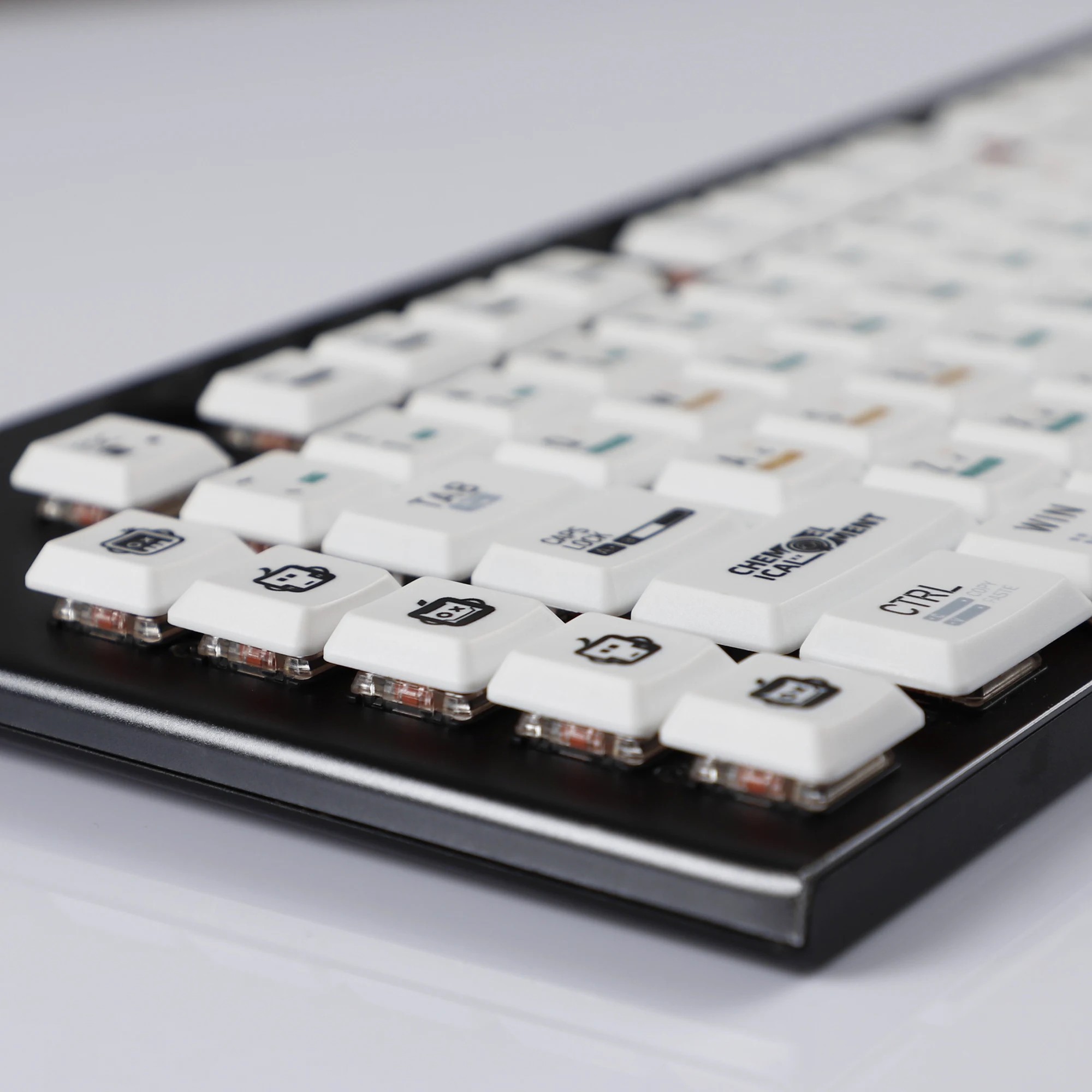 The keycap is made of durable PBT material,the thickness is about 1mm.The white keycap is very