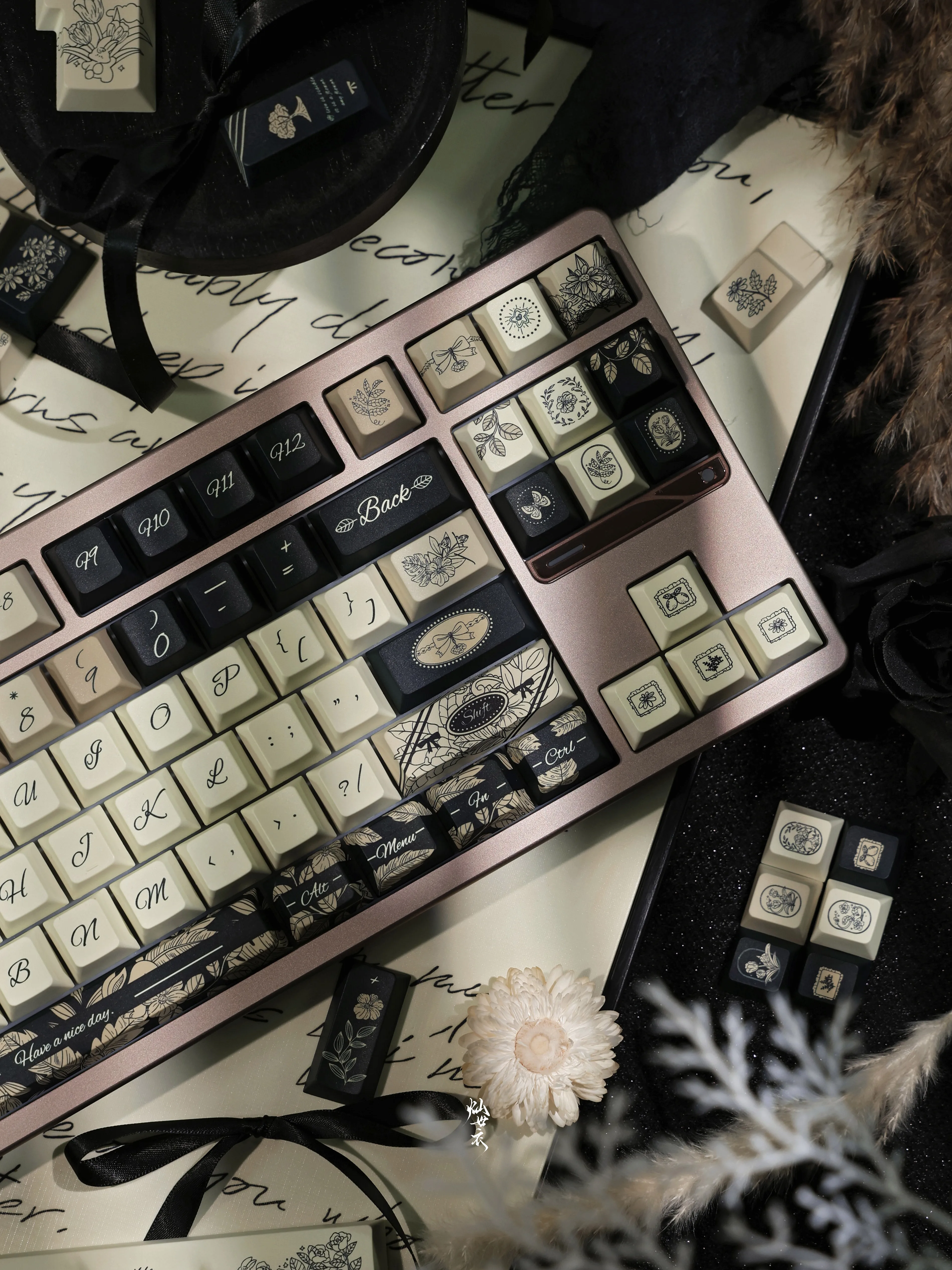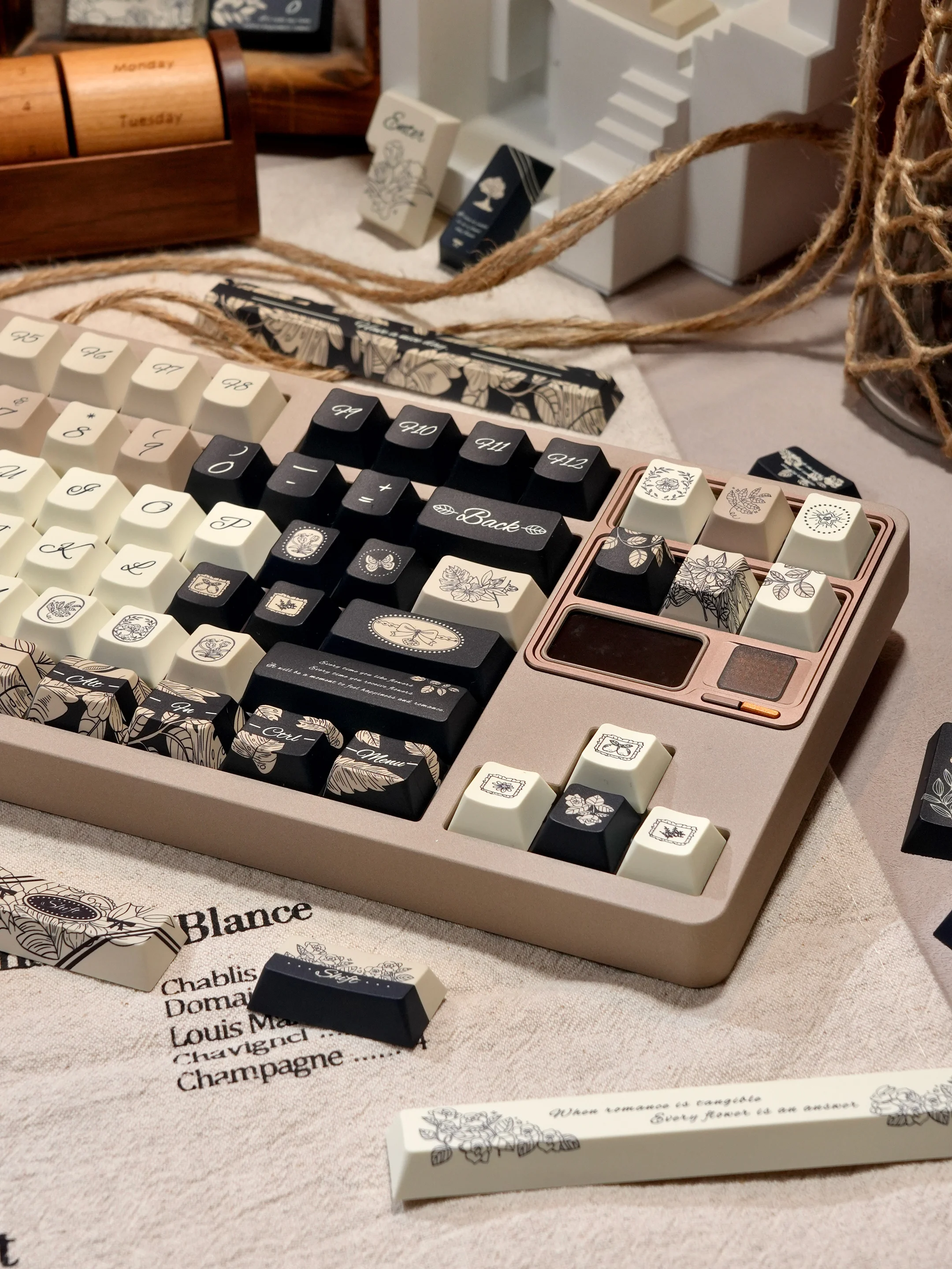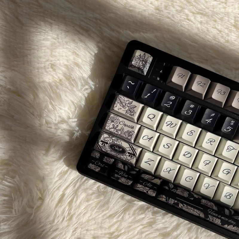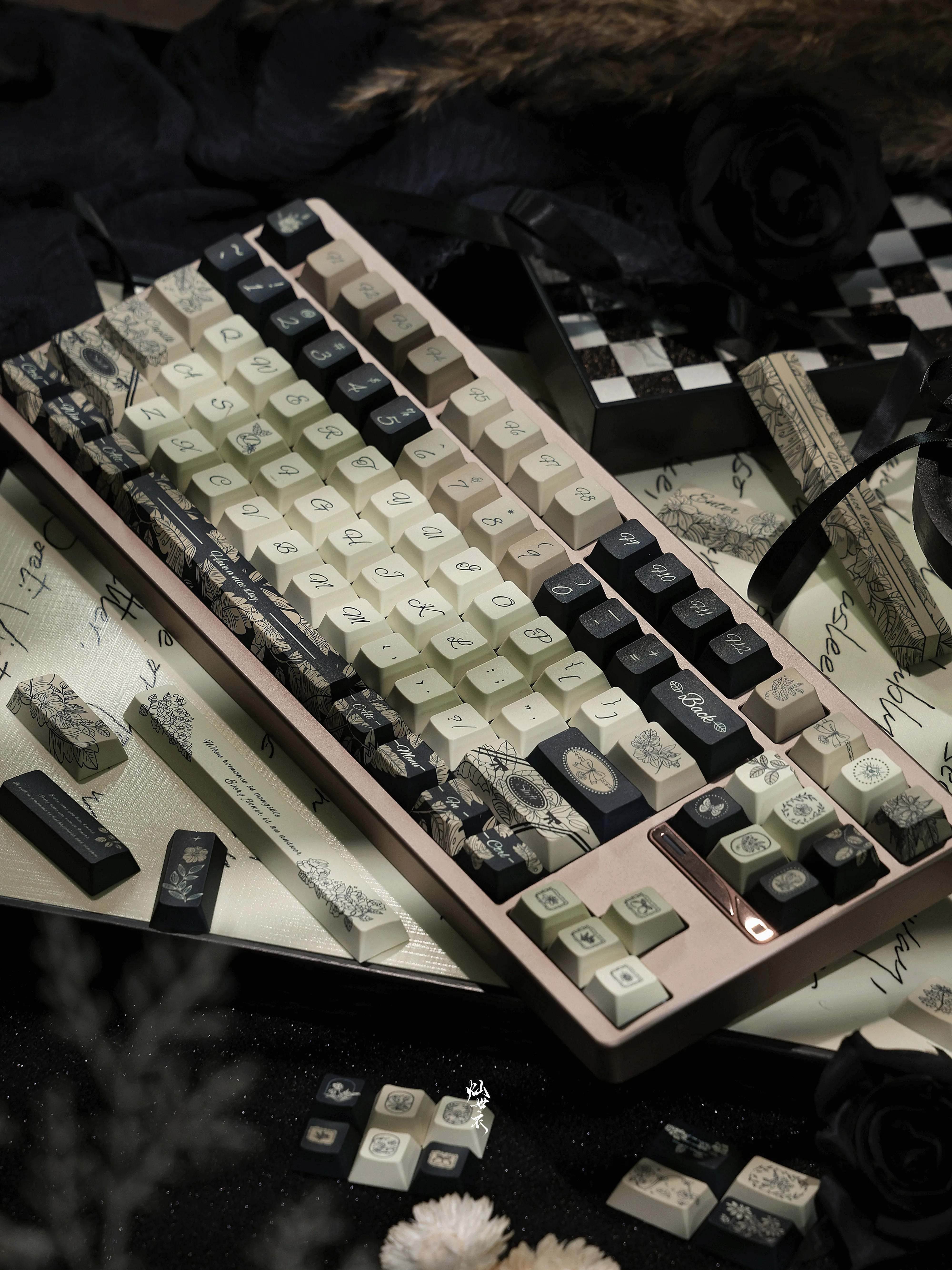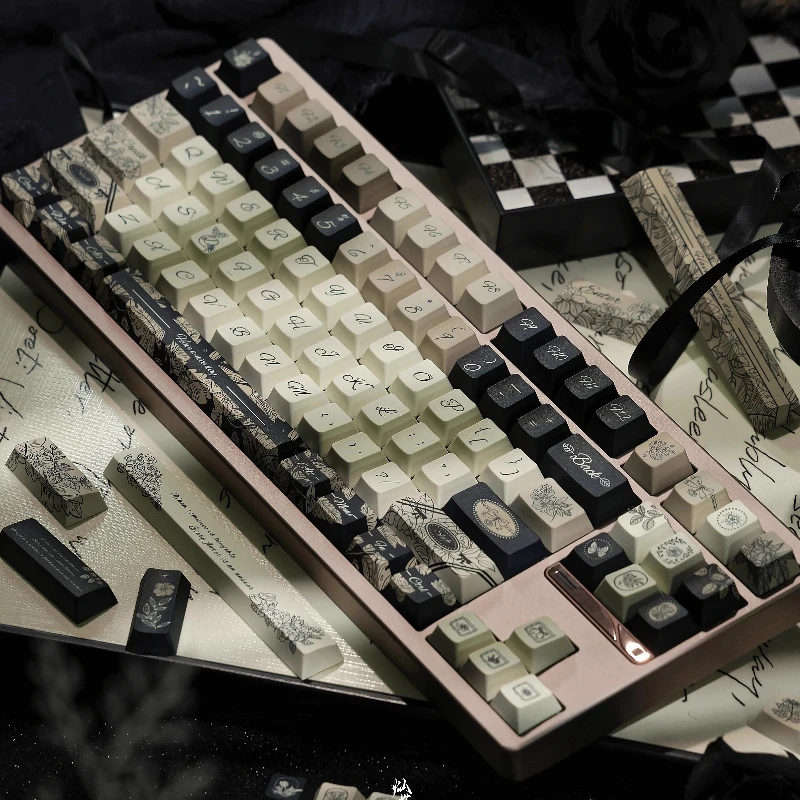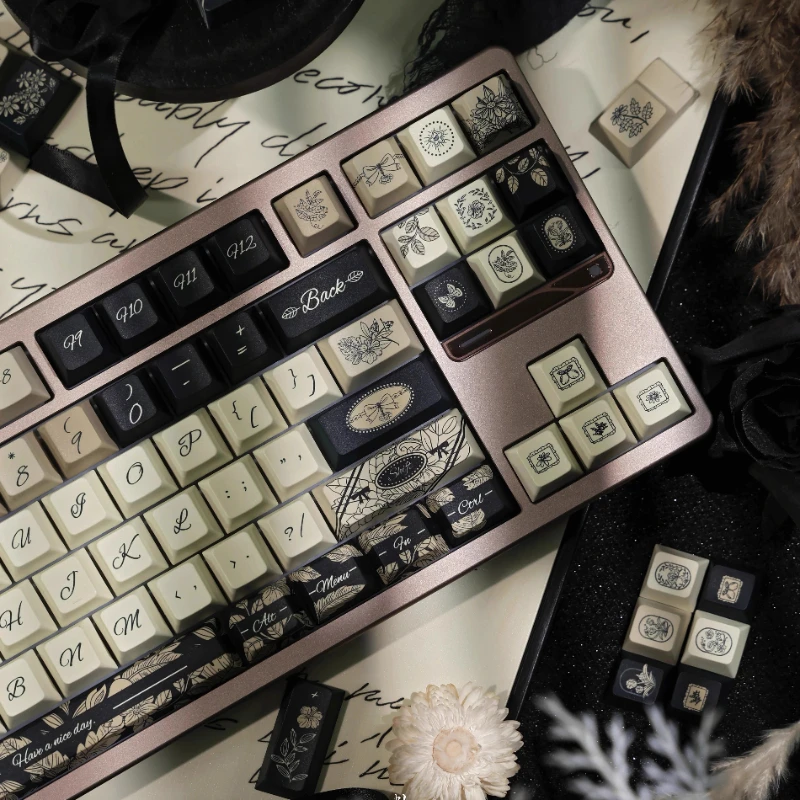 Teclas de niebla con rosa, tapa de tecla de perfil de cereza PBT personalizada, bonita tapa de tecla de punto de sublimación Retro de estilo chino para diseño de jugadores