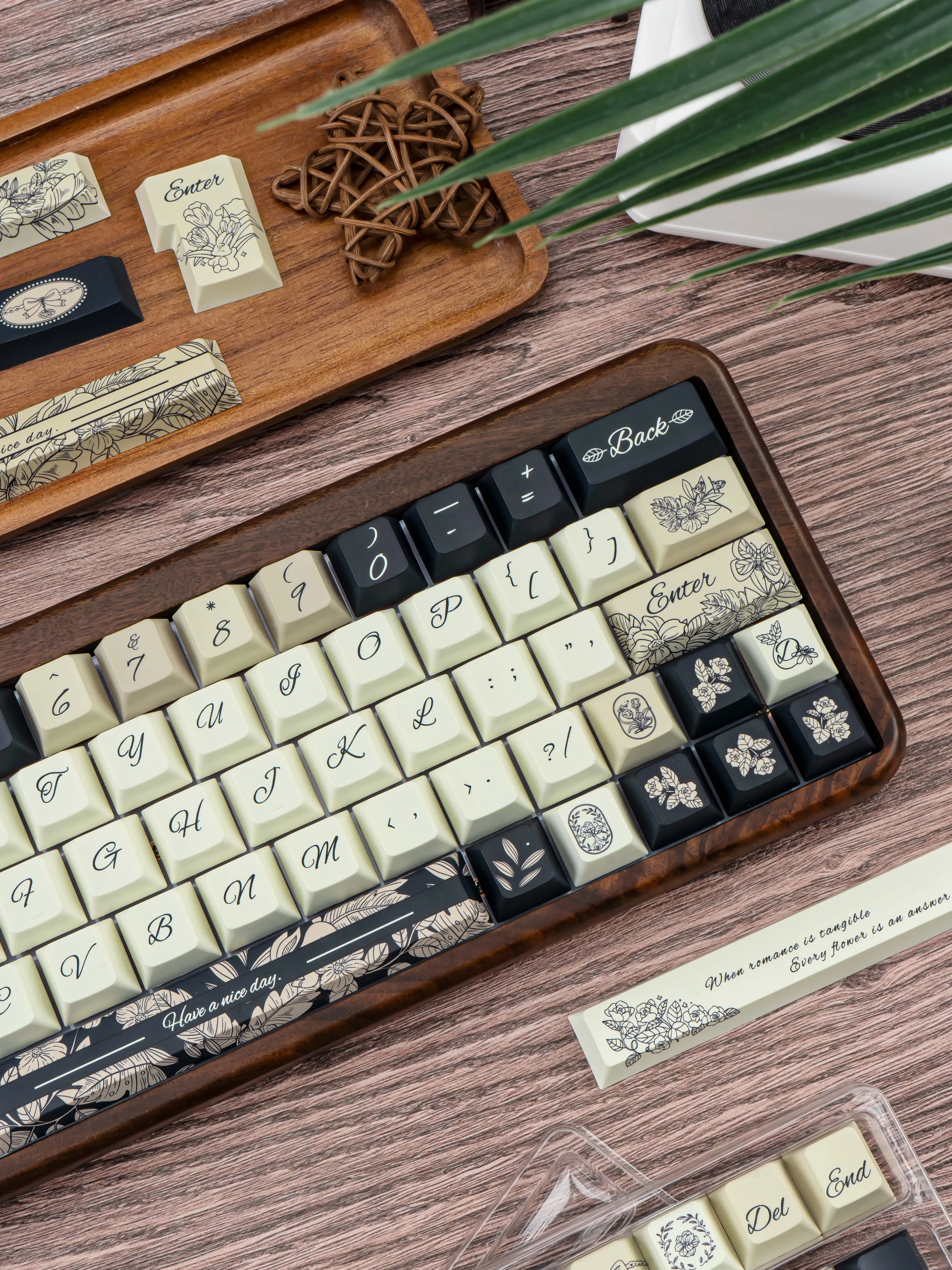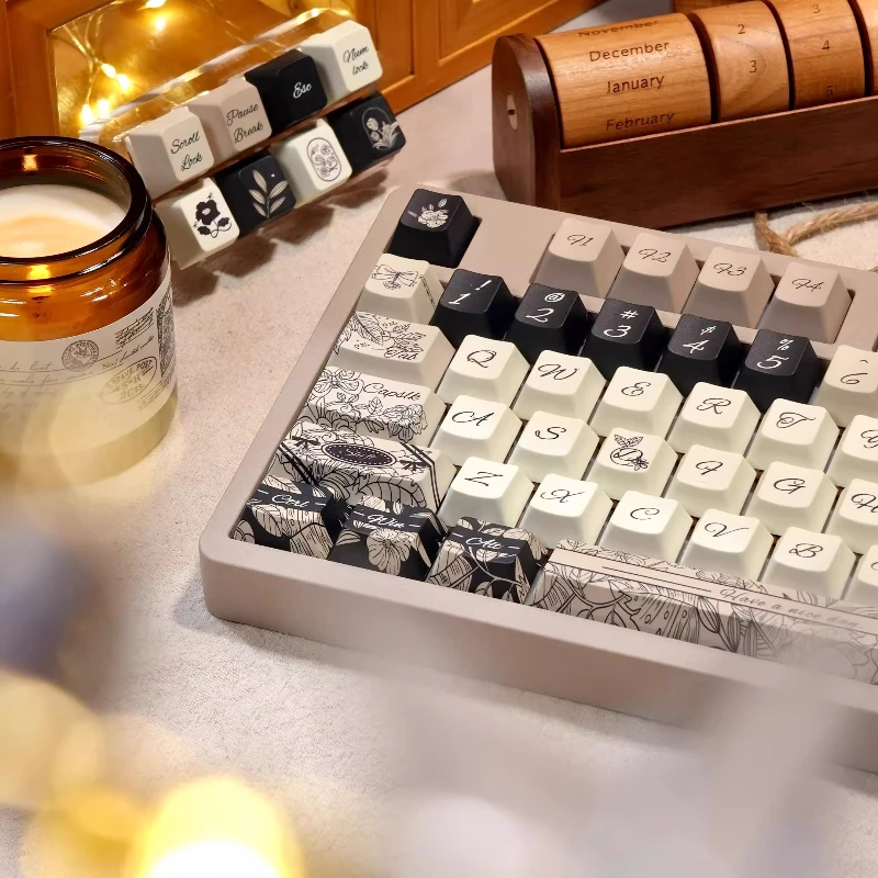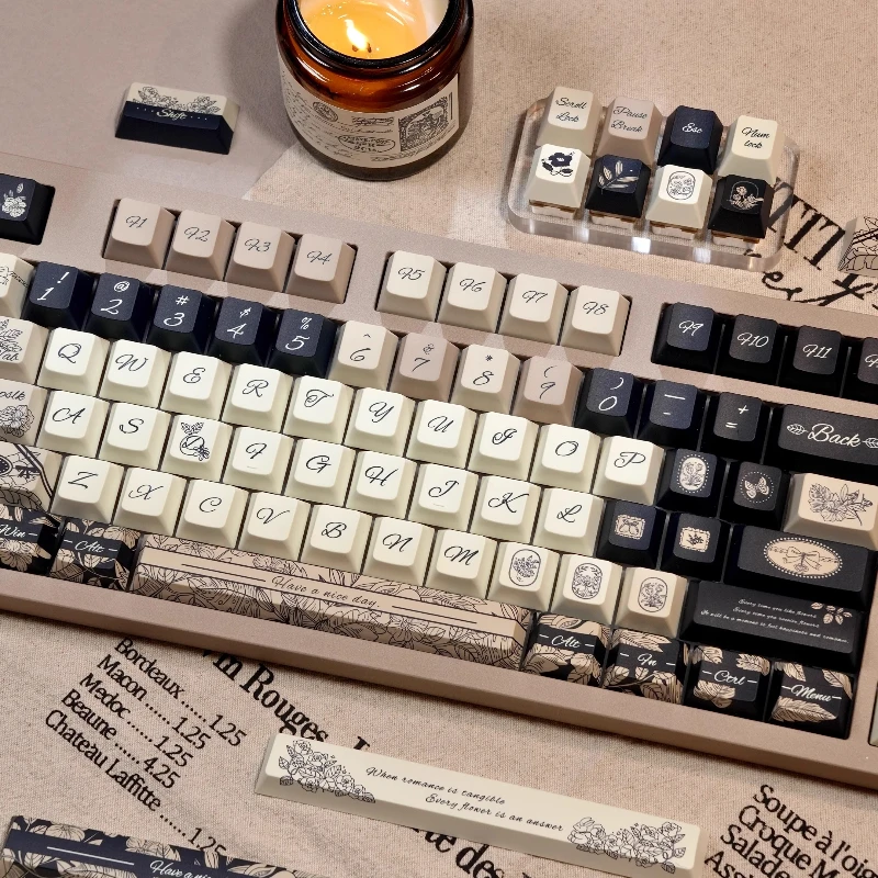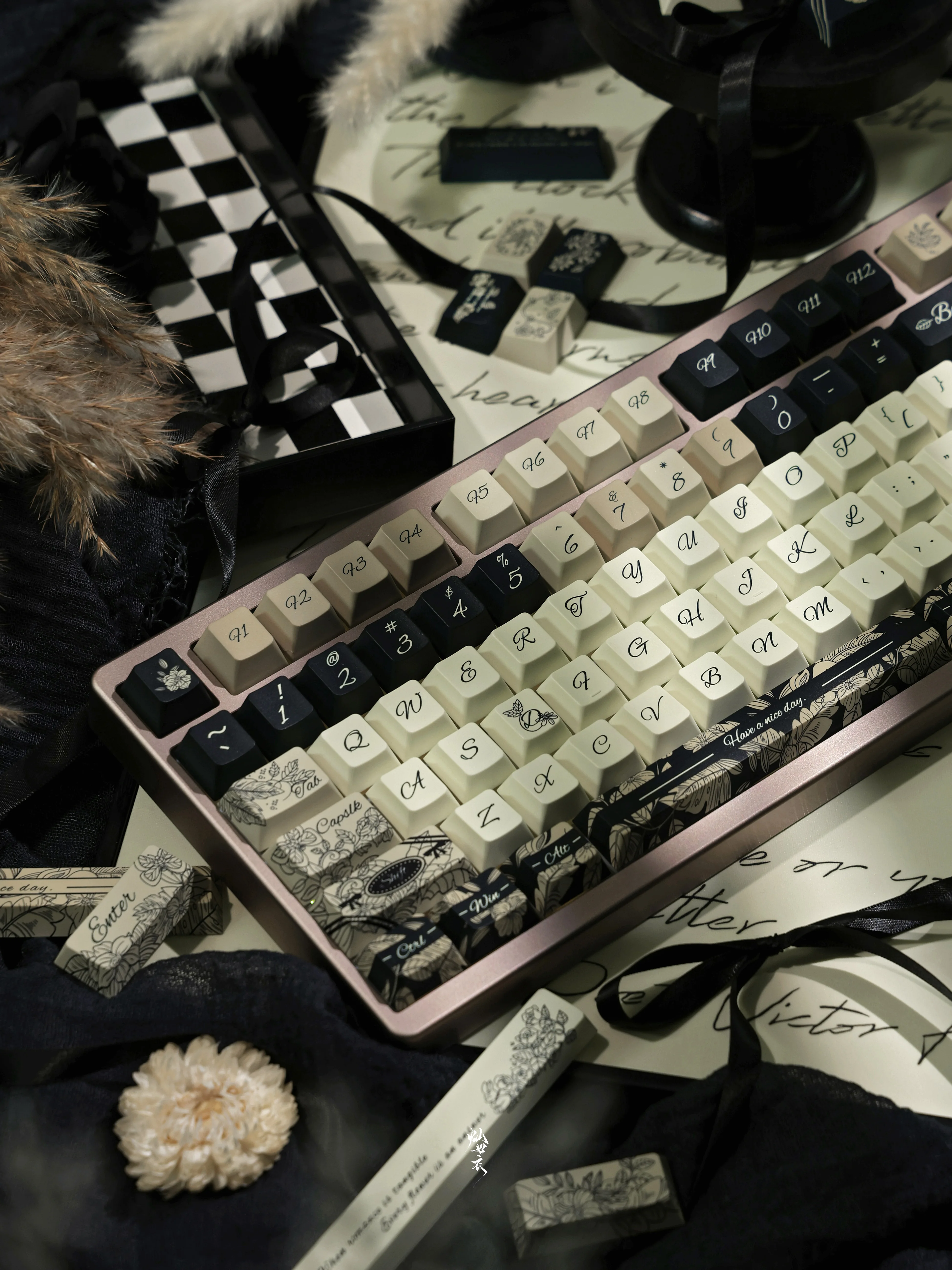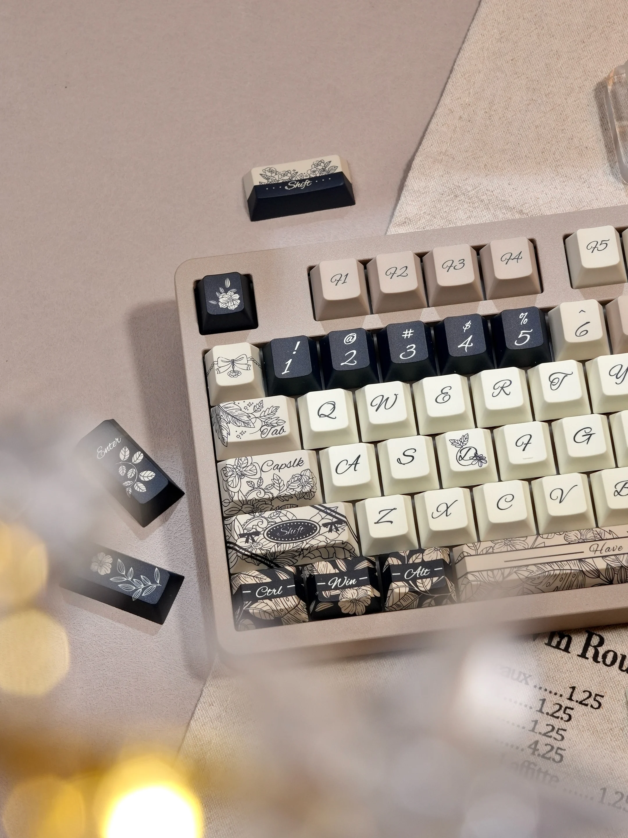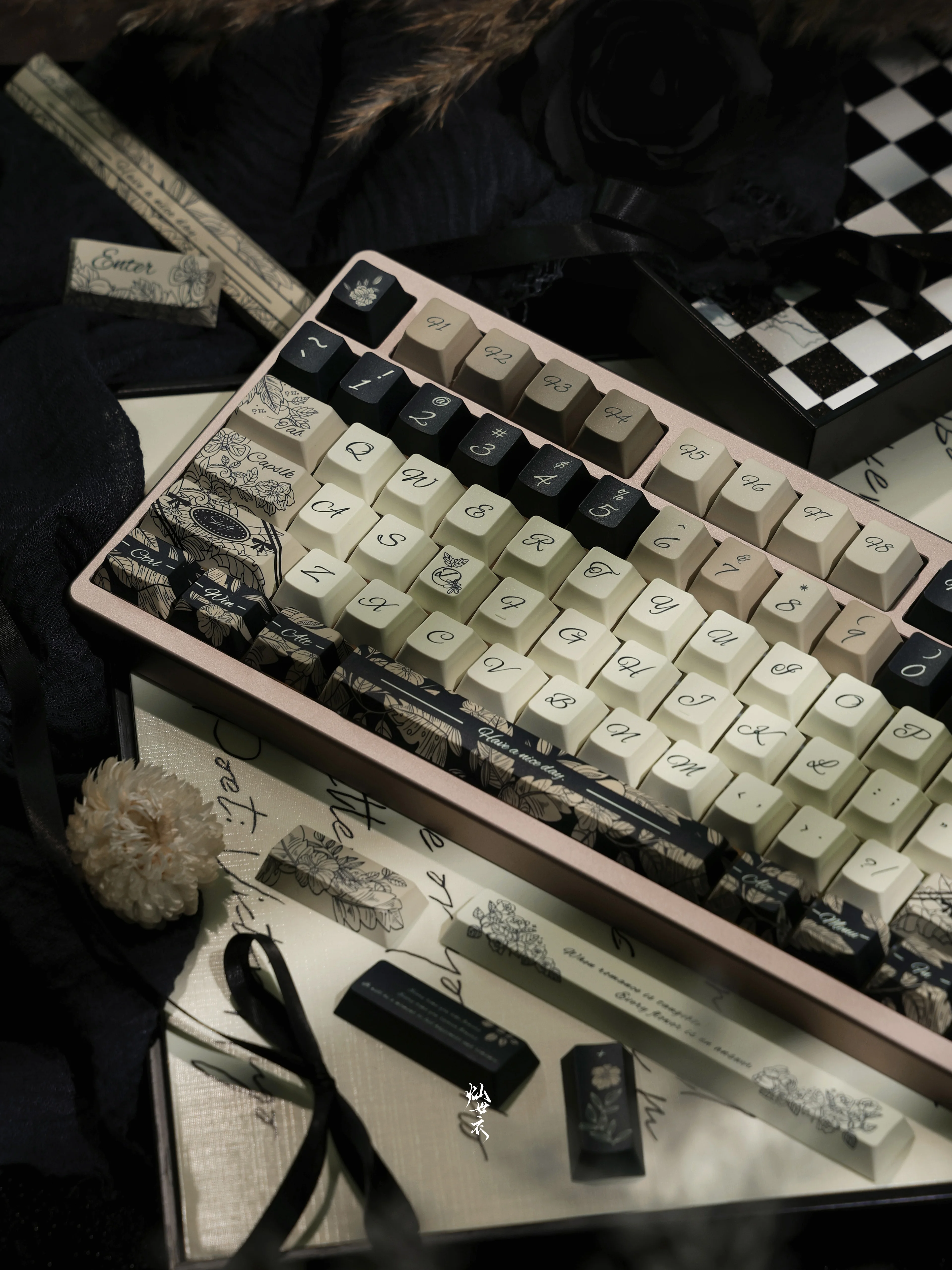 Teclas de niebla con rosa, tapa de tecla de perfil de cereza PBT personalizada, bonita tapa de tecla de punto de sublimación Retro de estilo chino para diseño de jugadores