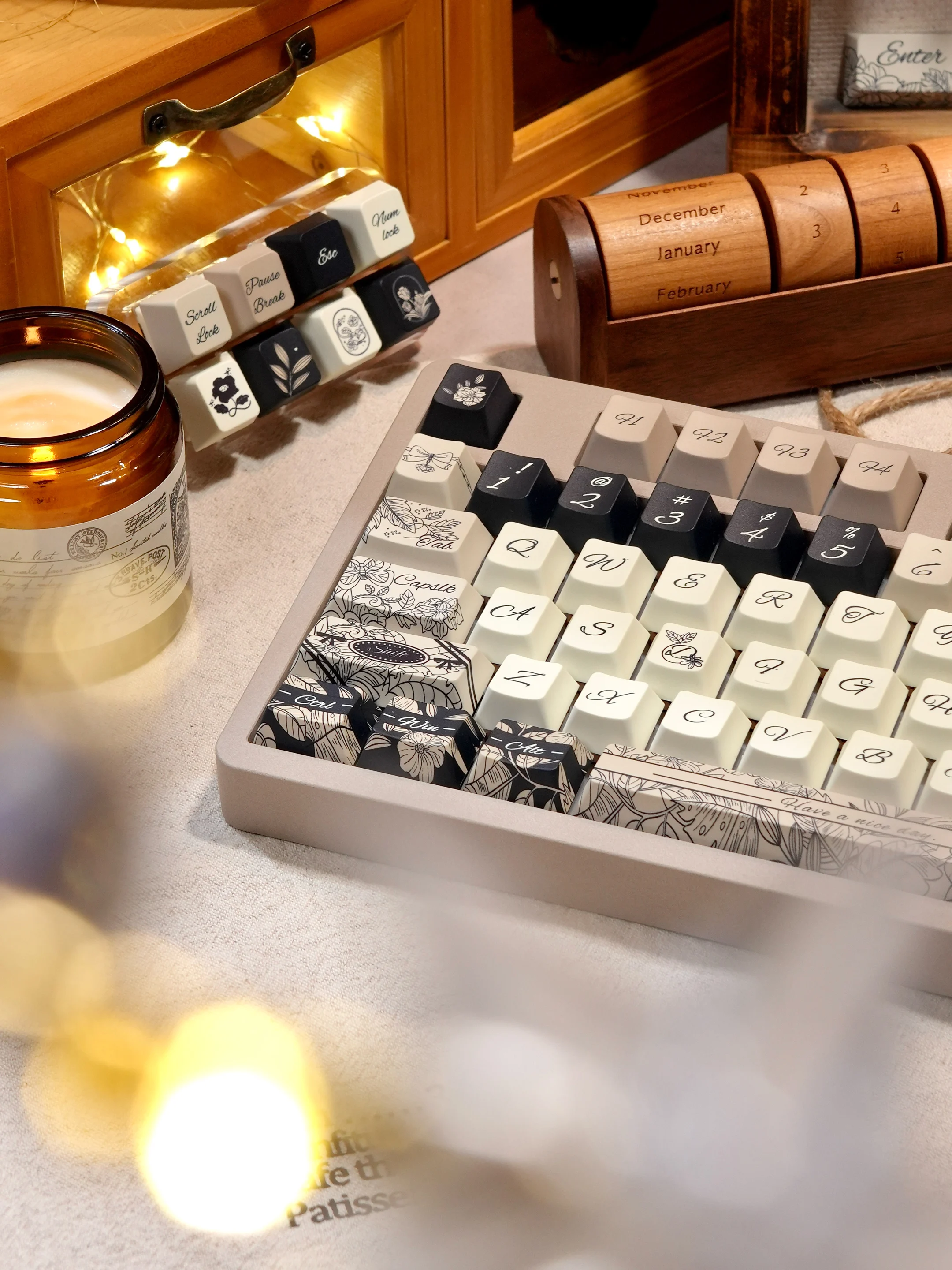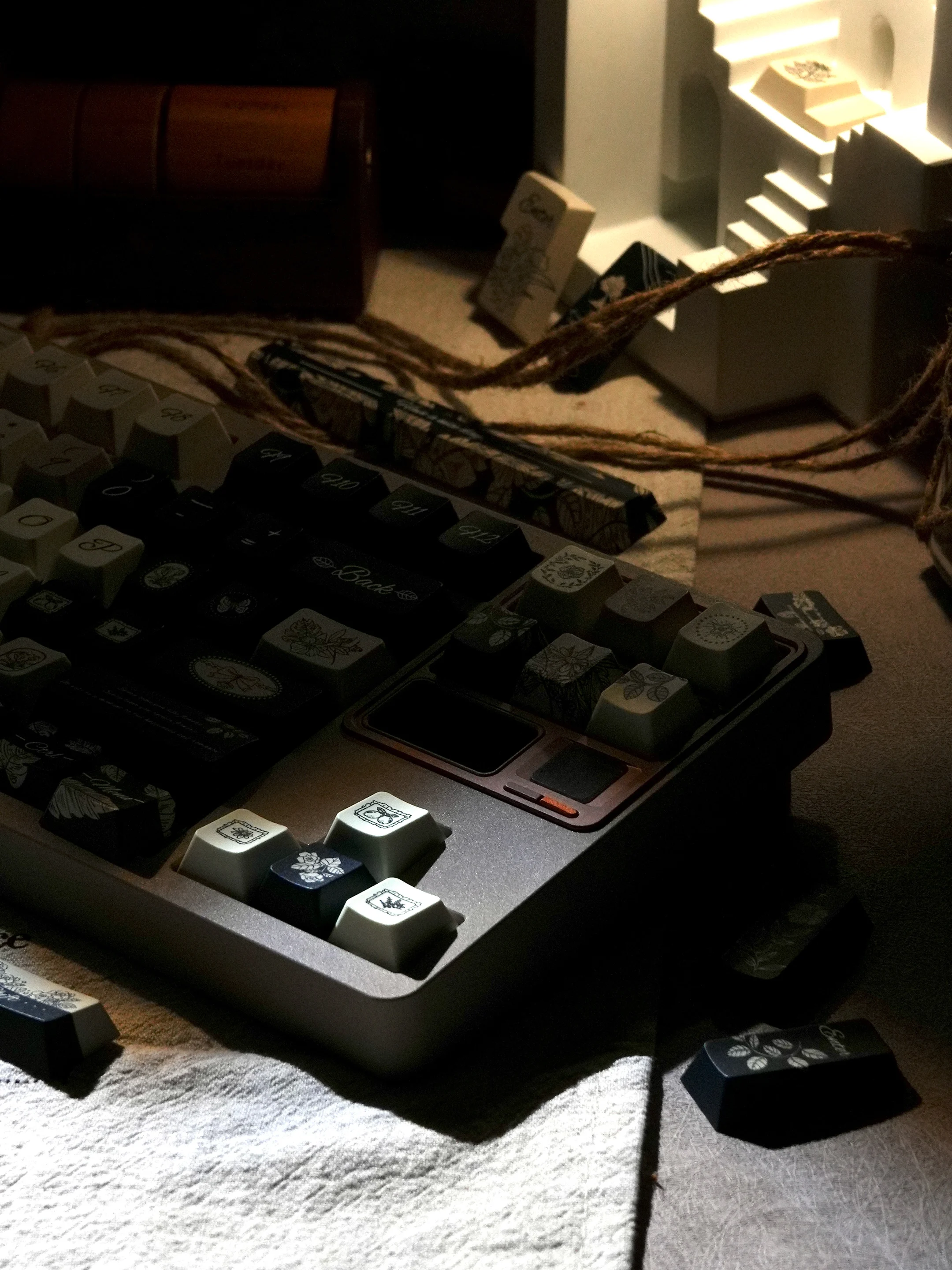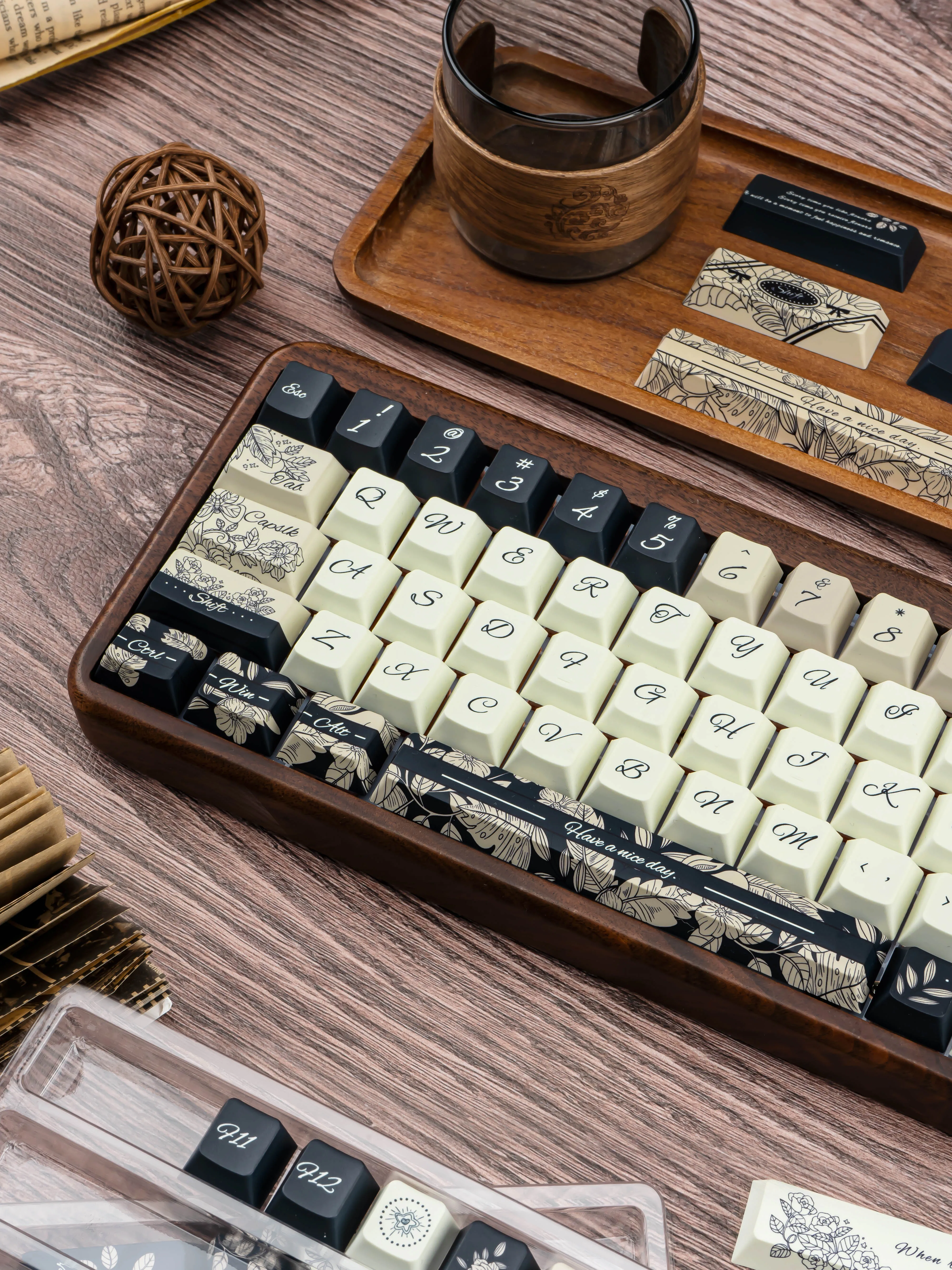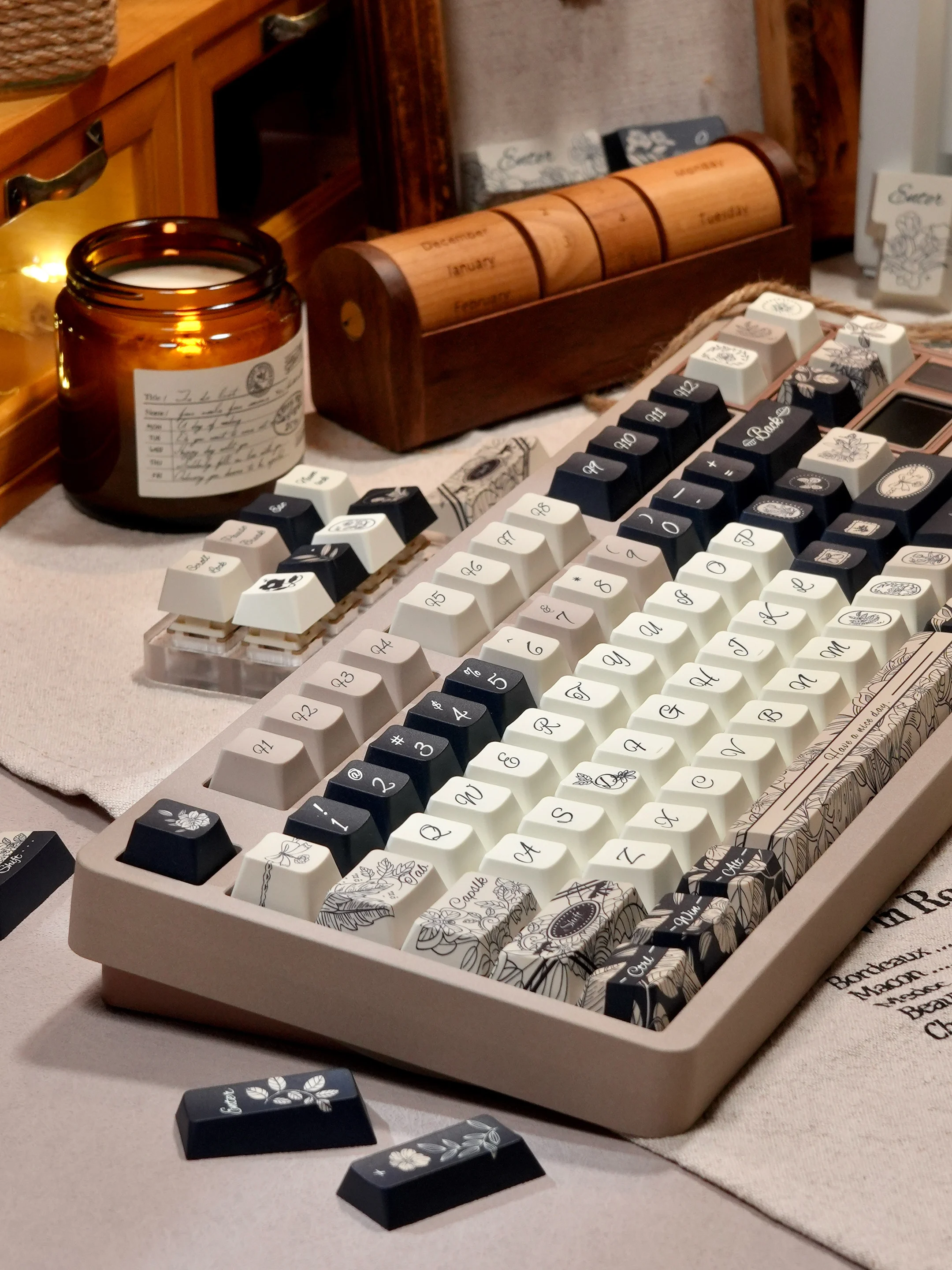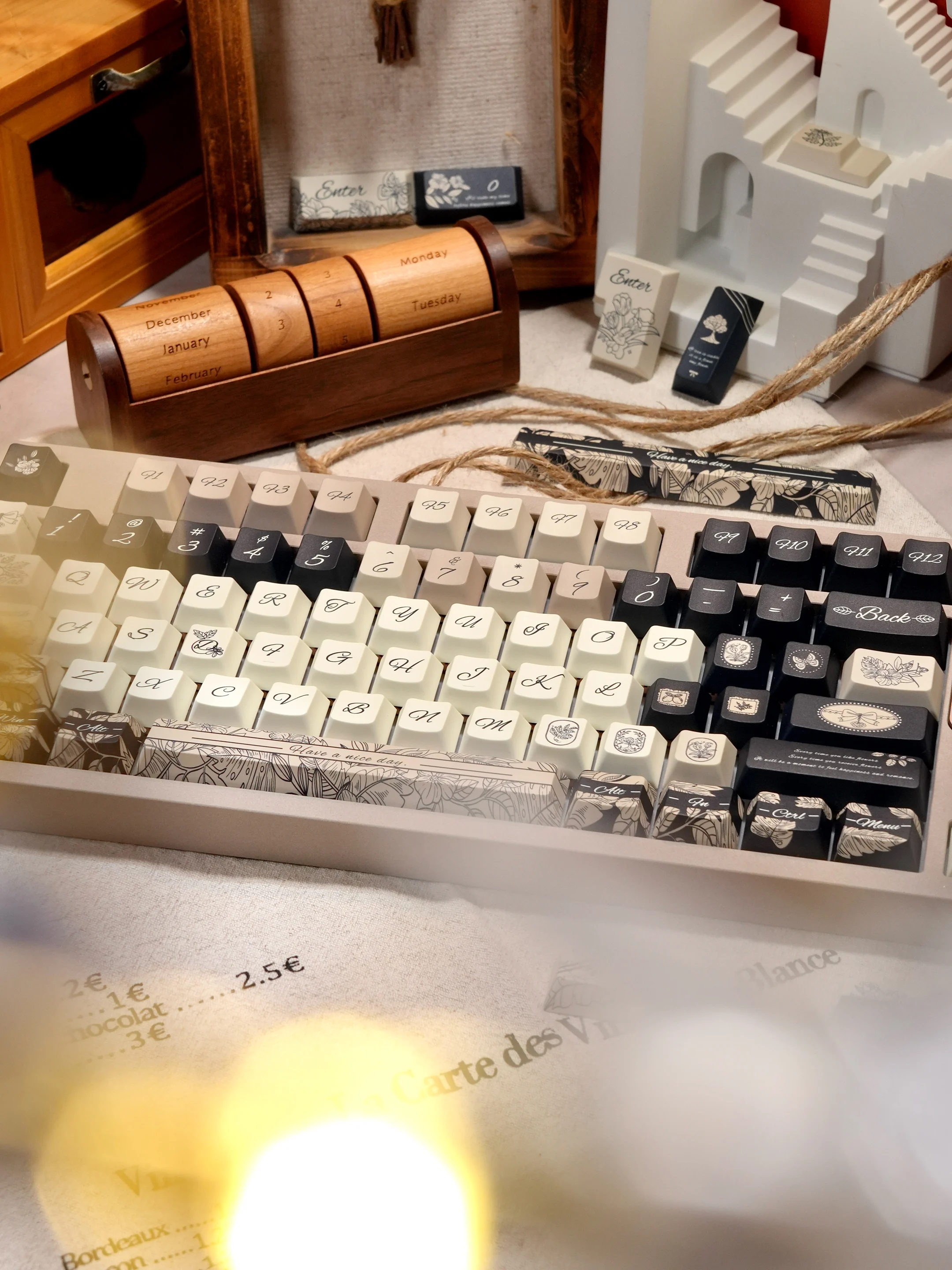 Teclas de niebla con rosa, tapa de tecla de perfil de cereza PBT personalizada, bonita tapa de tecla de punto de sublimación Retro de estilo chino para diseño de jugadores