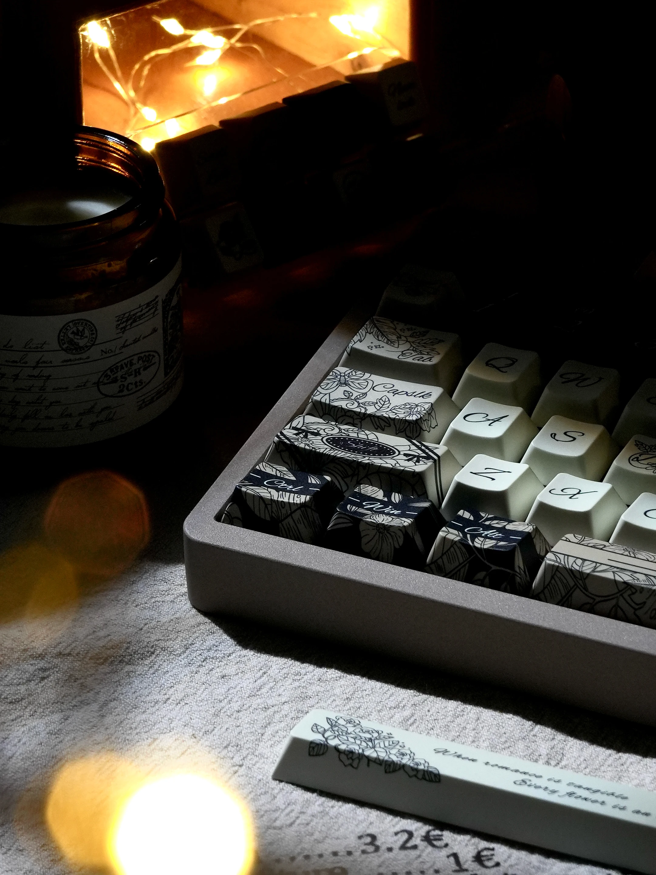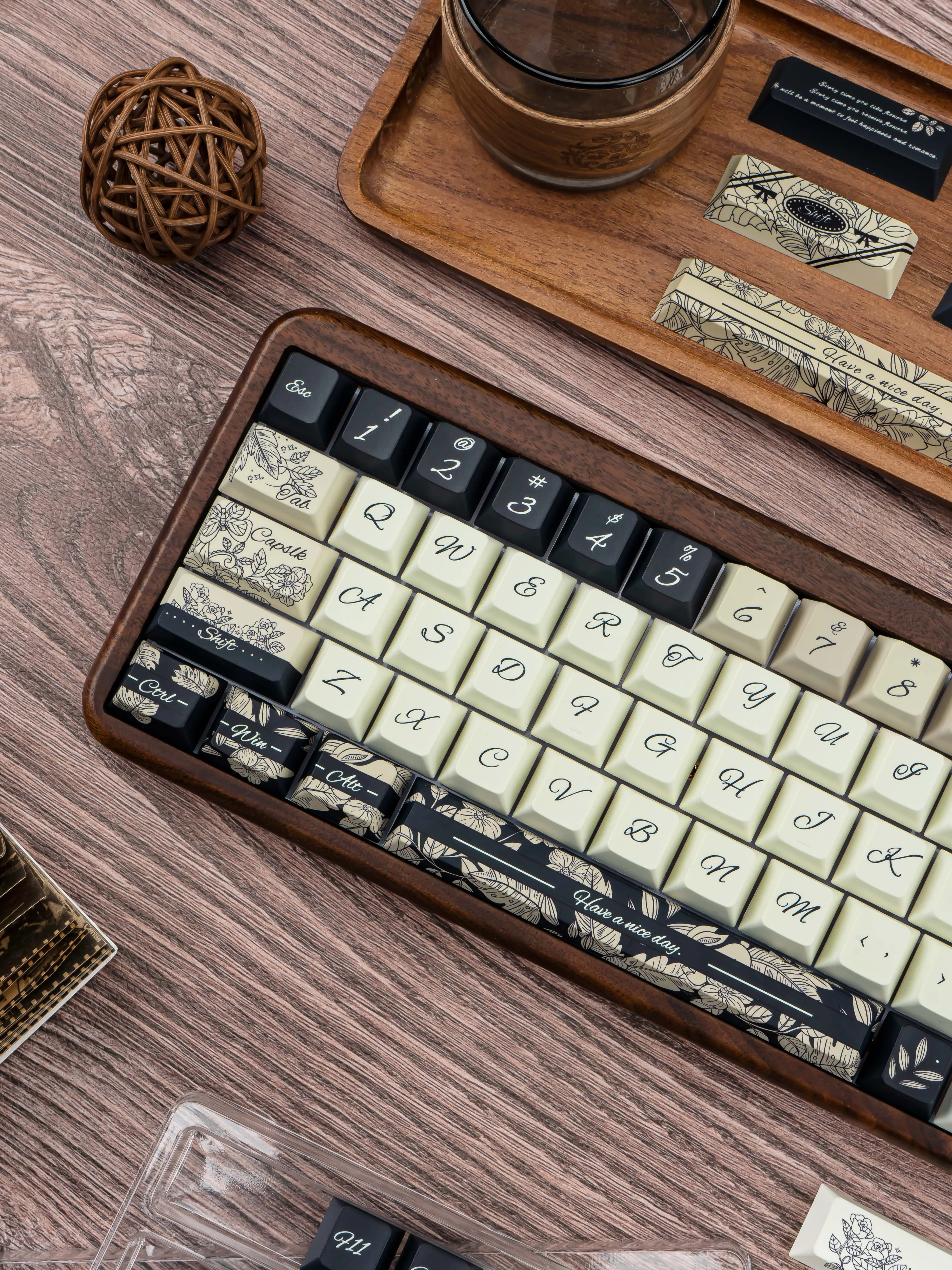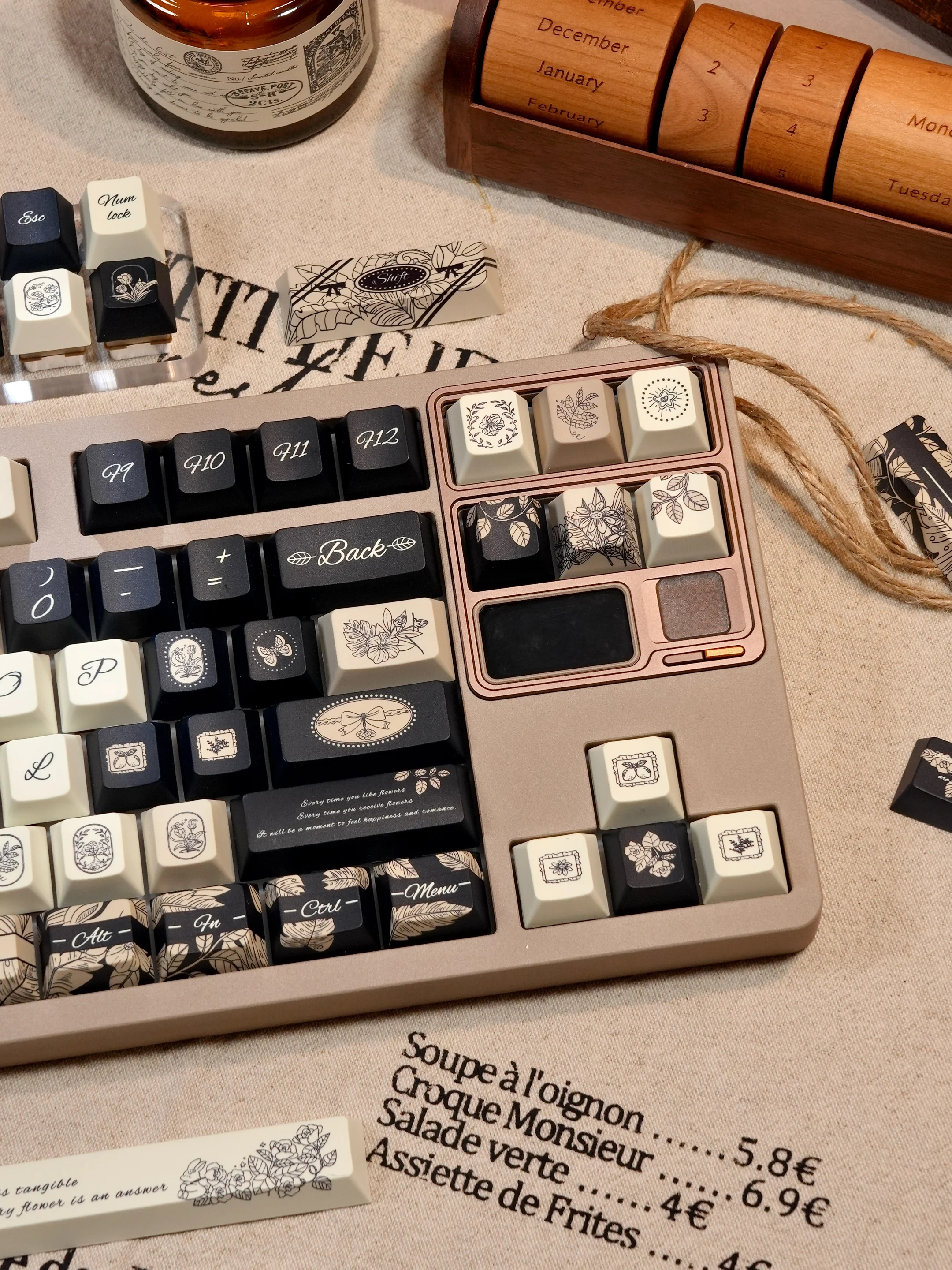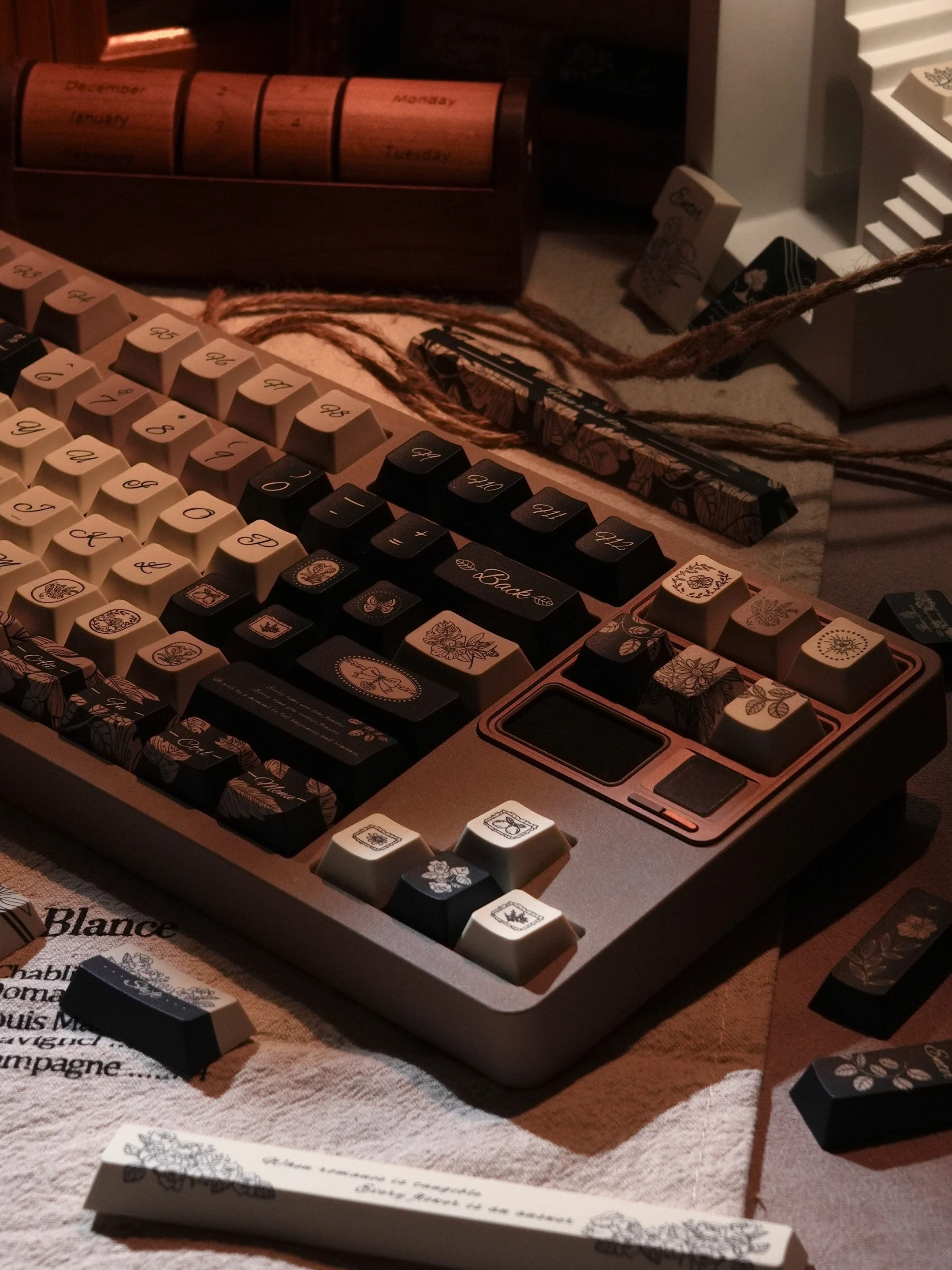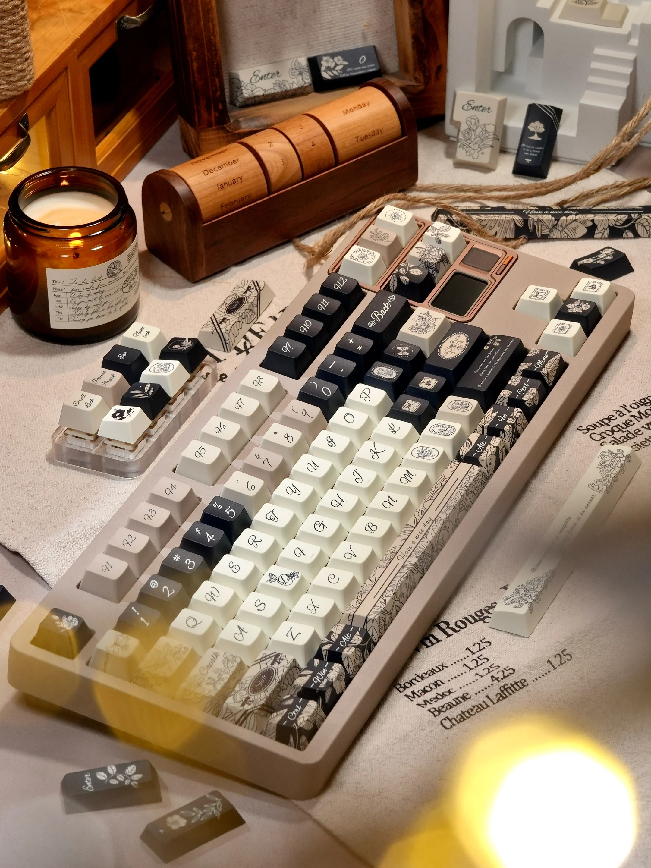 Teclas de niebla con rosa, tapa de tecla de perfil de cereza PBT personalizada, bonita tapa de tecla de punto de sublimación Retro de estilo chino para diseño de jugadores