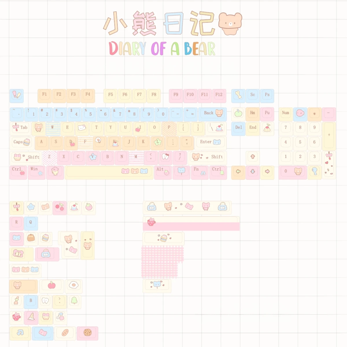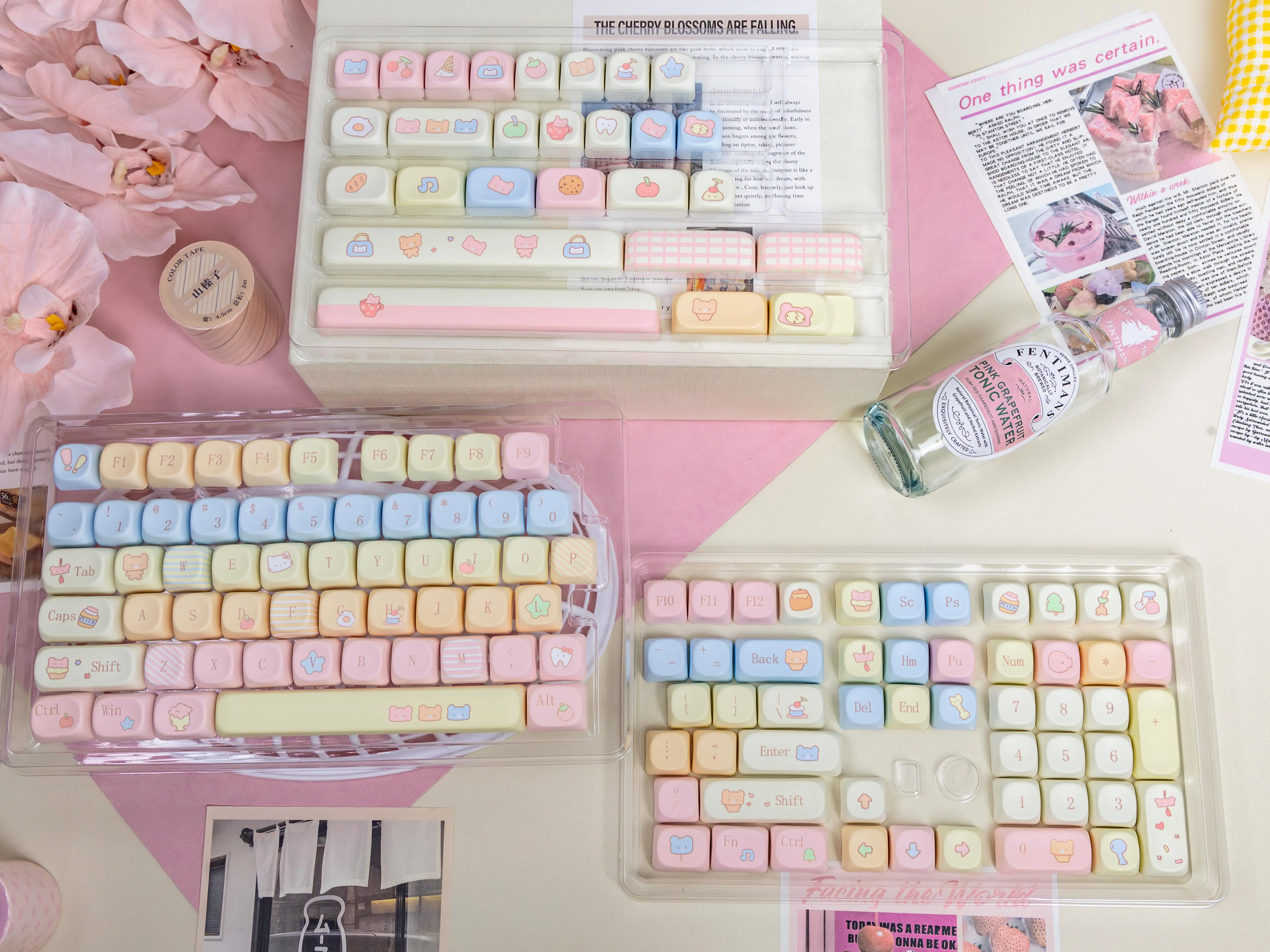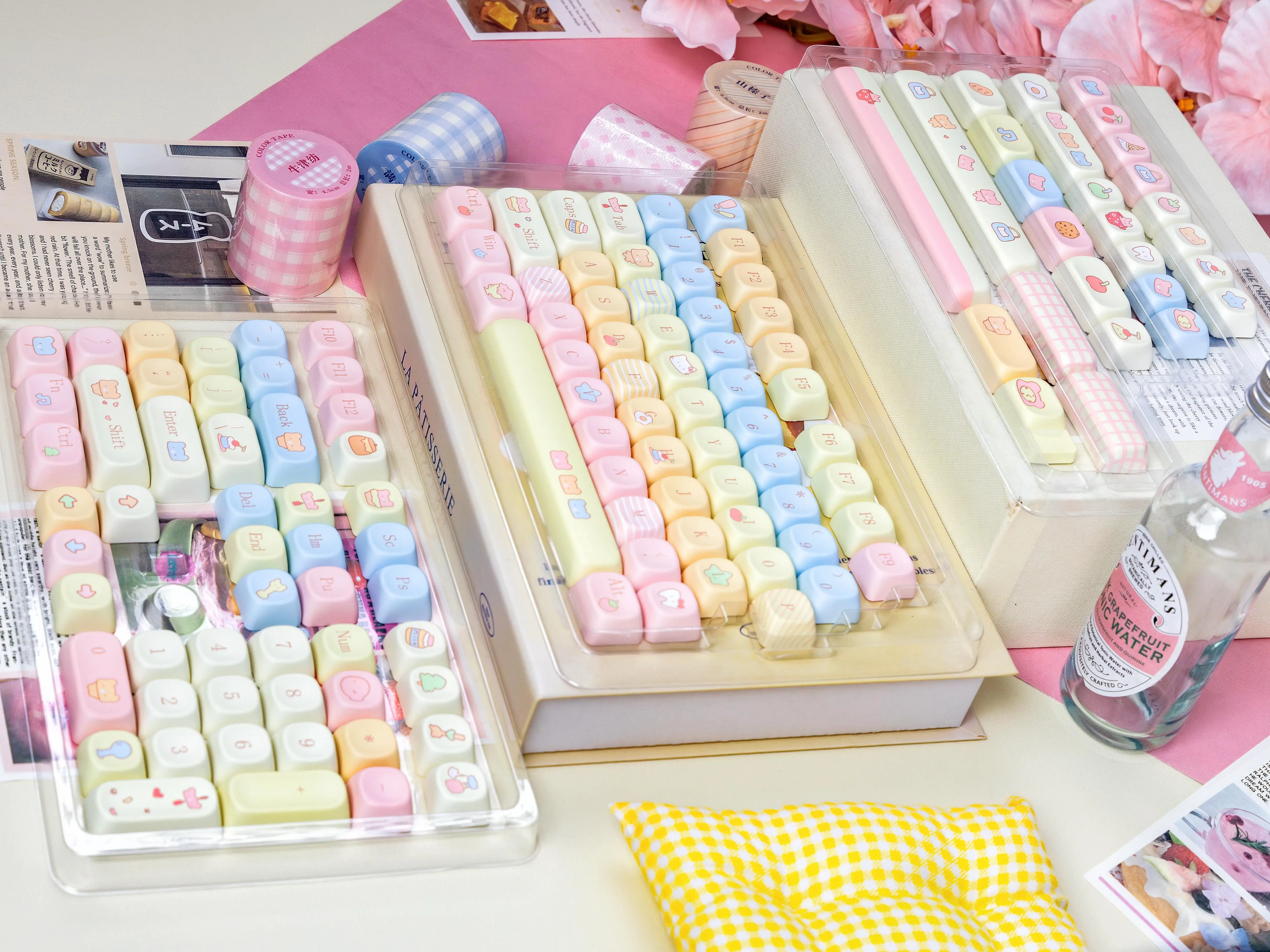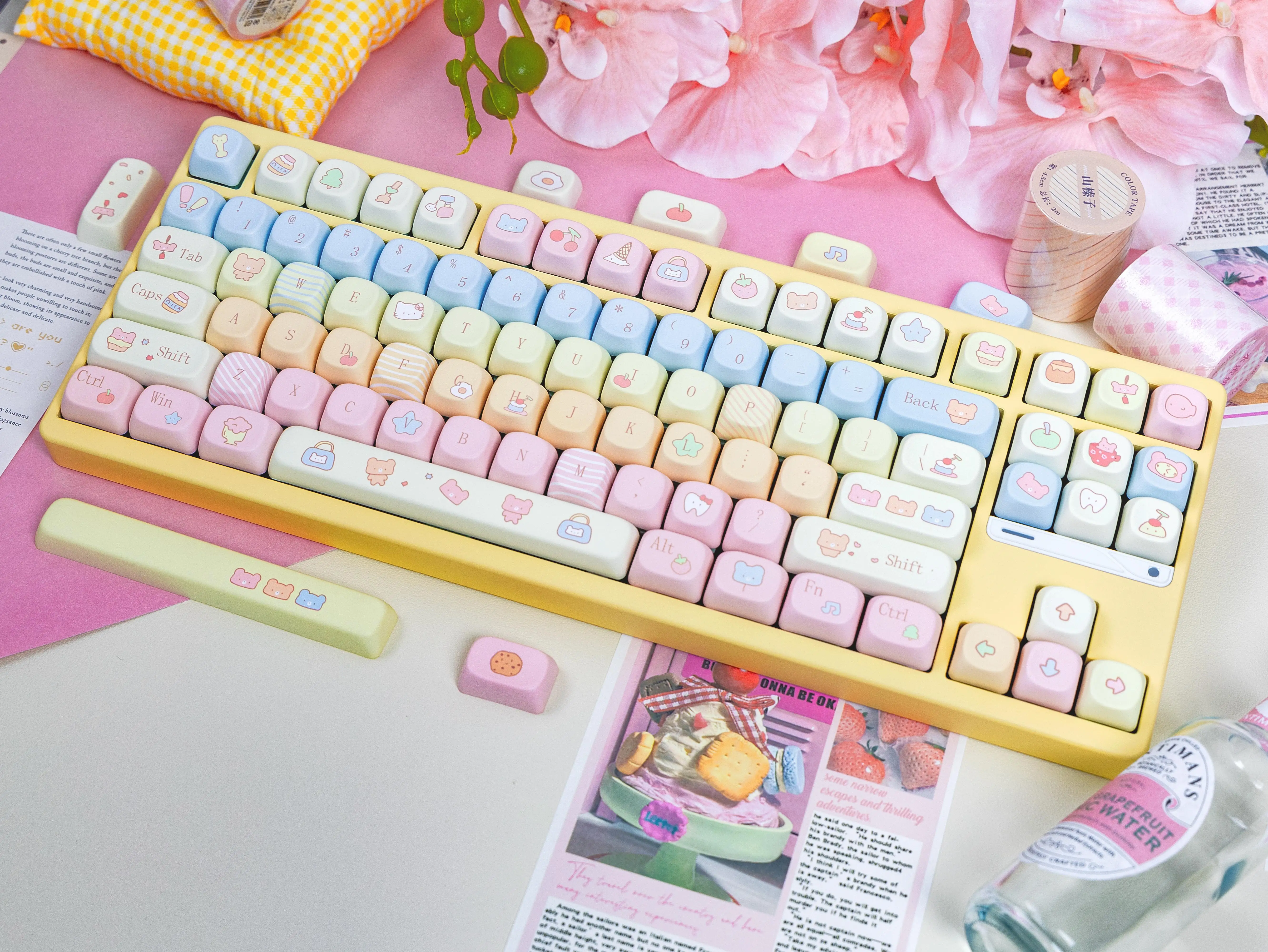 Teclas MOA con tema de diario de oso, teclas bonitas de sublimación de calor de cinco lados PBT para teclado mecánico, teclas de macarrón personalizadas