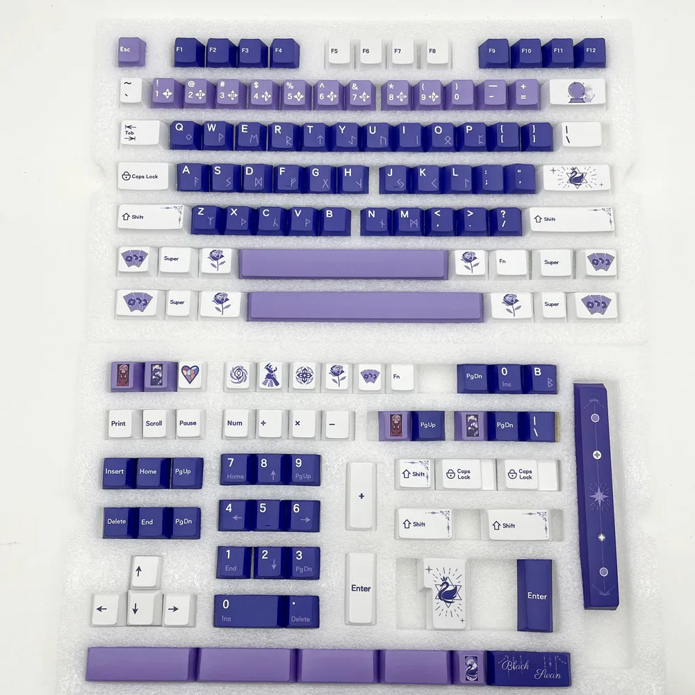 Comprar Teclas negras PBT para teclado, Material a prueba de luz, tinte de perfil de cereza, subcama, para GH60, GK61, GK64, RK68, RK84, 142 teclas por juego