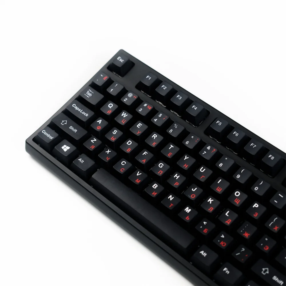 Comprar Teclas negras y rusas para teclado mecánico, accesorio de sublimación PBT, perfil Cherry MX para interruptor, 128 teclas