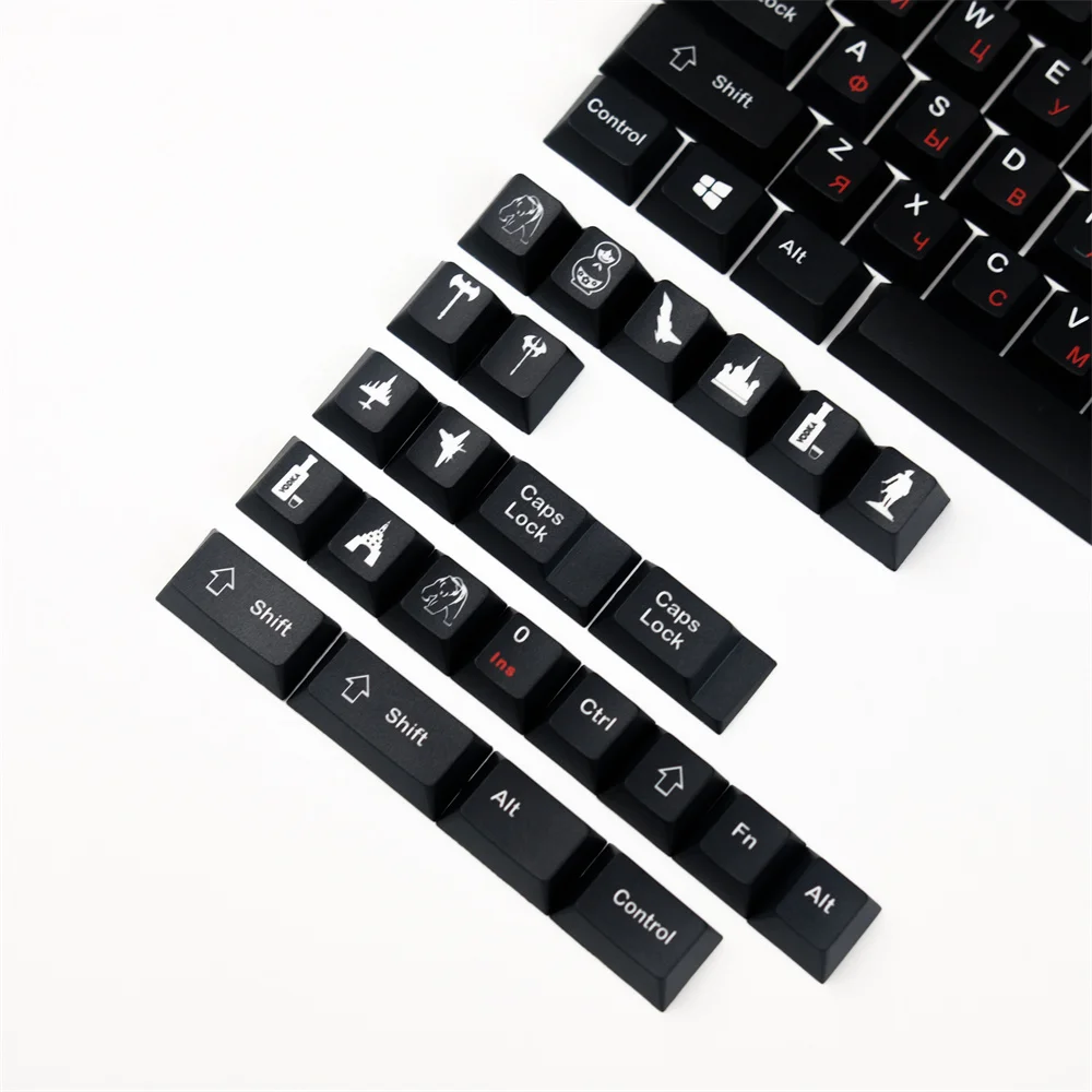 Comprar Teclas negras y rusas para teclado mecánico, accesorio de sublimación PBT, perfil Cherry MX para interruptor, 128 teclas