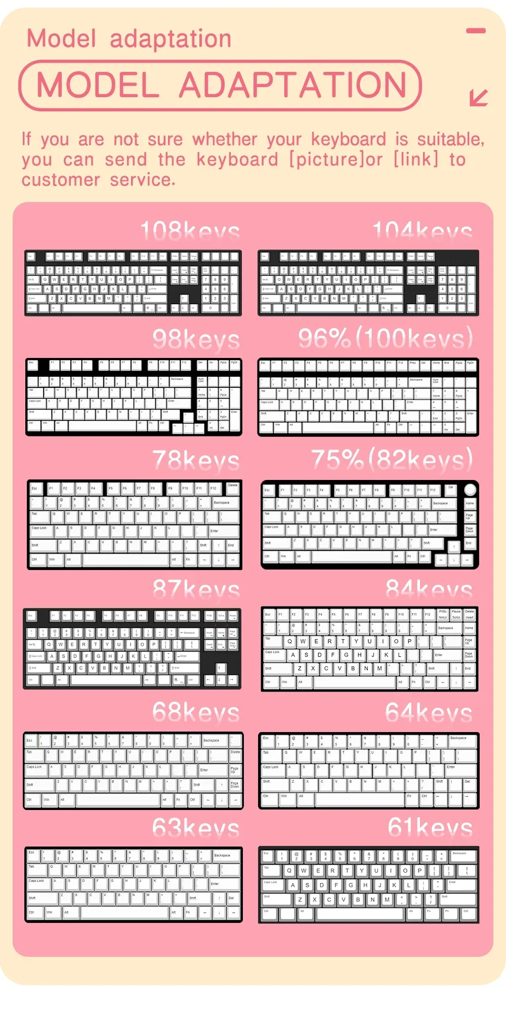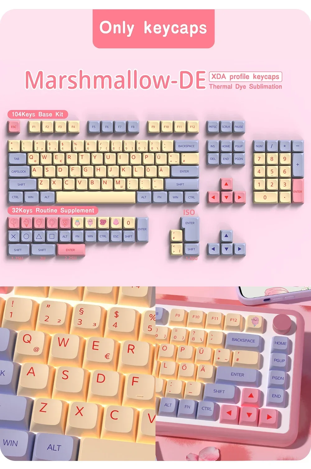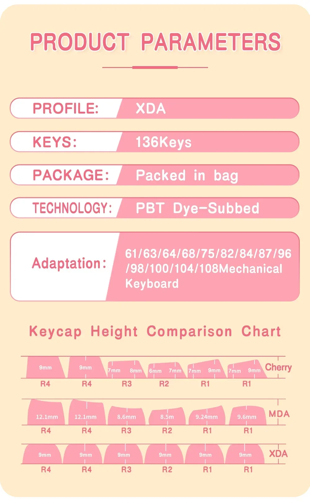 Nota: Este producto son teclas de material PBT, no el teclado.Contenido del paquete:1 x tecla (juego completo)1 extractor de llaves.parámetro:Sumado de tinteCompatible con interruptores MX (y clones)Perfil XDA【Compatible con la mayoría de los teclados mecánicos】 este juego de teclas funciona con la mayoría de los DZ60/GK61/63/64/68/KBD75/81/82/83/87/96 (100 teclas)/98/102/104/108 Cherry MX Switches Mechanical Gaming Teclado y interruptores Outemu, Kailh y Gateron y se adaptan a la mayoría de los teclados ANSI estándar.【Haga que el teclado sea diferente】 El diseño personalizado ayuda a actualizar el teclado y es una buena opción para su teclado mecánico de bricolaje.【Material PBT de alta calidad】 Las teclas están equipadas con una tapa de tecla PBT de alta calidad y un revestimiento antigrasa, lo que le brinda durabilidad de primera clase y una excelente sensación de escritura.La superficie mate sin brillo durará más que las teclas de ABS.