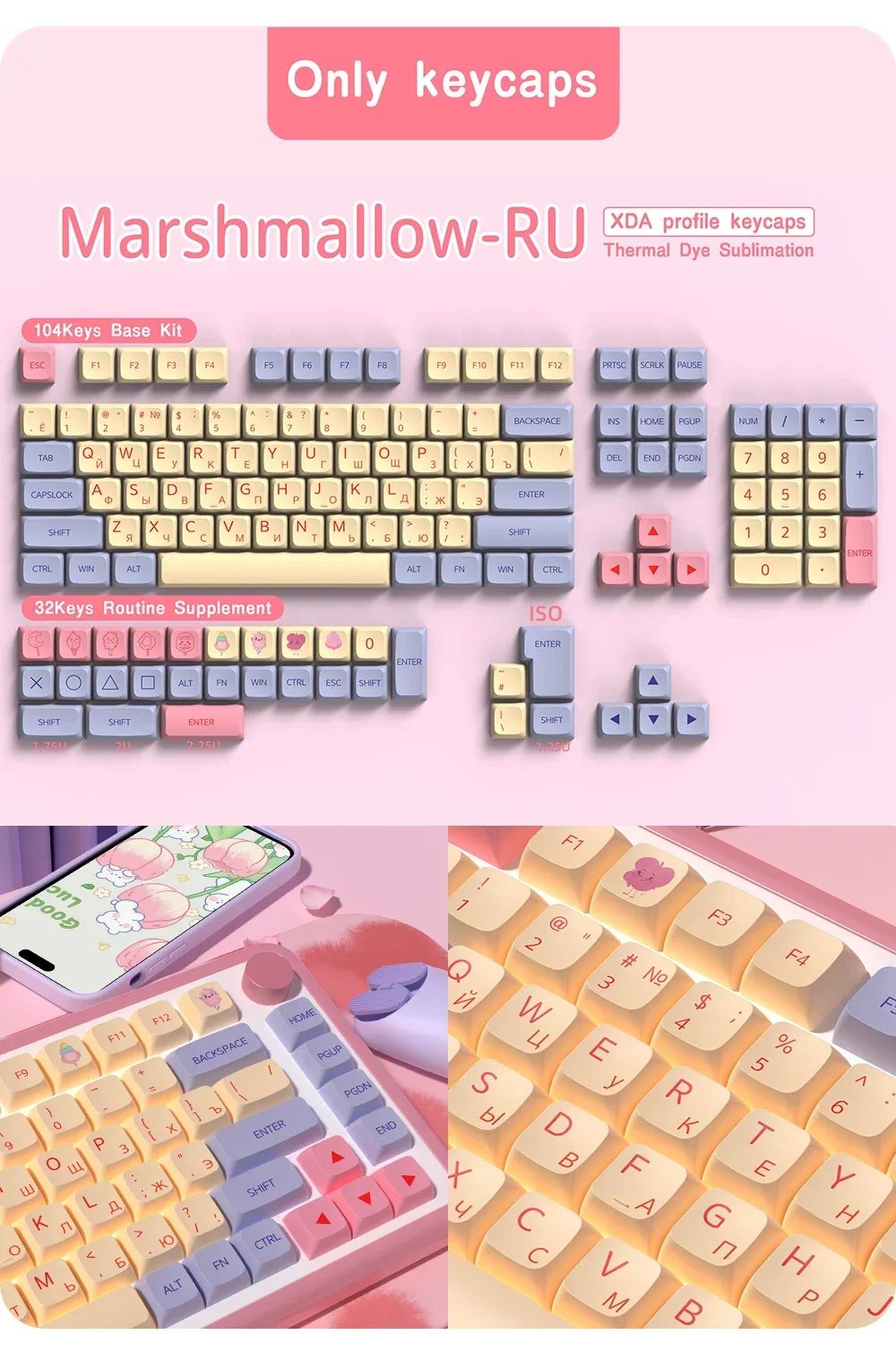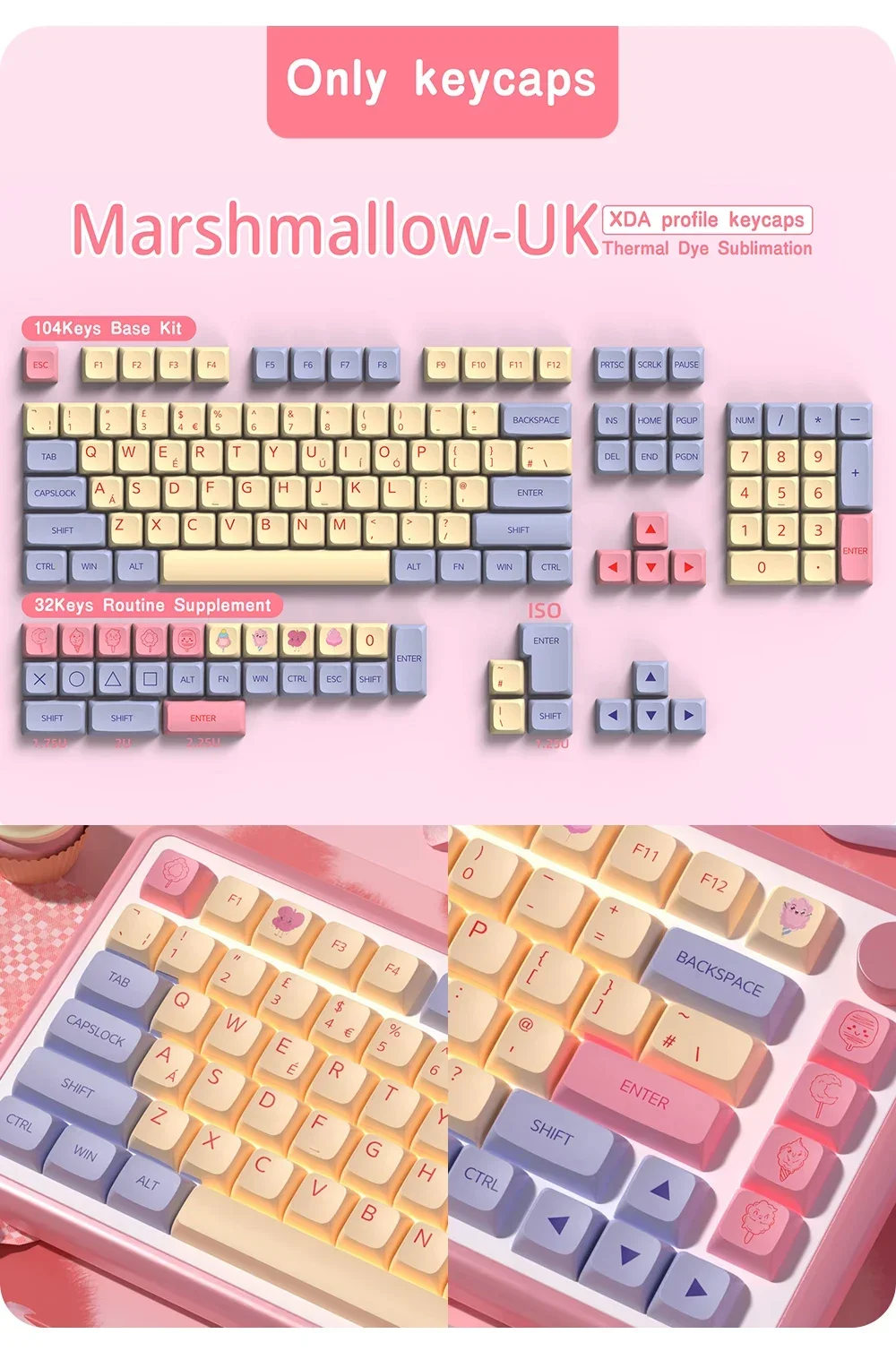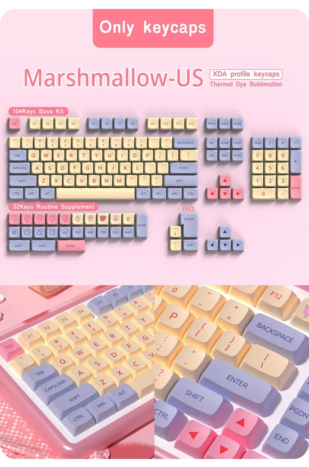 Nota: Este producto son teclas de material PBT, no el teclado.Contenido del paquete:1 x tecla (juego completo)1 extractor de llaves.parámetro:Sumado de tinteCompatible con interruptores MX (y clones)Perfil XDA【Compatible con la mayoría de los teclados mecánicos】 este juego de teclas funciona con la mayoría de los DZ60/GK61/63/64/68/KBD75/81/82/83/87/96 (100 teclas)/98/102/104/108 Cherry MX Switches Mechanical Gaming Teclado y interruptores Outemu, Kailh y Gateron y se adaptan a la mayoría de los teclados ANSI estándar.【Haga que el teclado sea diferente】 El diseño personalizado ayuda a actualizar el teclado y es una buena opción para su teclado mecánico de bricolaje.【Material PBT de alta calidad】 Las teclas están equipadas con una tapa de tecla PBT de alta calidad y un revestimiento antigrasa, lo que le brinda durabilidad de primera clase y una excelente sensación de escritura.La superficie mate sin brillo durará más que las teclas de ABS.