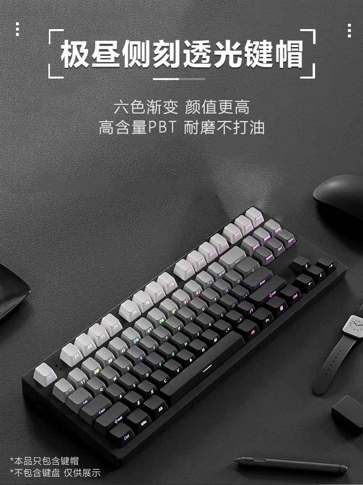4. Compatibilidad: Teclados mecánicos de 61/64/68/78/84/87/96/98/104/108 teclas. El Kit de teclas es solo para interruptores MX.