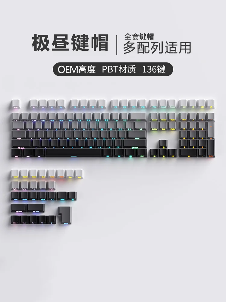 Comprar Teclas originales de luz diurna, PTB translúcido, Oem grabadas en el lateral, 136 teclas, personalizadas para adaptarse a Teclados mecánicos de 60/84/98/108.