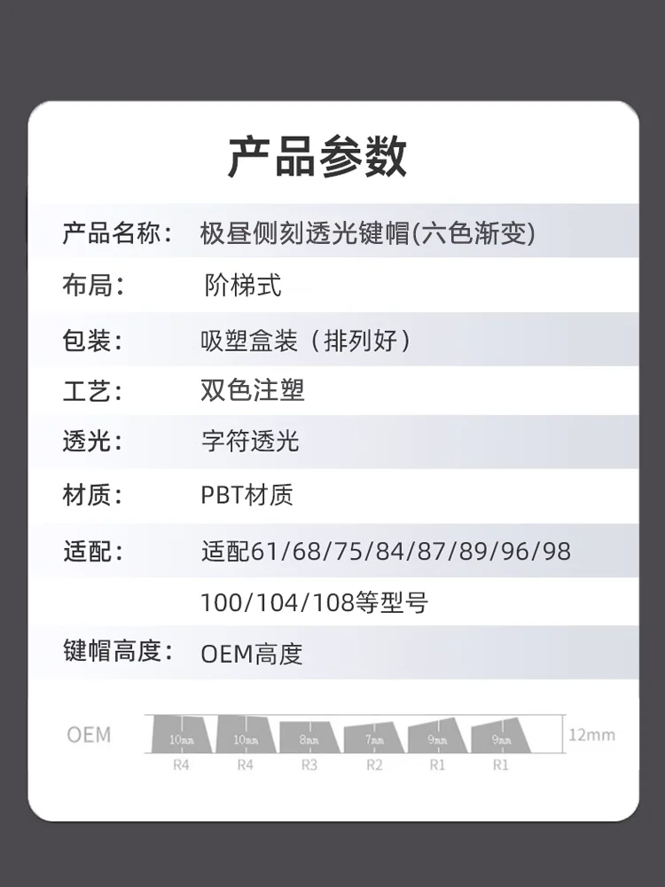 Teclas originales Extreme Daylight PTB translúcidas con grabado lateral OEM altura 136 teclas personalizadas para teclados mecánicos 60/84/98/108