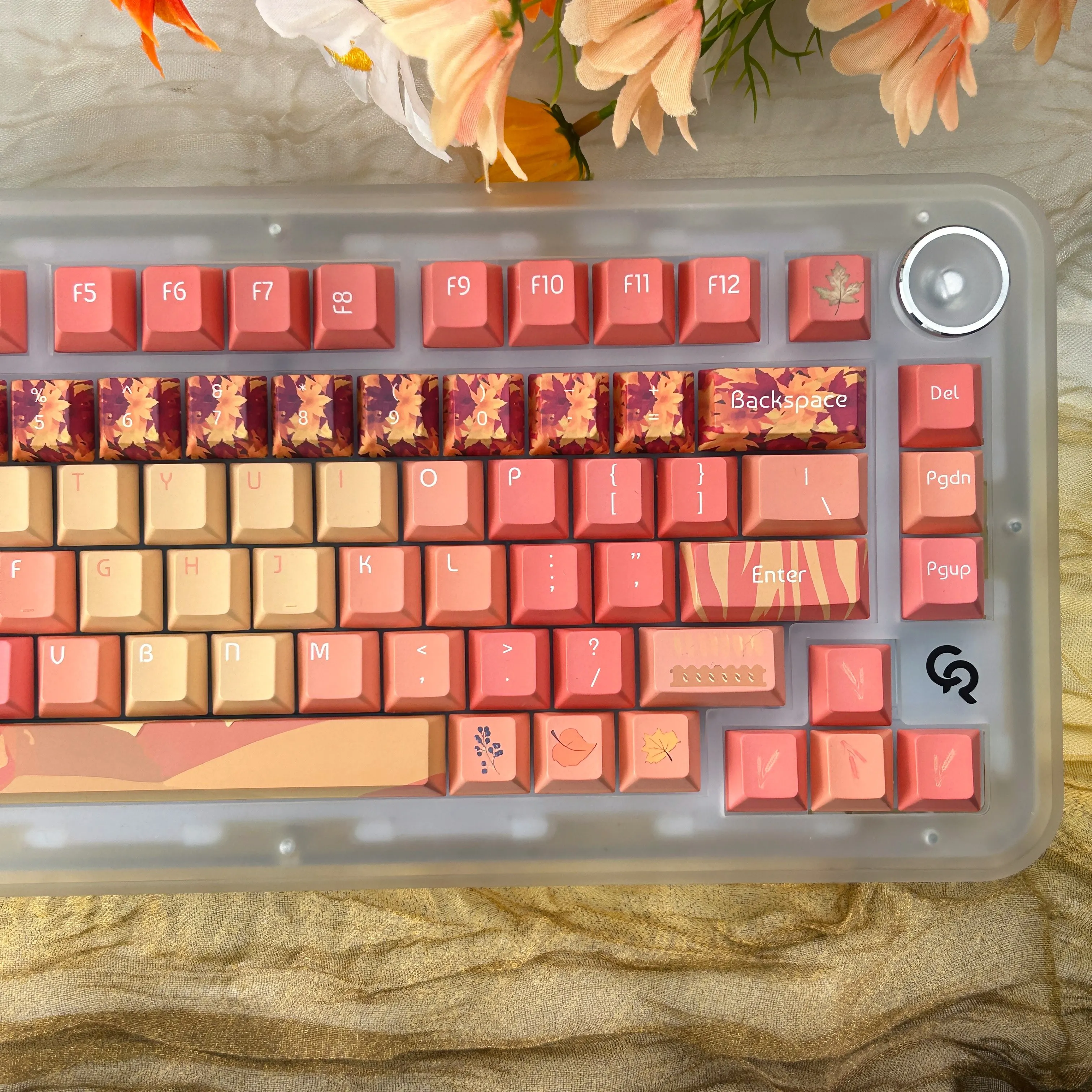 Teclas de otoño con perfil de cereza, teclas de hoja de arce con gradiente naranja, sublimación PBT, barra espacial de 2,25/2,75U, diseño de Alicia
