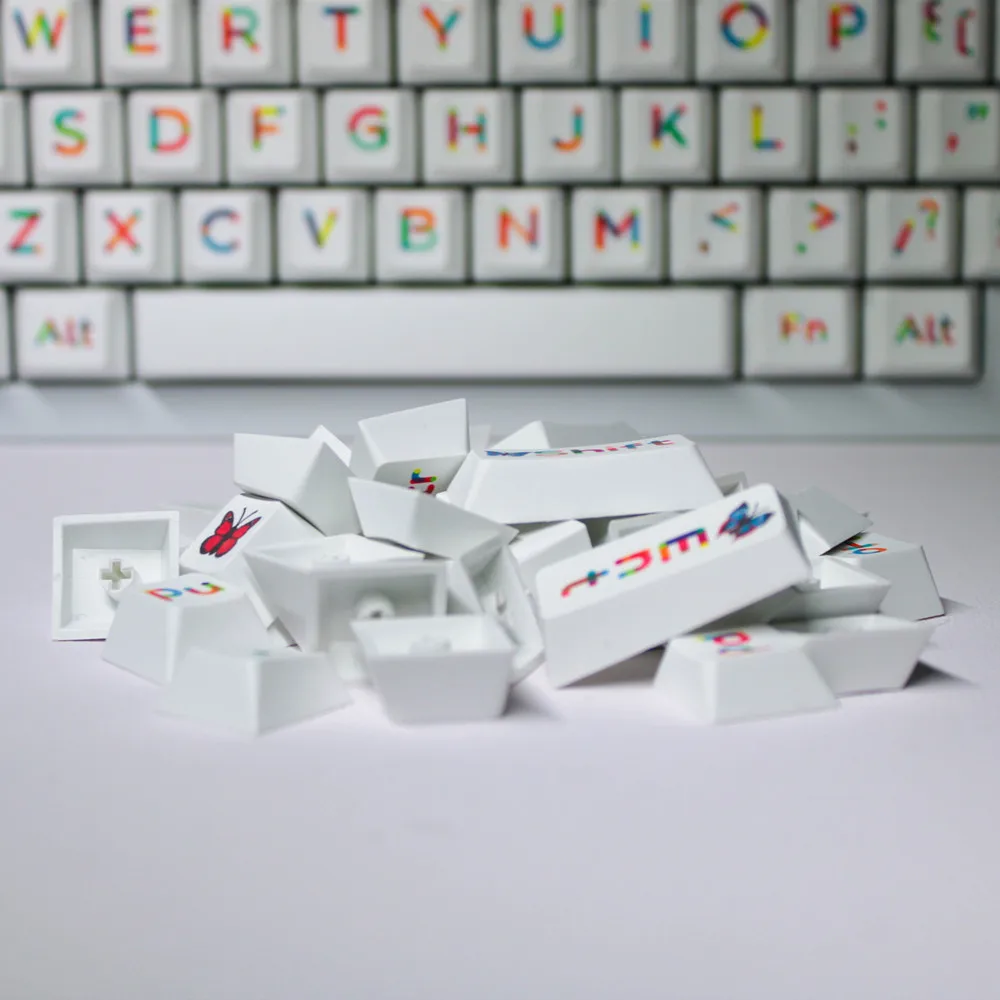 Comprar Teclas PBT de 125 teclas, perfil de cereza, colorante, tecnología secundaria, teclas blancas para interruptores Outemu Gateron Kailh TTC Cherry MX