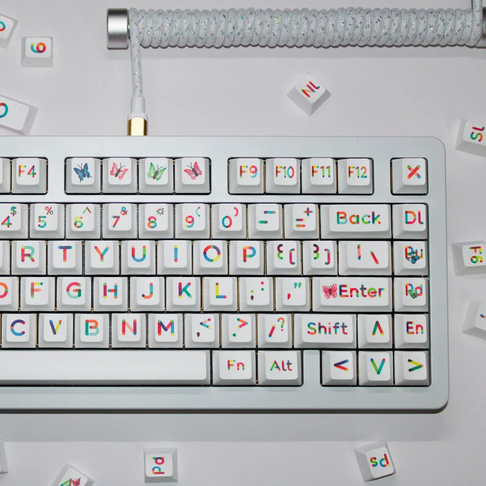 Teclas PBT de 125 teclas con perfil de cereza, teclas de Color con tecnología DYE SUB, teclas blancas para interruptores Outemu Gateron Kailh TTC Cherry MX