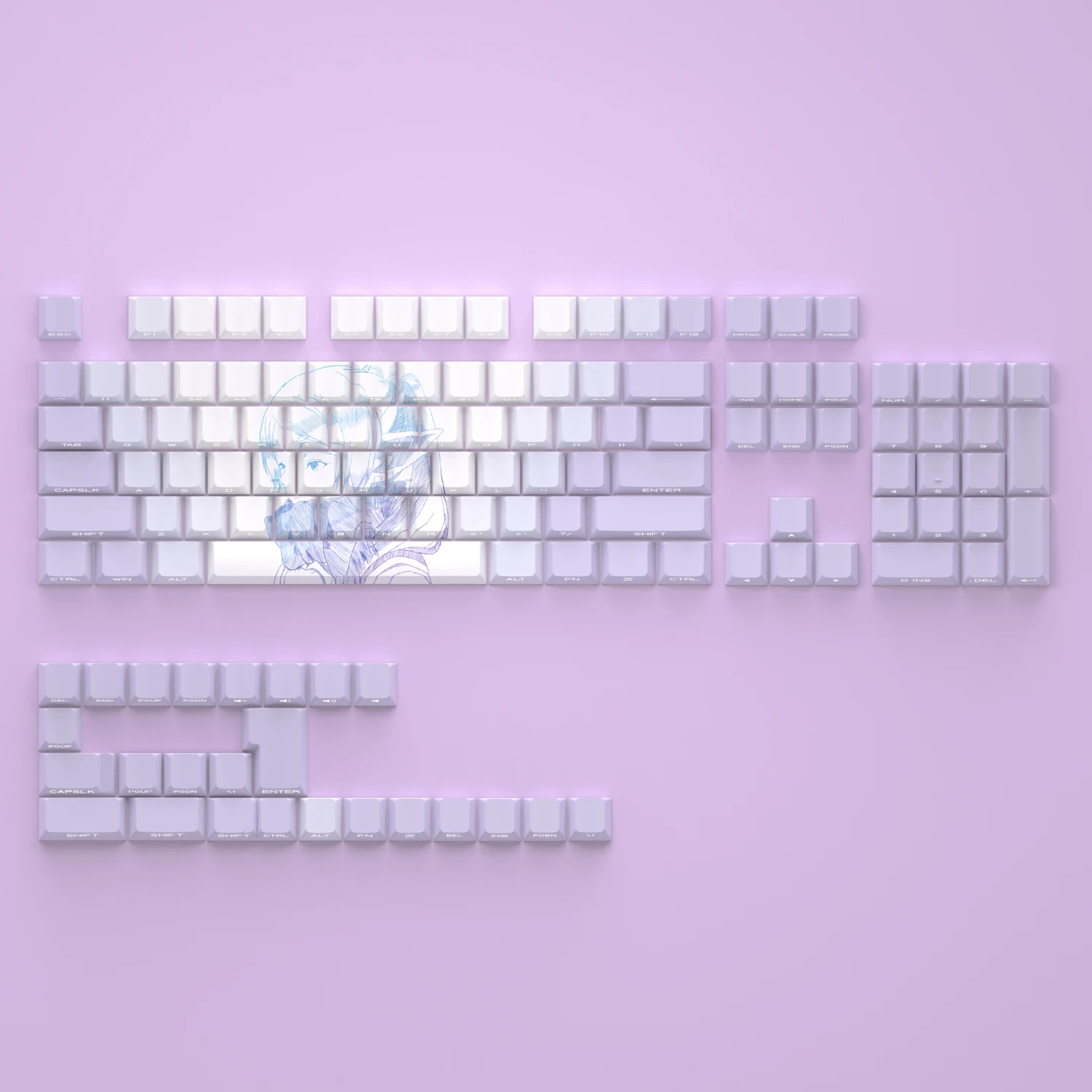 Teclas PBT de 130 teclas, retroiluminación de sublimación de tinte de cereza con impresión lateral de Anime Frieren para teclado mecánico AULA F75 Anne Pro 2 GK61