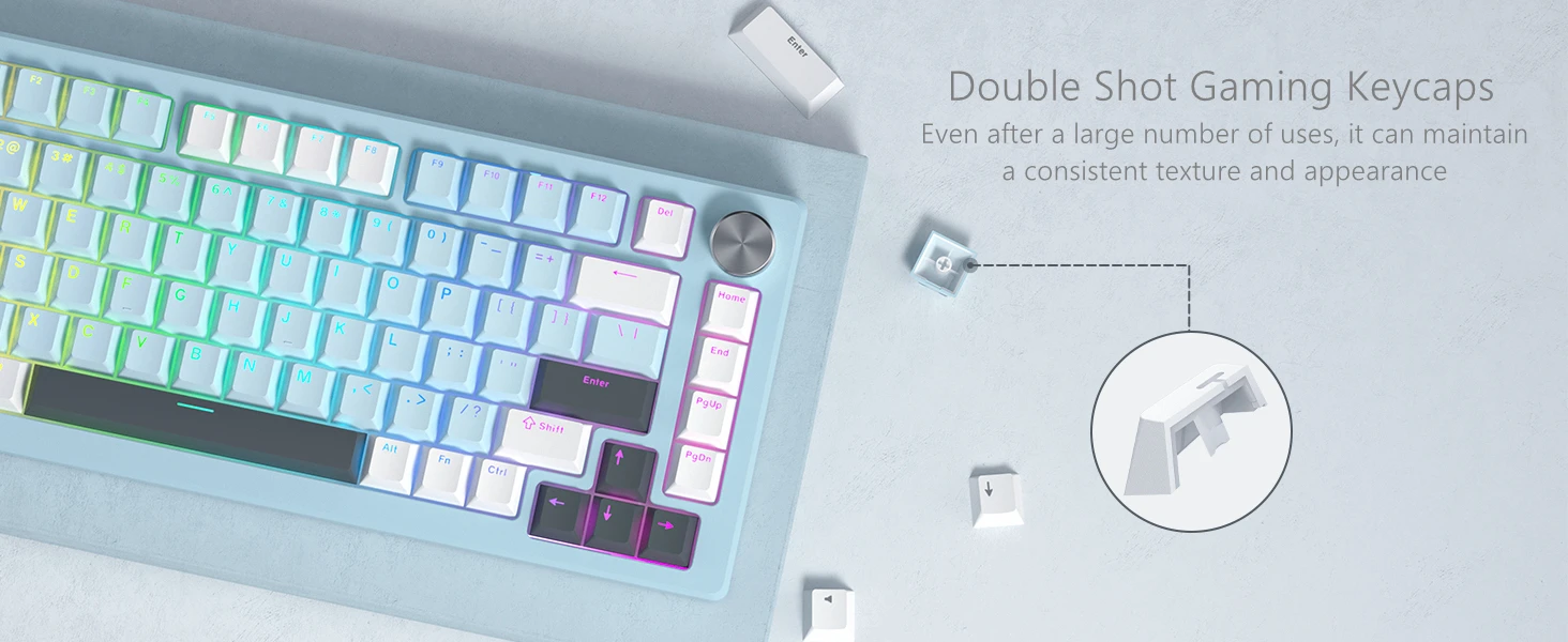 Con material PBT de alta calidad y un revestimiento antigrasa, estas teclas brindan una durabilidad de primer nivel y una excelente sensación al escribir.menos propenso a la acumulación de suciedad.Sin retroiluminación.