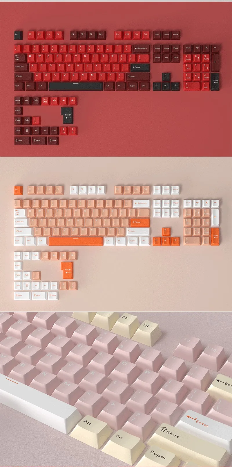 Comprar Teclas PBT de doble disparo, 126 teclas, perfil de cereza, teclas WOB blancas y rosas para teclado mecánico Cherry MX Switch ISO Enter personalizado