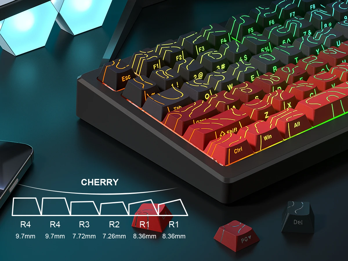 Comprar Teclas PBT de doble disparo, color rojo degradado, perfil de cereza, impresión lateral, brillo a través de teclas para interruptores MX, Teclado mecánico para jugar