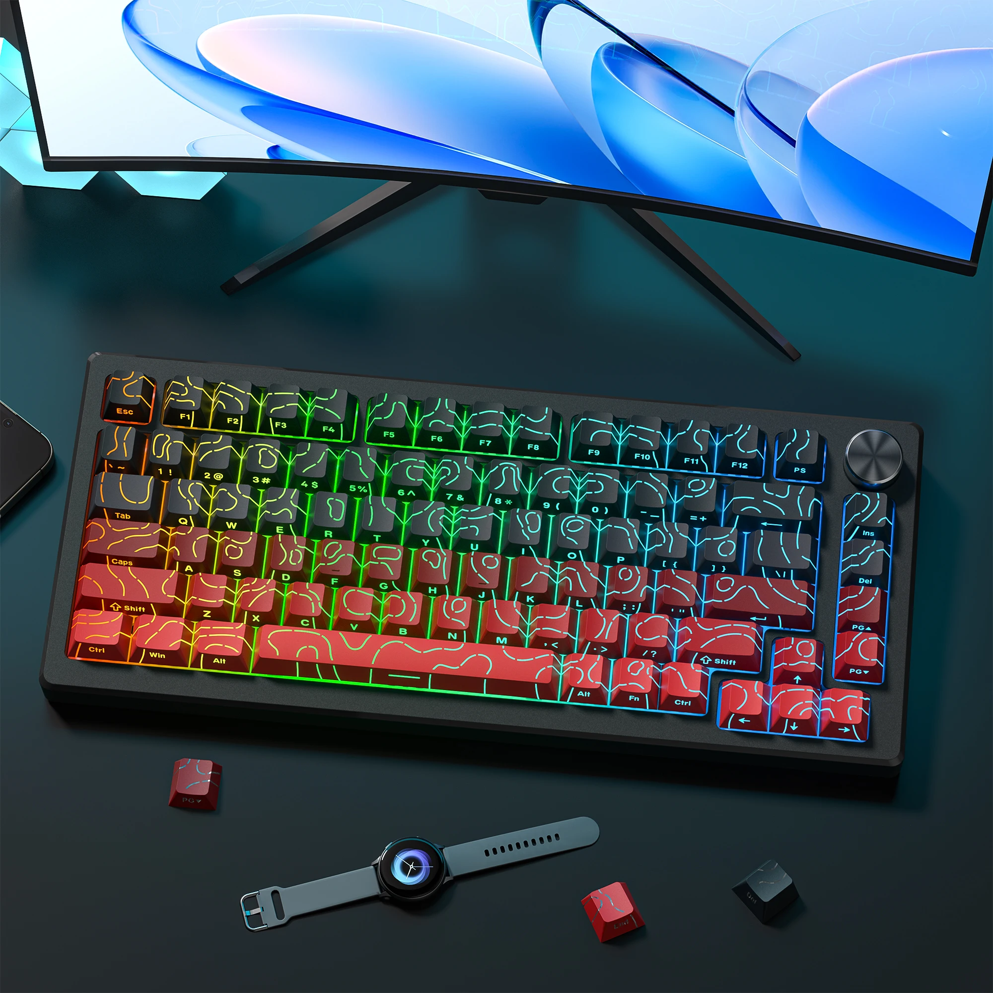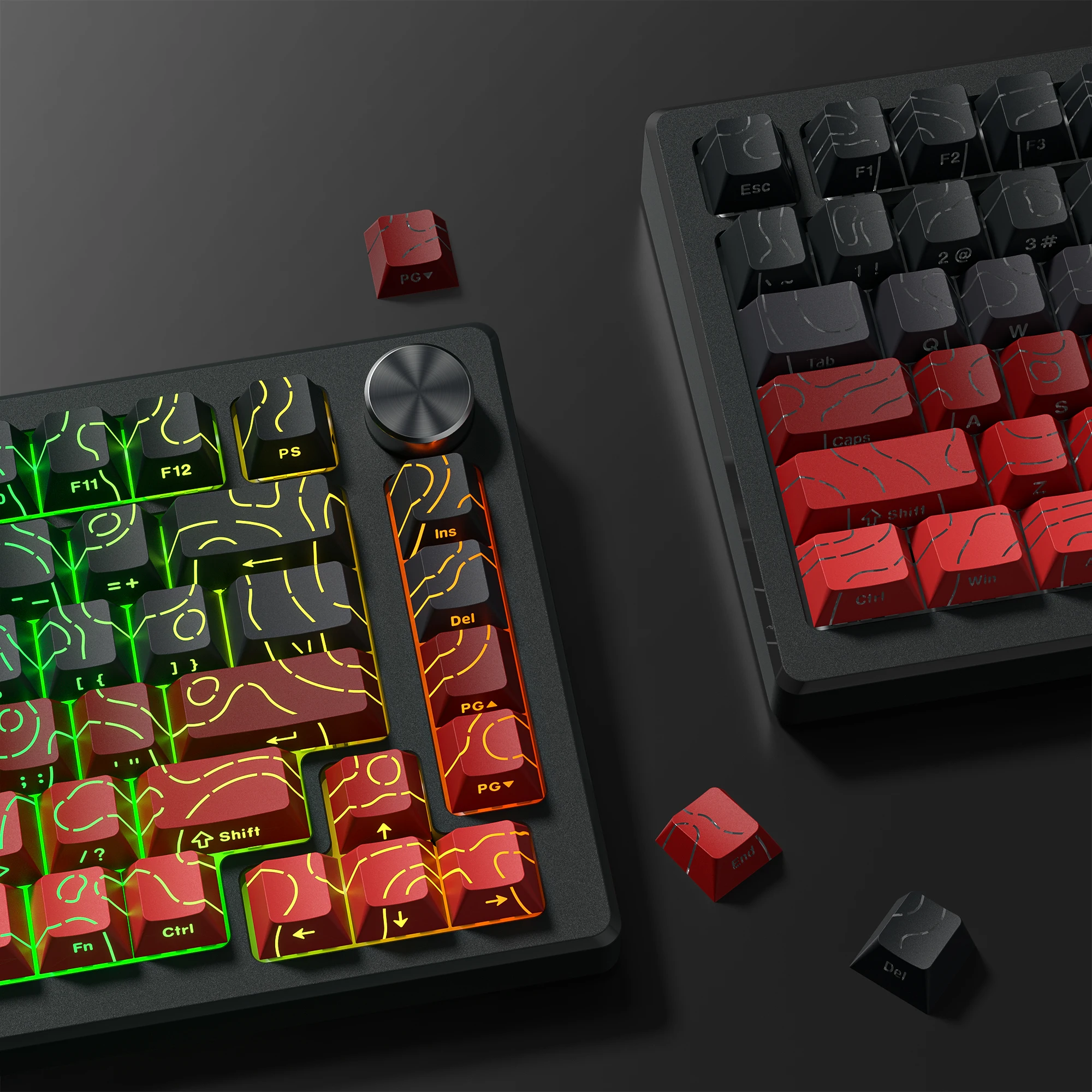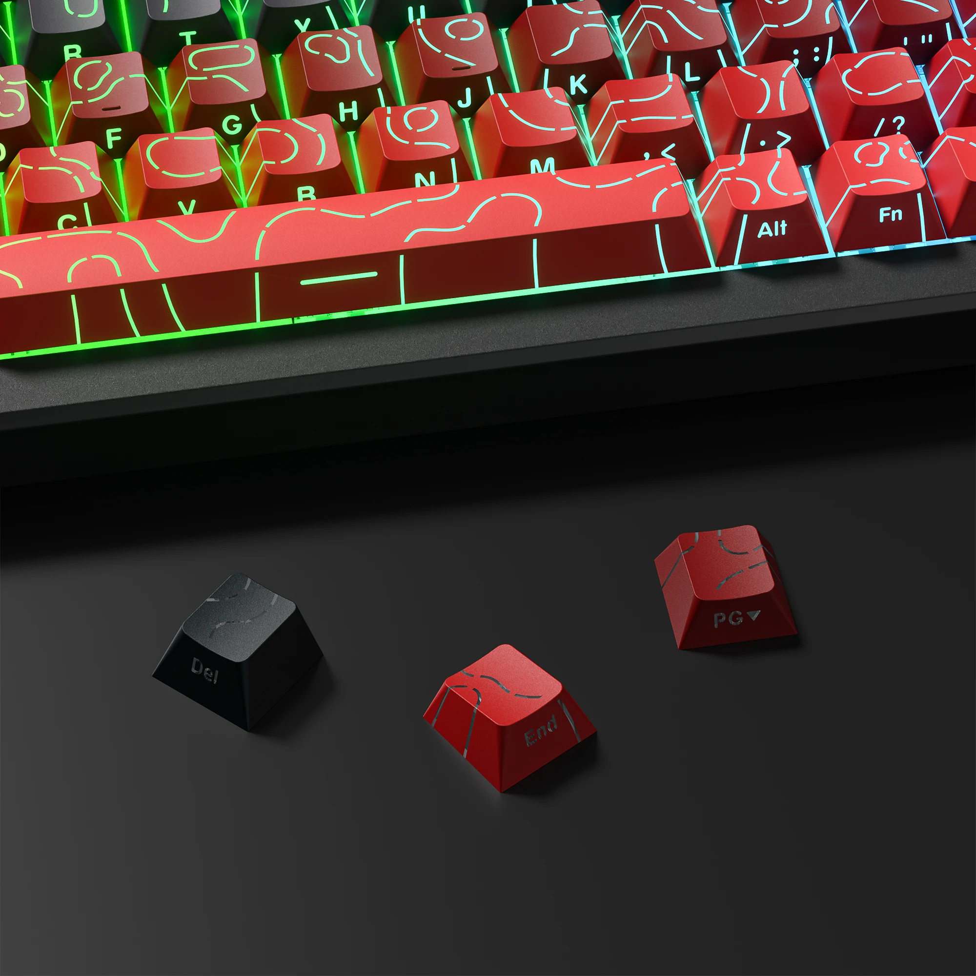 Comprar Teclas PBT de doble disparo, color rojo degradado, perfil de cereza, impresión lateral, brillo a través de teclas para interruptores MX, Teclado mecánico para jugar