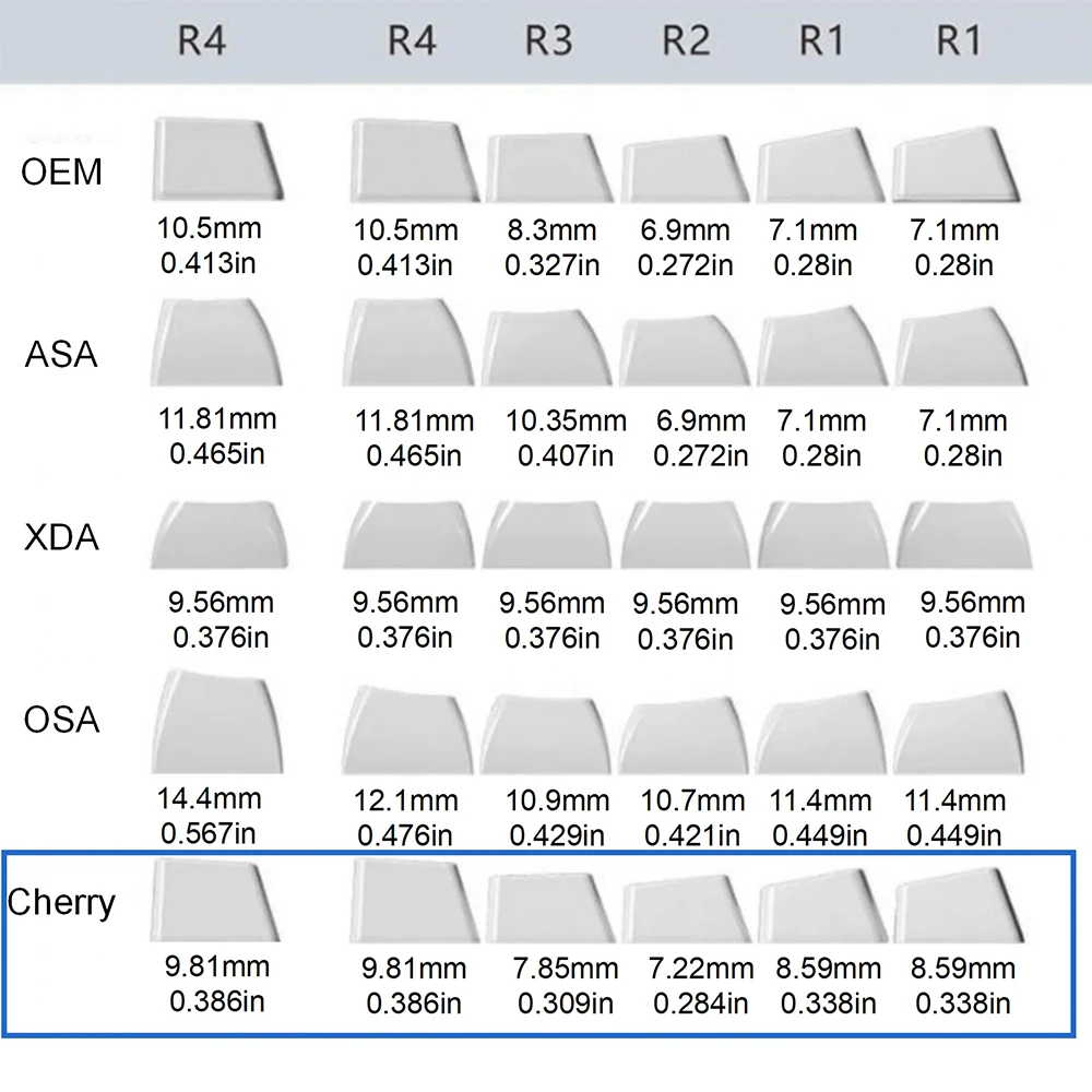 【Teclas de perfil de cereza】 Estas teclas presentan un diseño de perfil de cereza para un ajuste más ergonómico.Las teclas altas y el diseño curvo brindan una experiencia cómoda y duradera, incluso con un uso prolongado, evitando la fatiga.