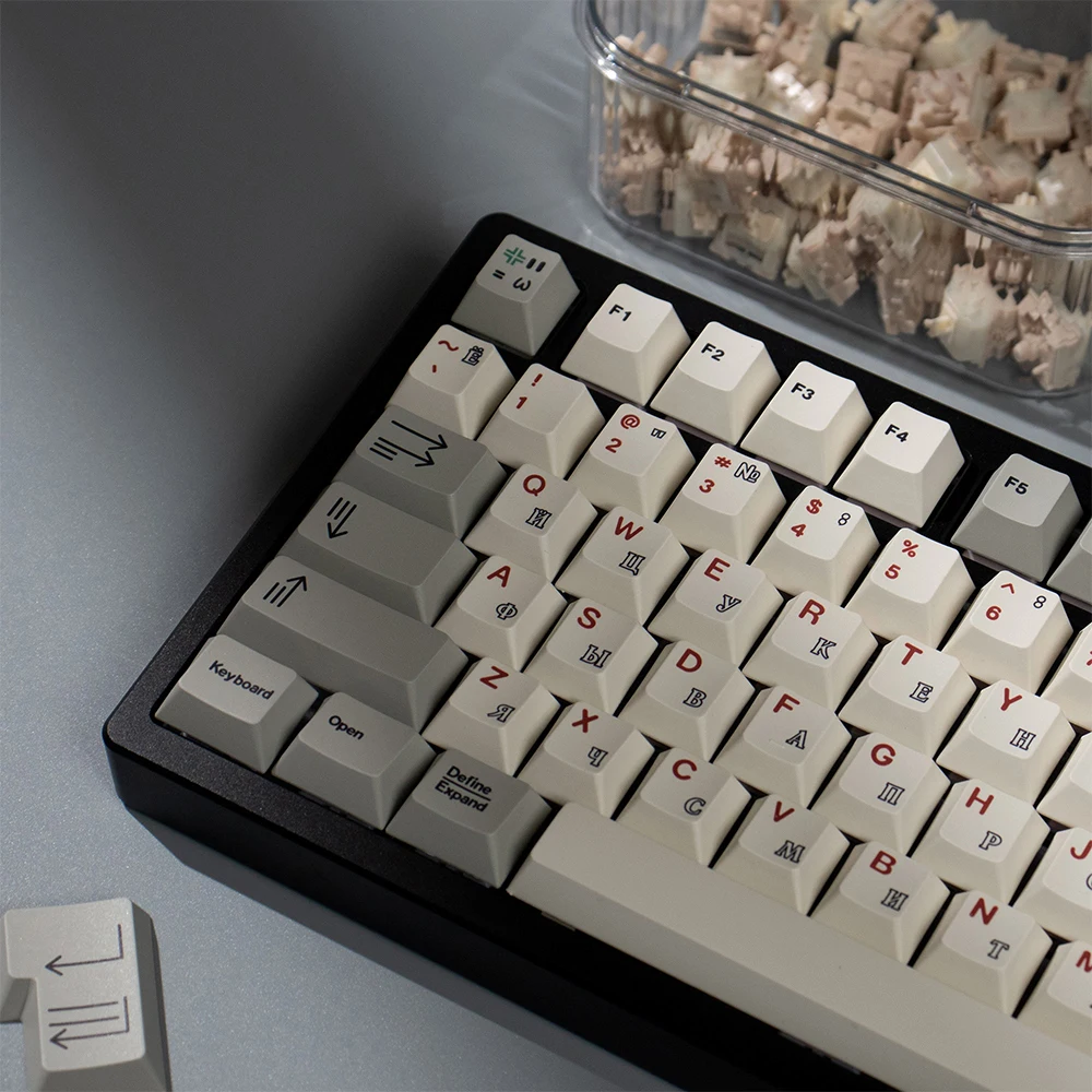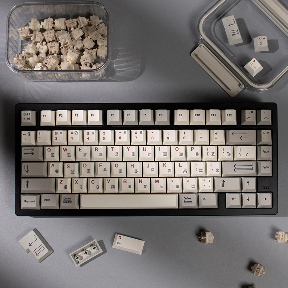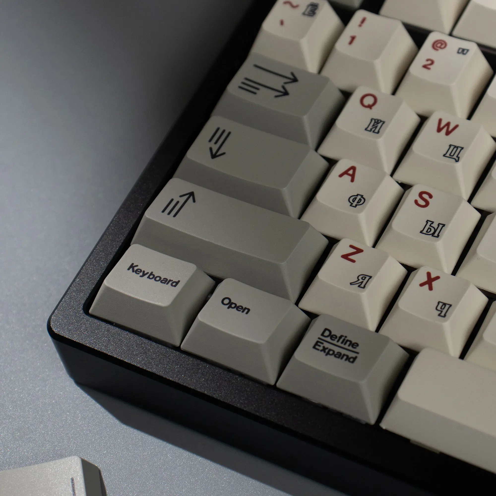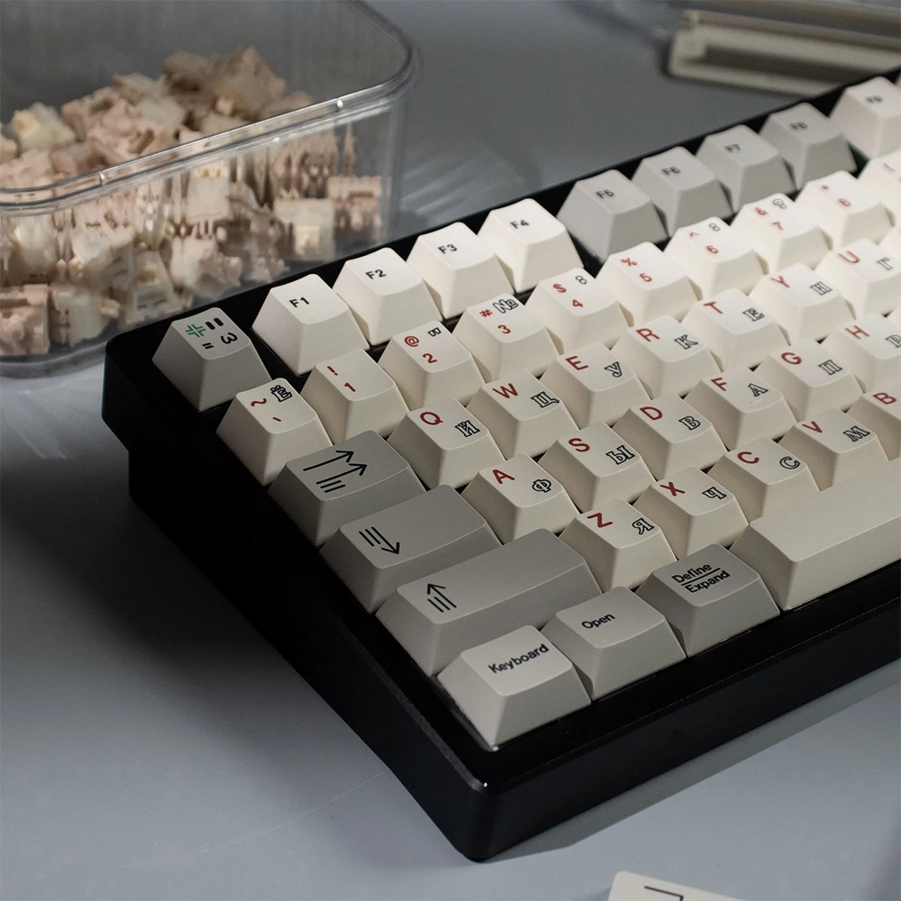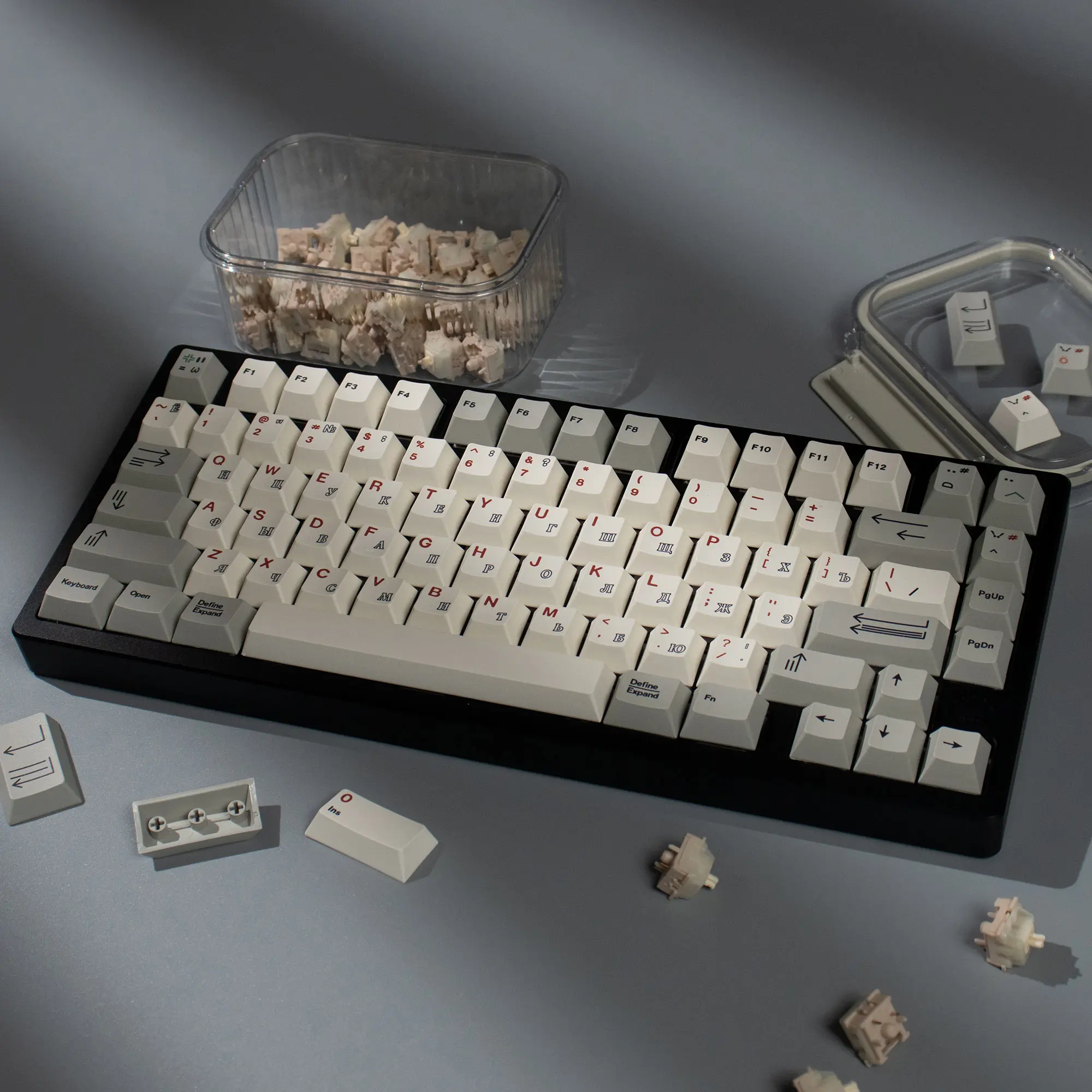 Comprar Teclas PBT de fuente hueca gris Retro de 147 teclas, teclas de sublimación de tinte de perfil de cereza para teclado mecánico 61/64/87/96
