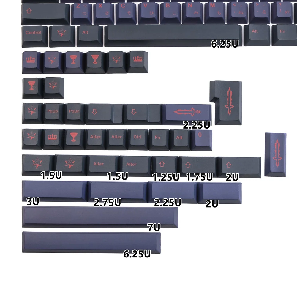 Total de 142 teclas, 1.25u 1,5U alt ctrl, 1.75U, 2U, 2.25U Shift, 2U, 2.25U, 2.75U, 3U 6.25U, 7U Espacio, ISO Enter