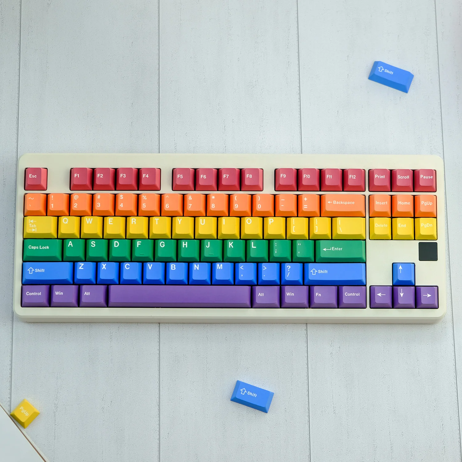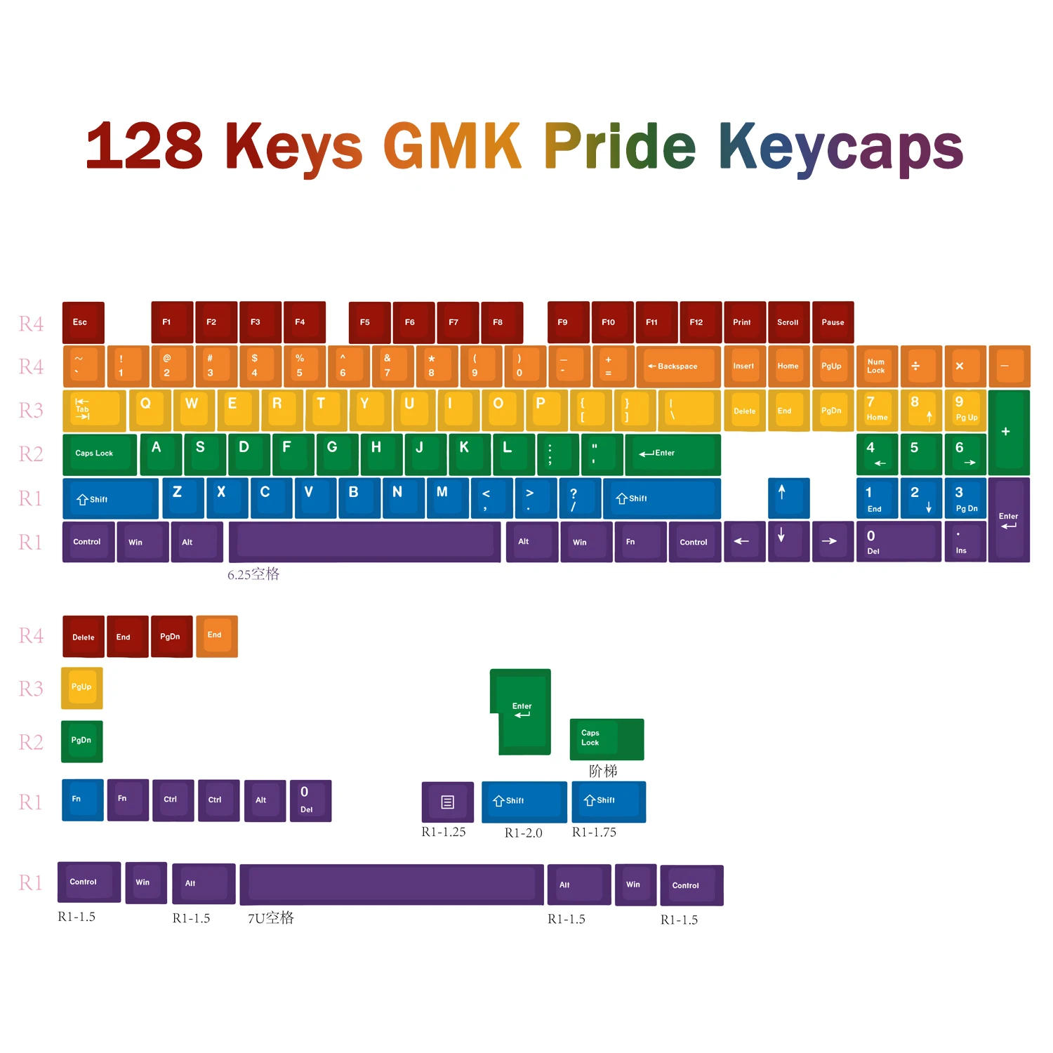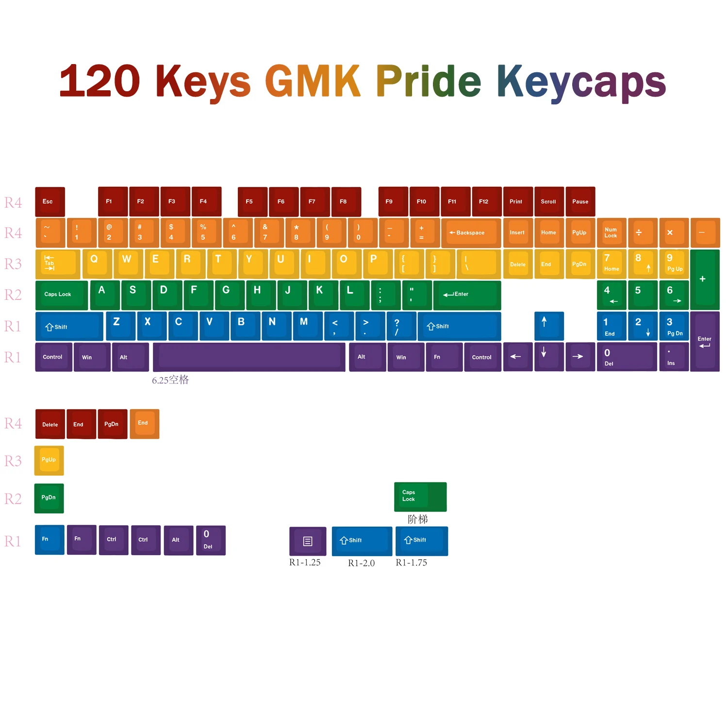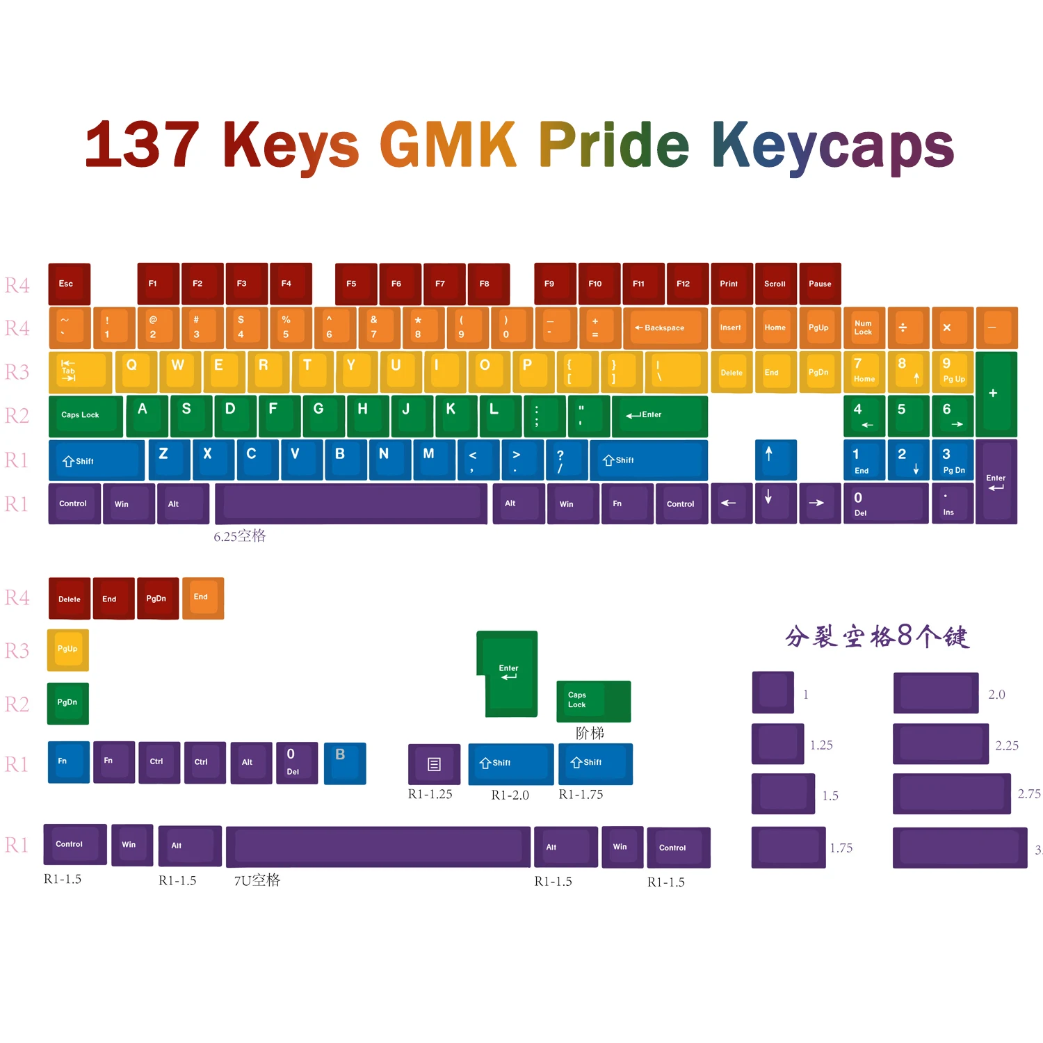 Comprar Teclas PBT GMK Pride, teclas con perfil de cereza, Arco Iris, tinte de 5 lados, sublimación, Teclado mecánico para interruptor MX, cambio de 1,75u