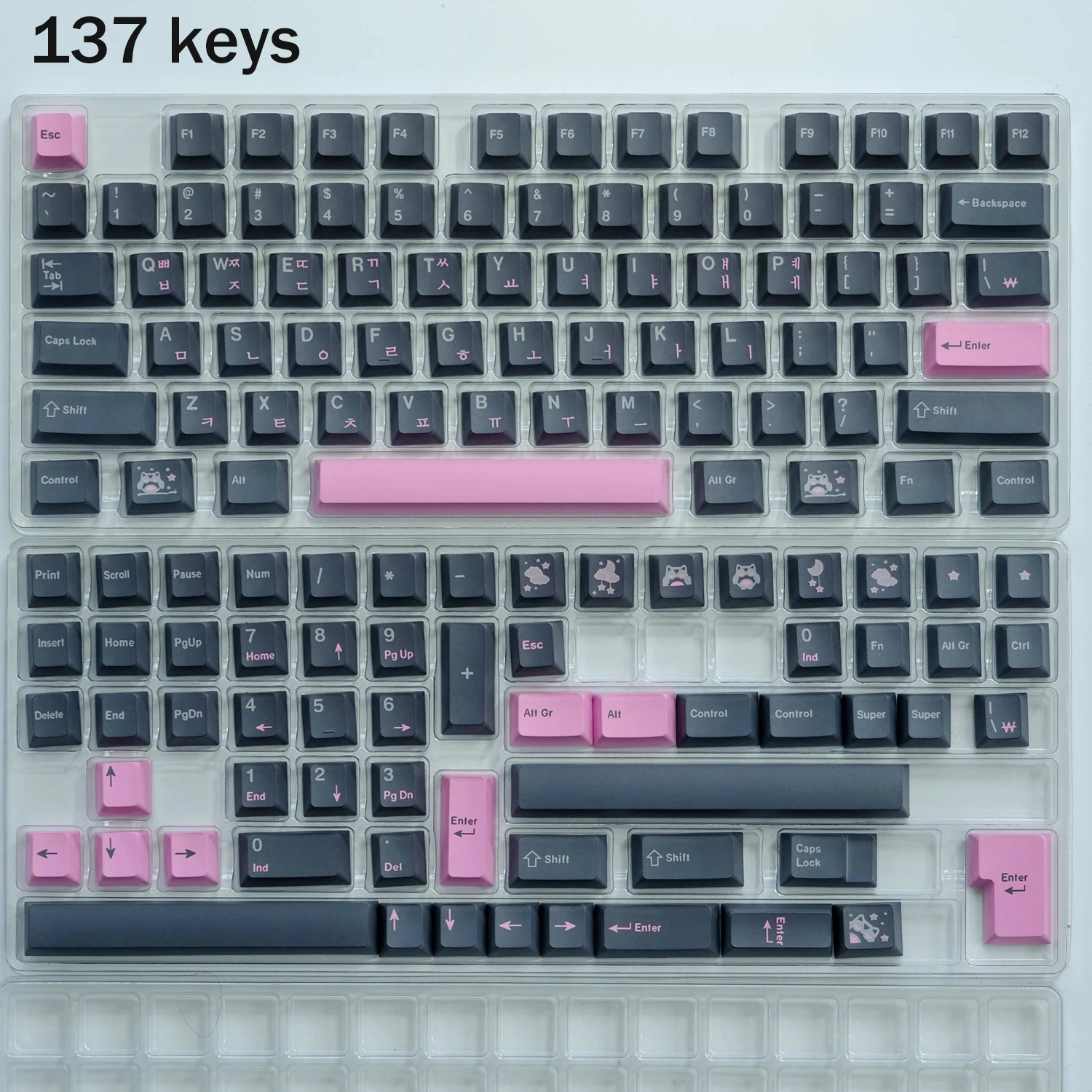 137 teclas, incluye cambio 1.75U 2U, 1.5U Alt Ctrl, 6.25U 7U Barra espaciadora, ISO enter