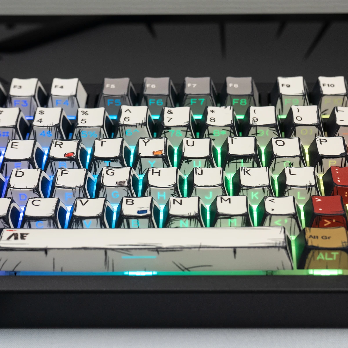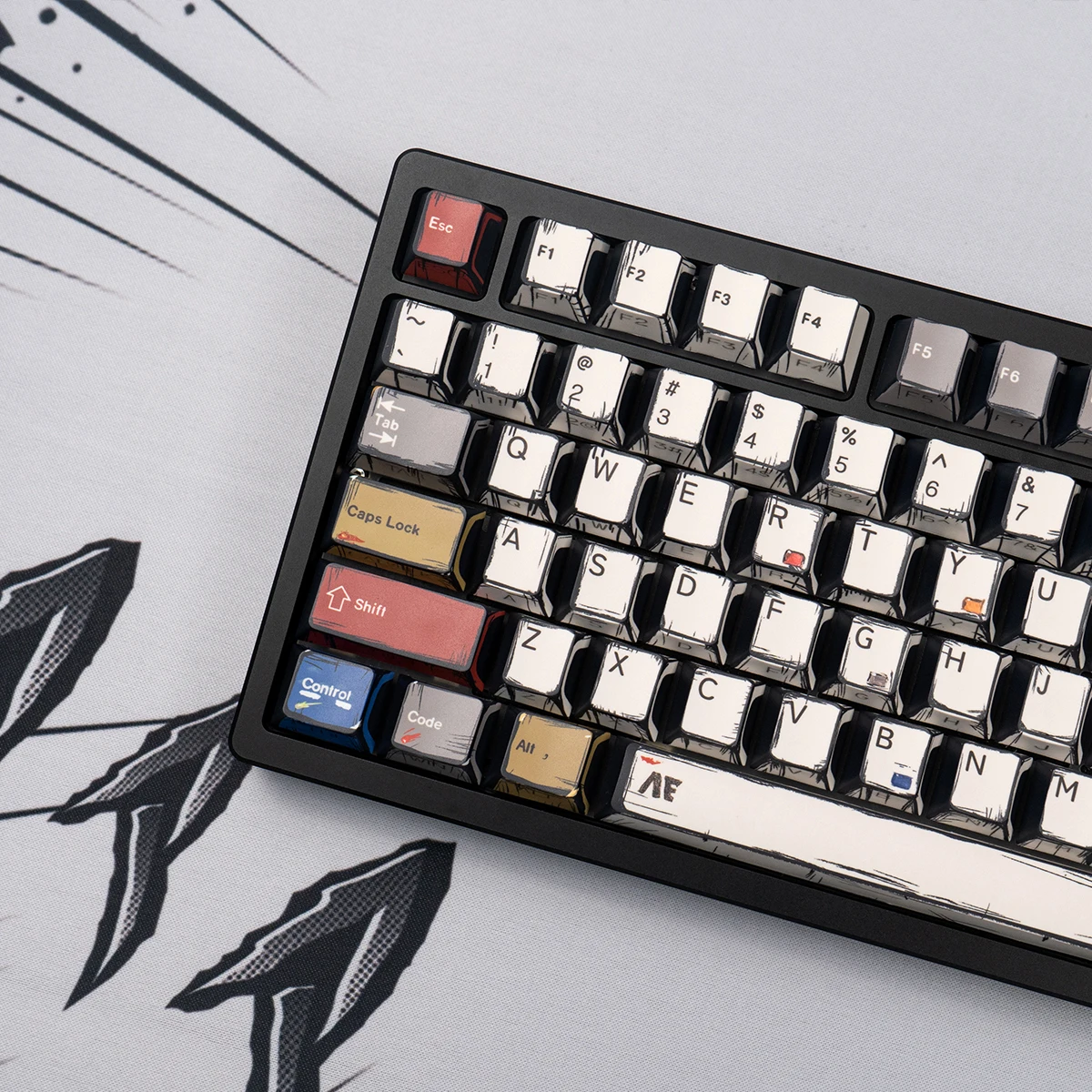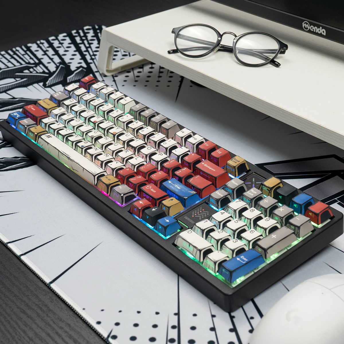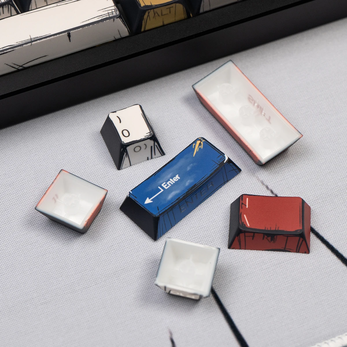 Comprar Teclas PBT de luz mixta de cómic, perfil de cereza, tinte de cinco lados, impresión brillante, teclas para teclado mecánico con diseño ISO