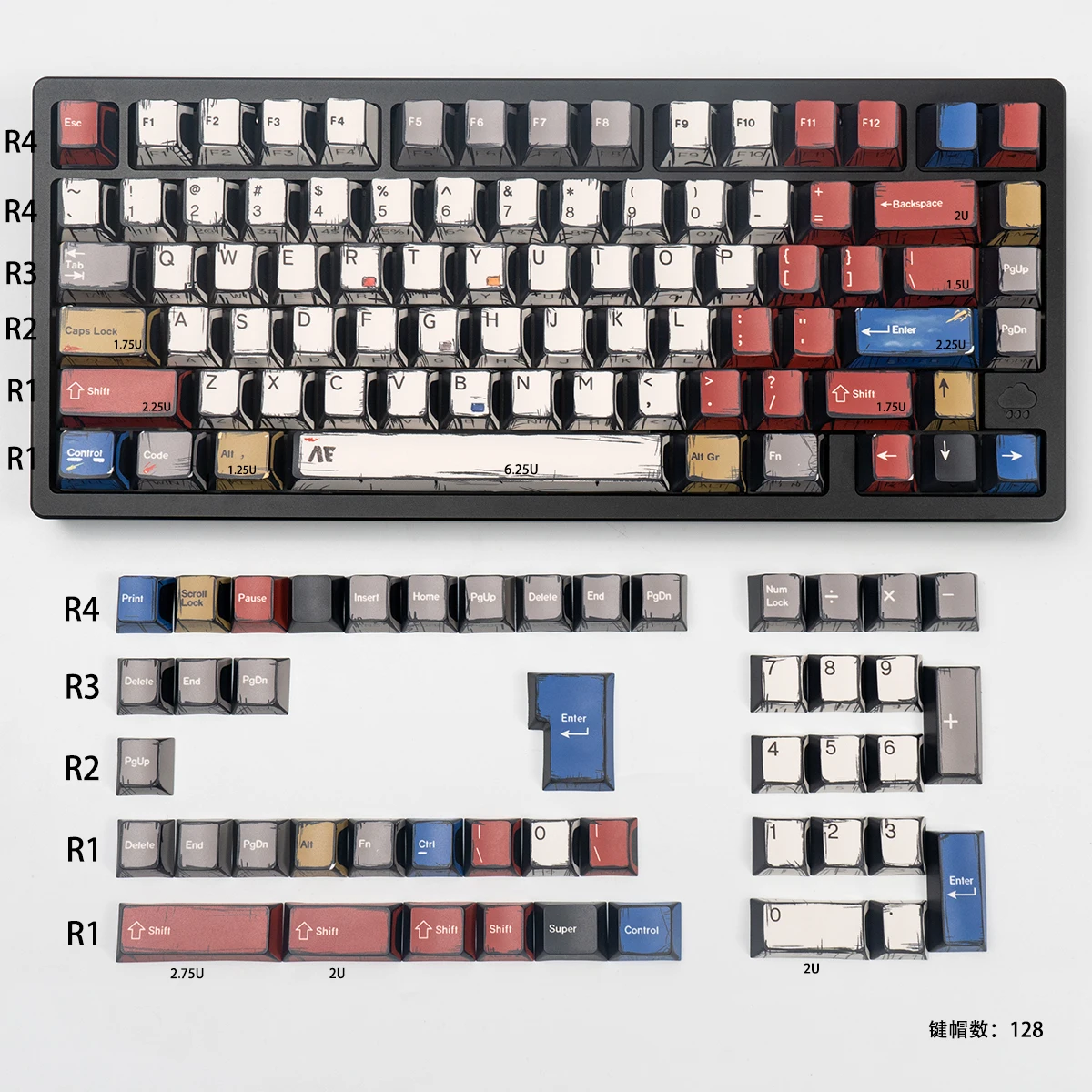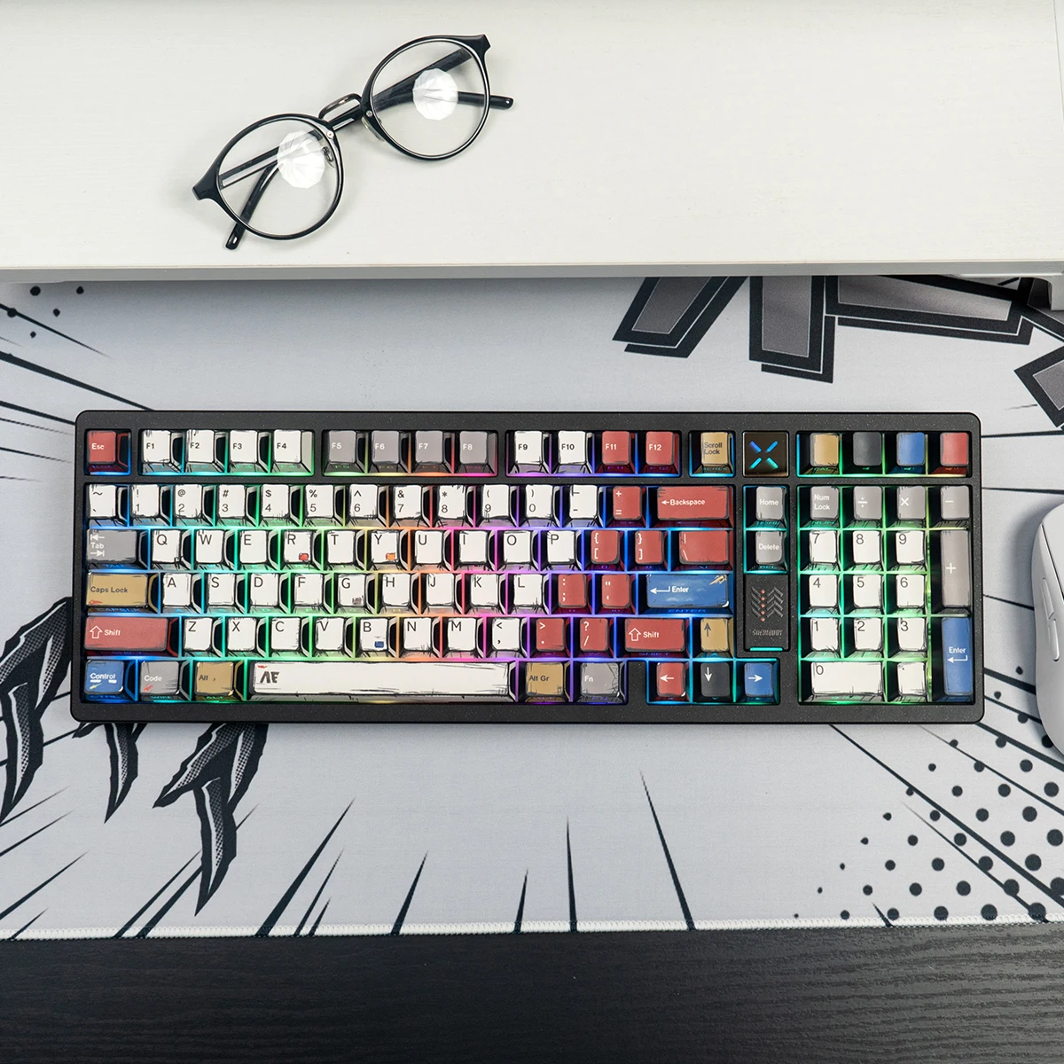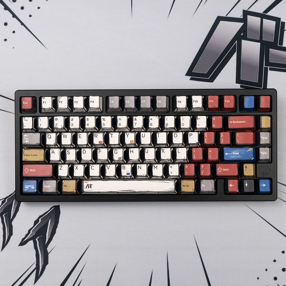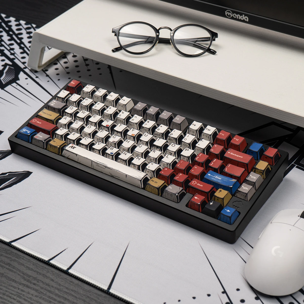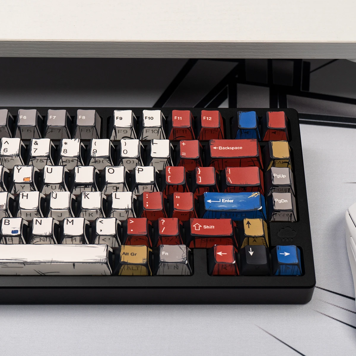 Comprar Teclas PBT de luz mixta de cómic, perfil de cereza, tinte de cinco lados, impresión brillante, teclas para teclado mecánico con diseño ISO