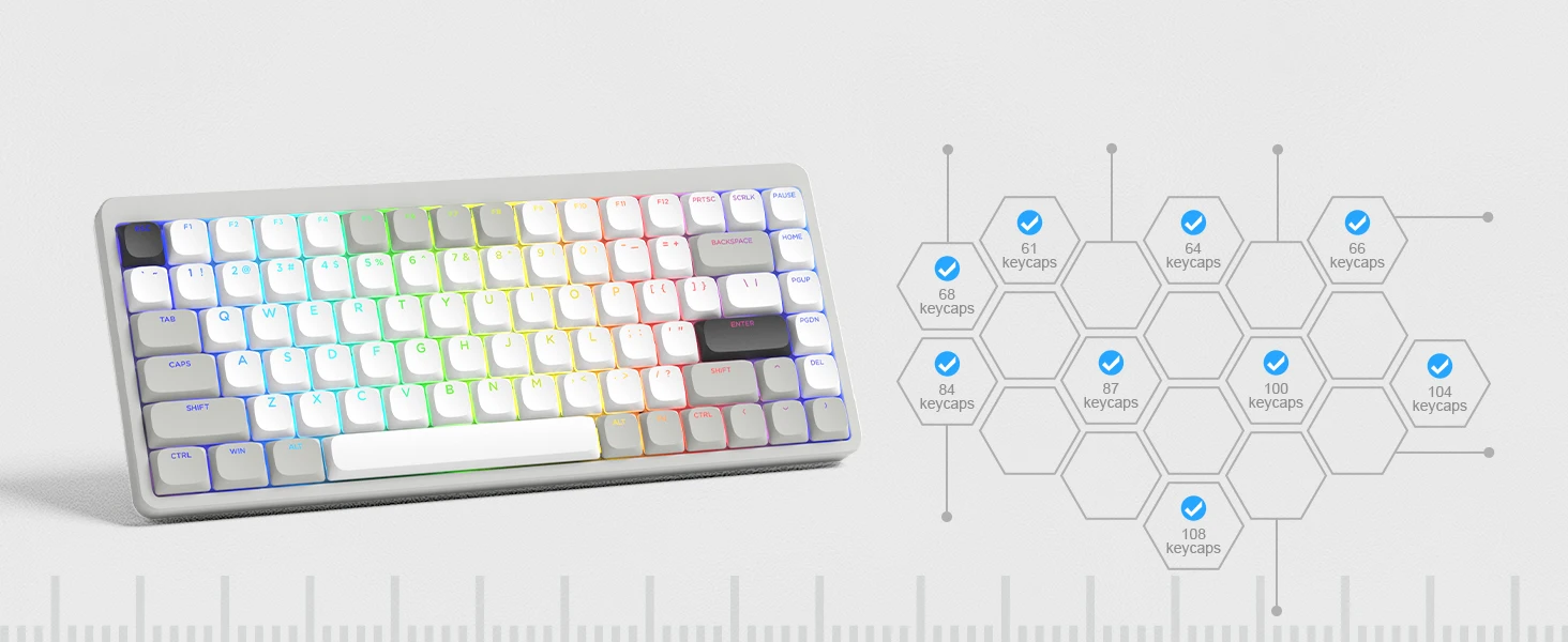 Most ANSI US layout 61/64/68/84/87/96/98/100/104/108 keys mechanical keyboards