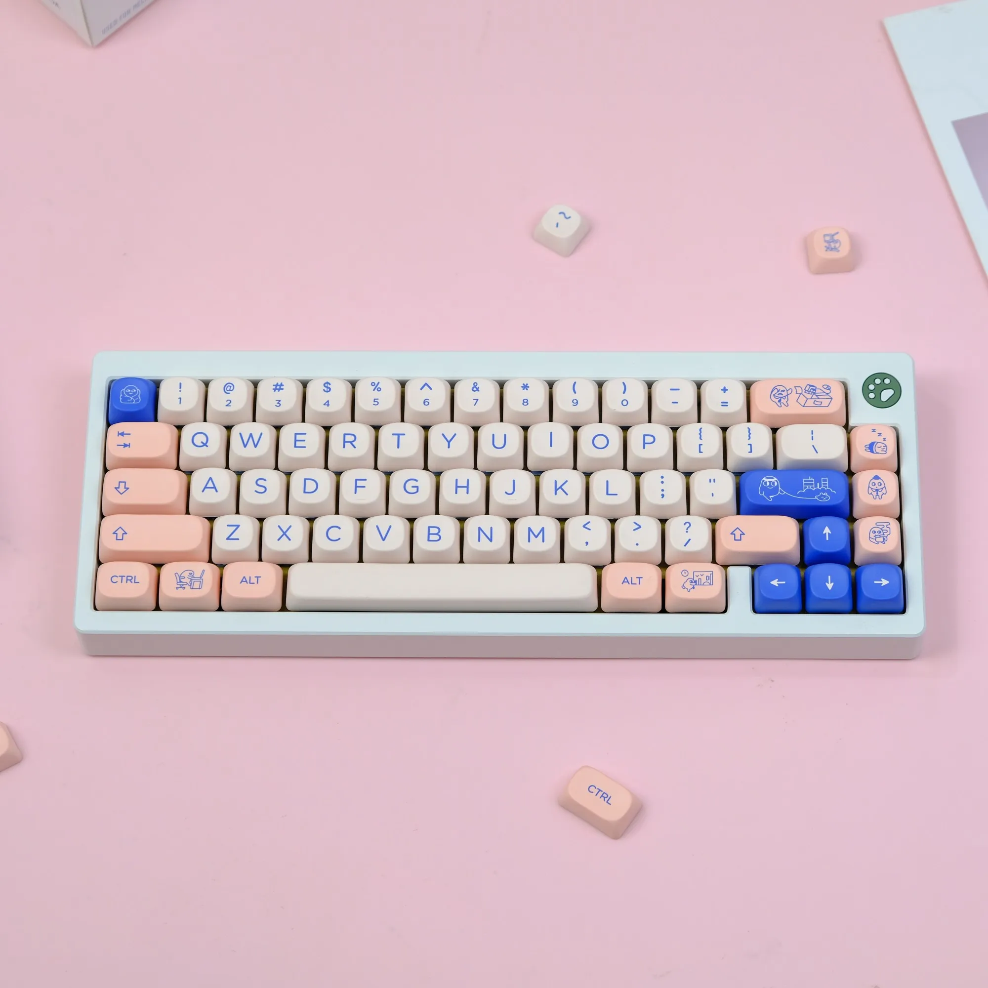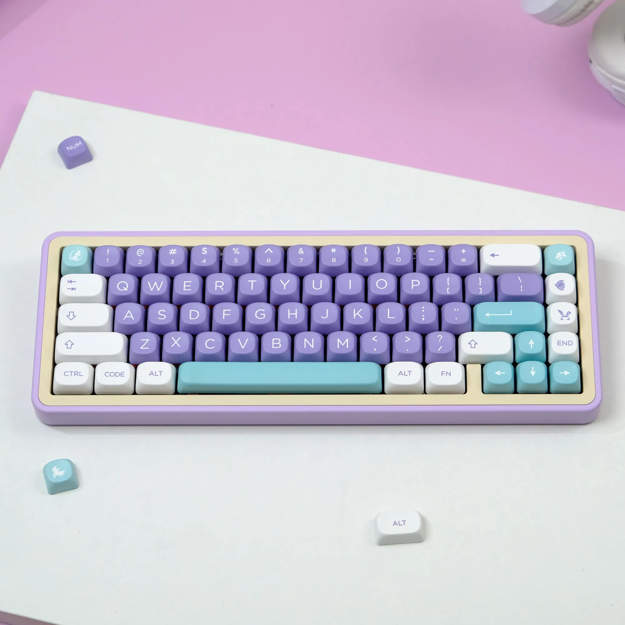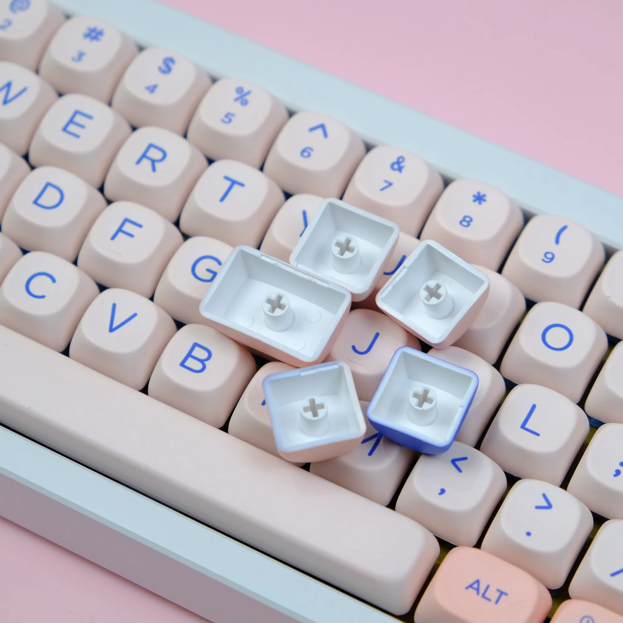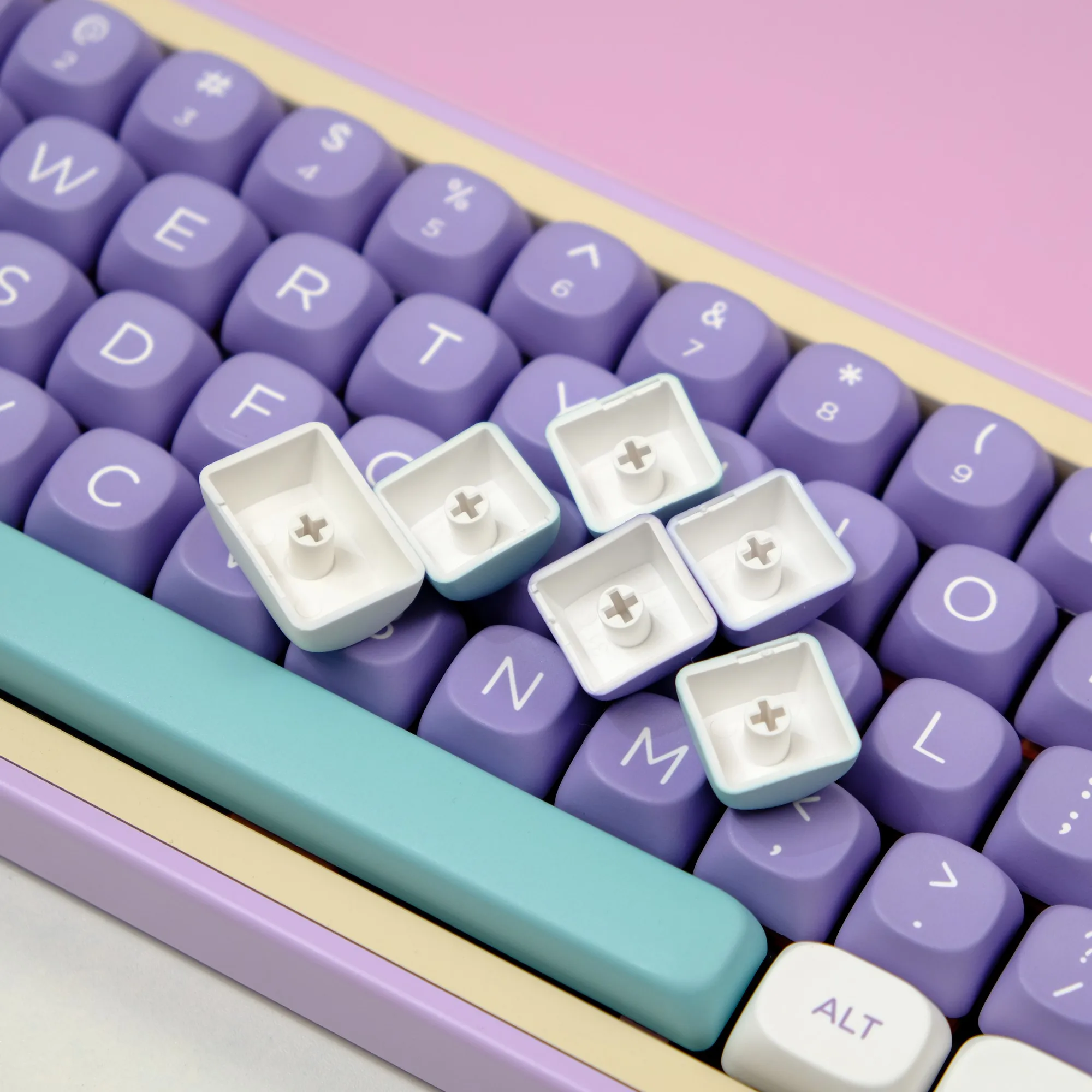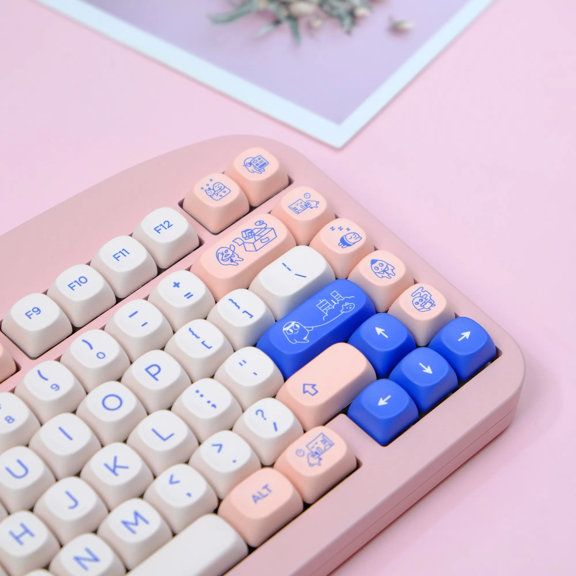 Comprar Teclas PBT MOA Profile Fairy Mulan Dye Sub, teclas minimalistas personalizadas para Teclado mecánico de madera para juegos, color blanco y rosa