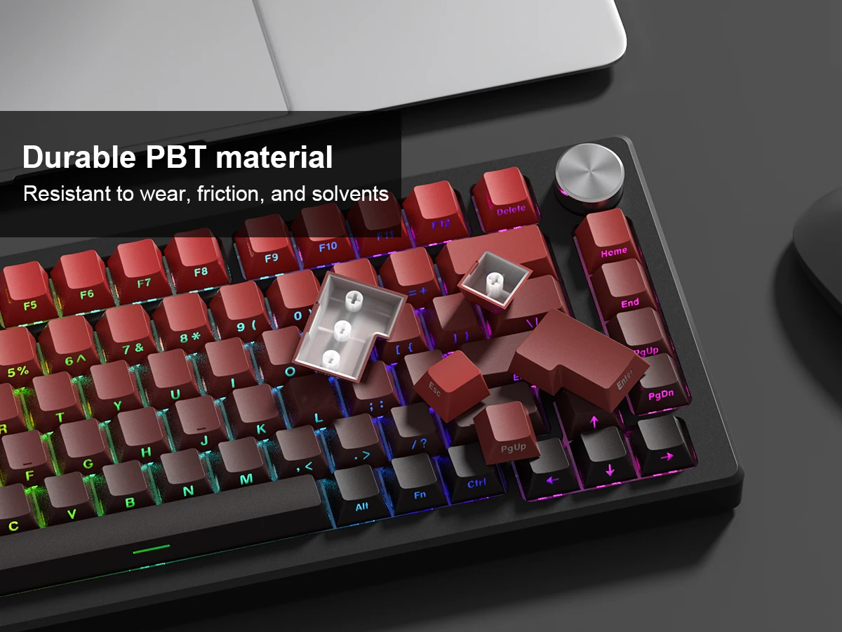 Comprar Teclas PBT con perfil de cereza roja degradada con estampado lateral de 136 teclas, doble disparo, brillo a través de teclas retroiluminadas para teclado mecánico MX