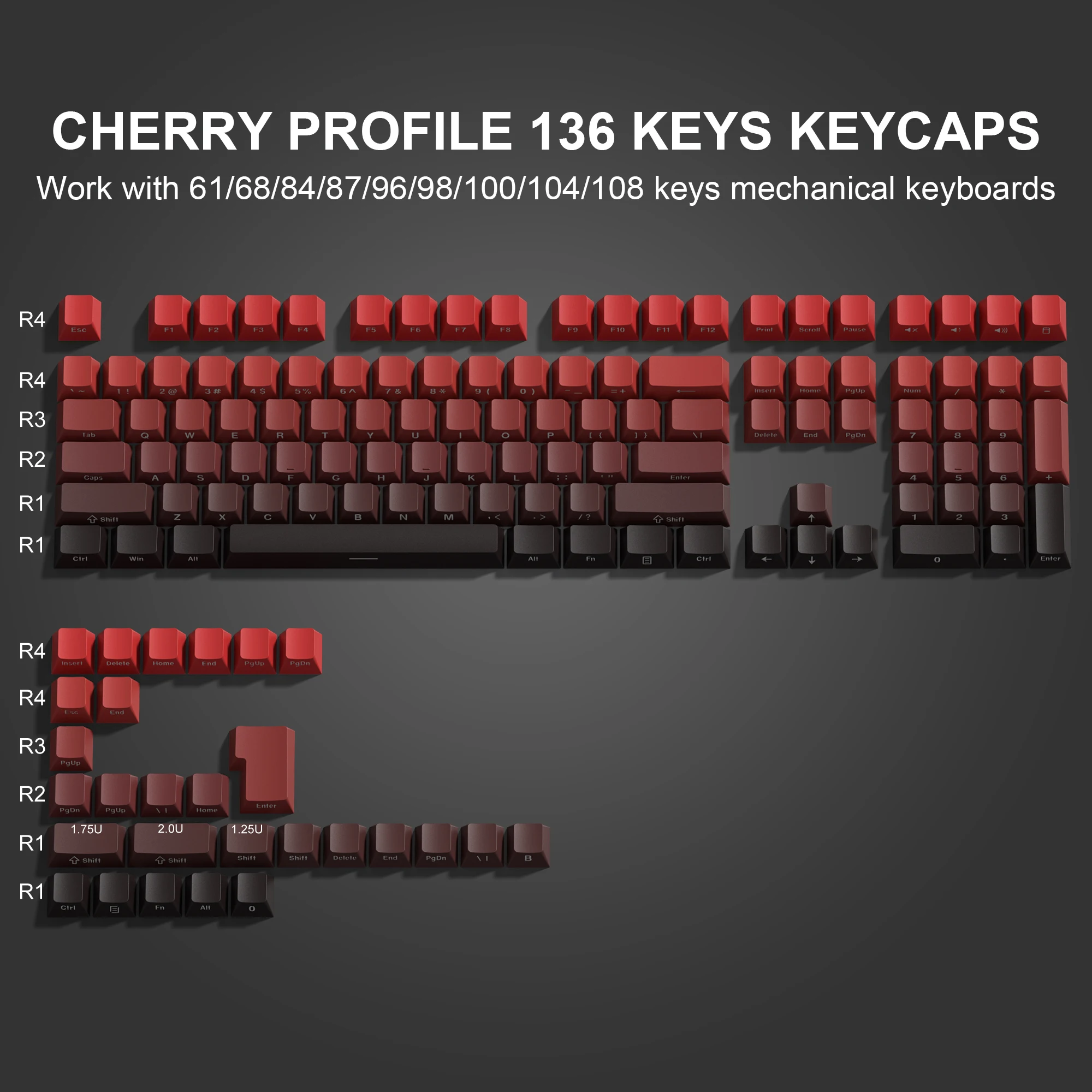 Comprar Teclas PBT con perfil de cereza roja degradada con estampado lateral de 136 teclas, doble disparo, brillo a través de teclas retroiluminadas para teclado mecánico MX