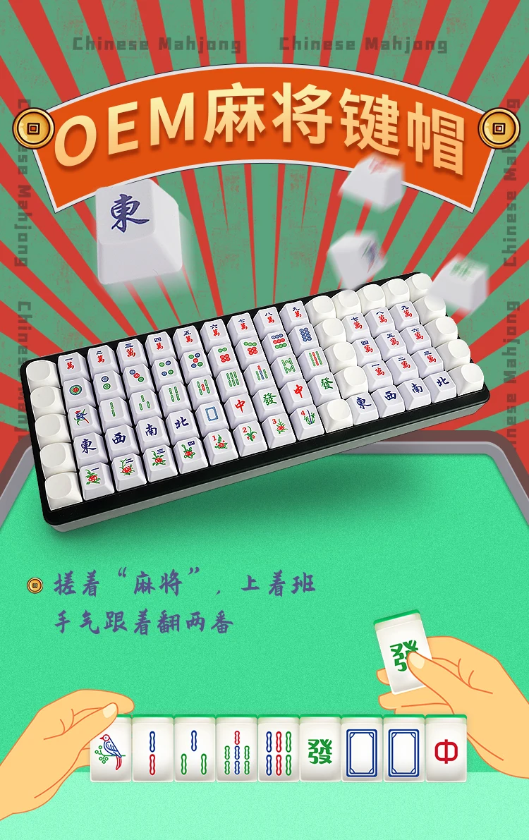 Mahjong OEM perfil PBT Keycaps para teclado mecánico para Cherry MX Key Cap personalidad Mah-Jongg Player Hotswap Custom Keycap