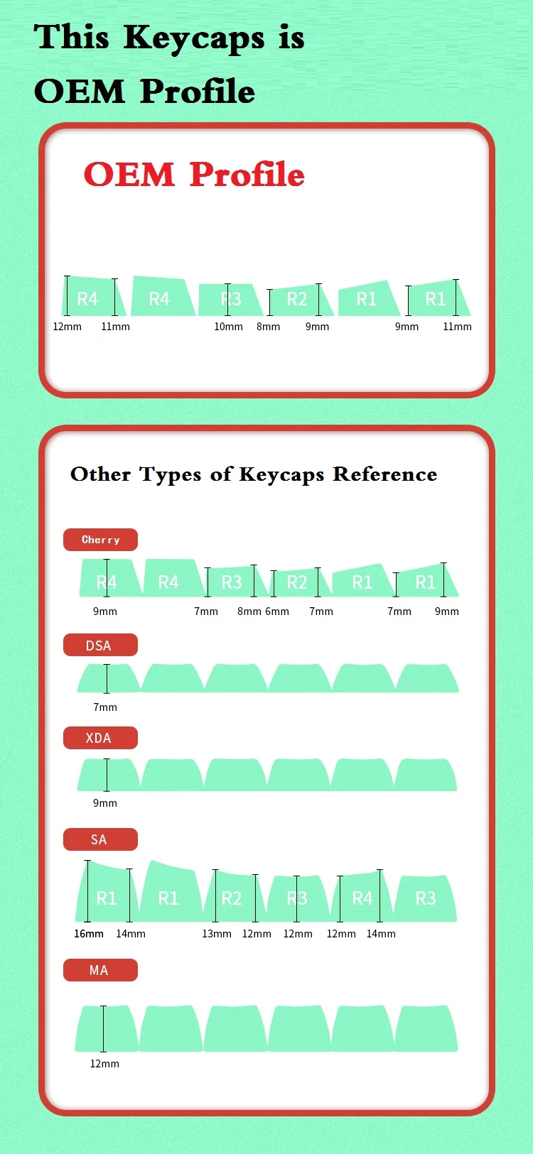 4. Altura: perfil OEM, adecuado para la mayoría de Teclados mecánicos.