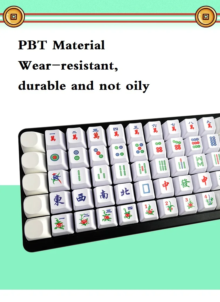Comprar Teclas PBT de perfil OEM Mahjong, teclas personalizadas para Teclado mecánico para Cherry MX, con personalidad, reproductor de Mah-Jongg, Hotswap