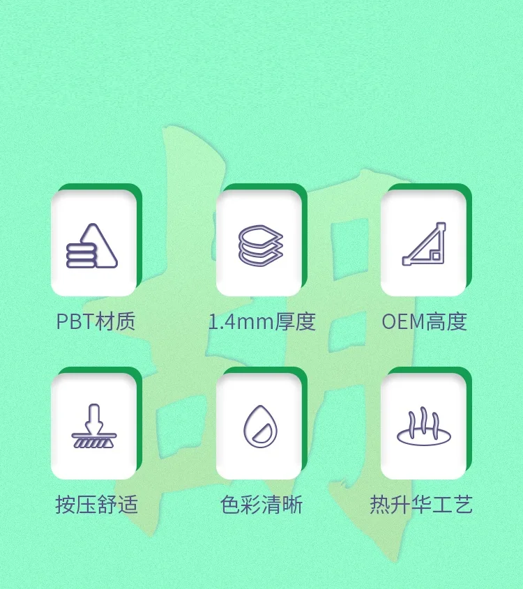 1. Utilice material PBT grueso para hacer teclas. El material PBT tiene una estructura molecular estable, resistencia a la corrosión, alta resistencia al calor, se puede usar sin aceite durante mucho tiempo y puede mantener su buen estado original durante mucho tiempo.