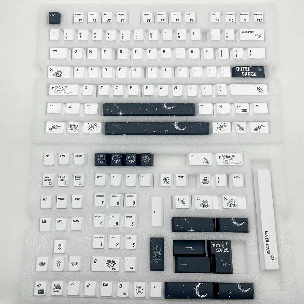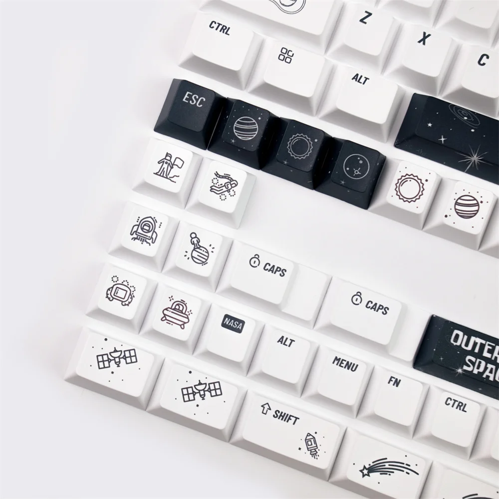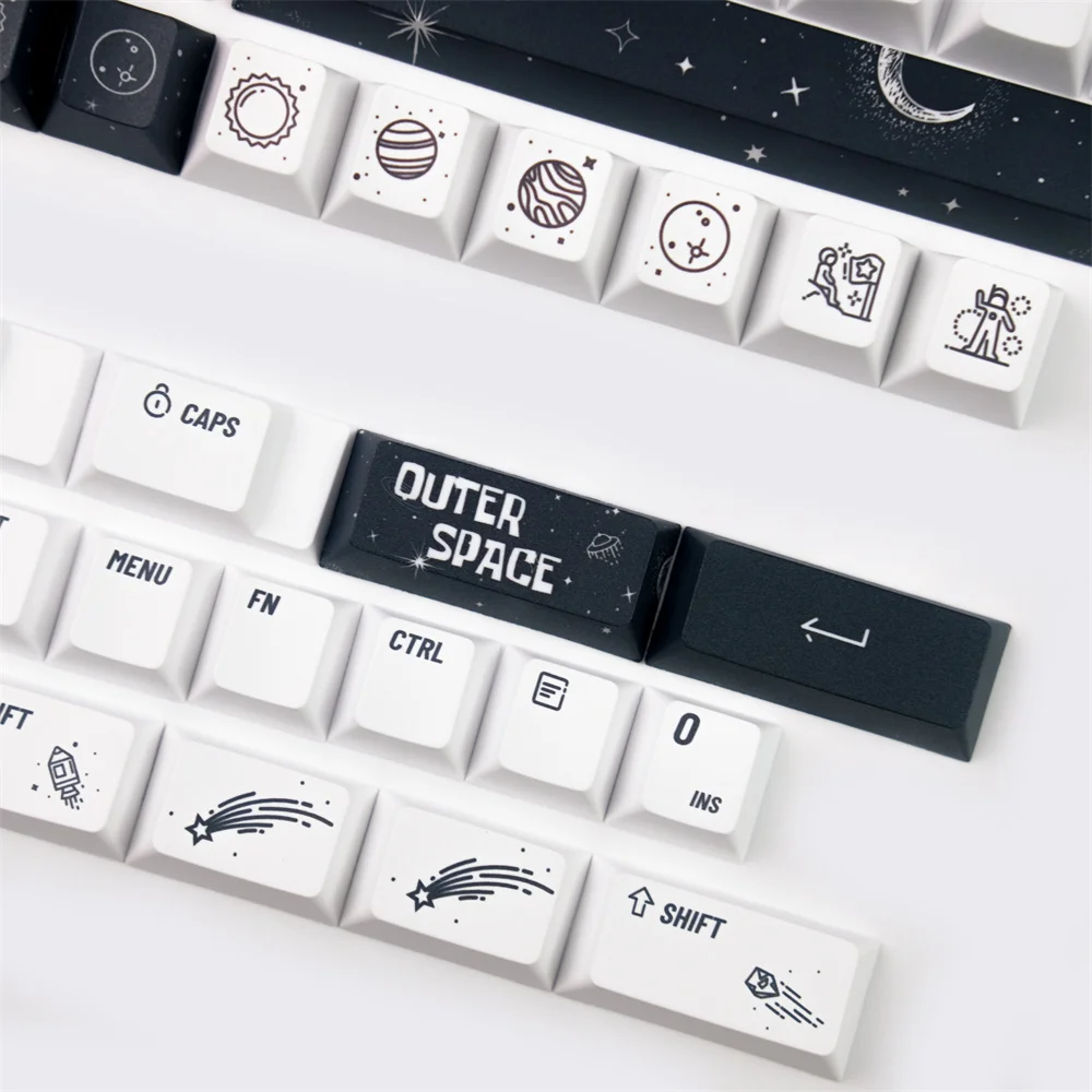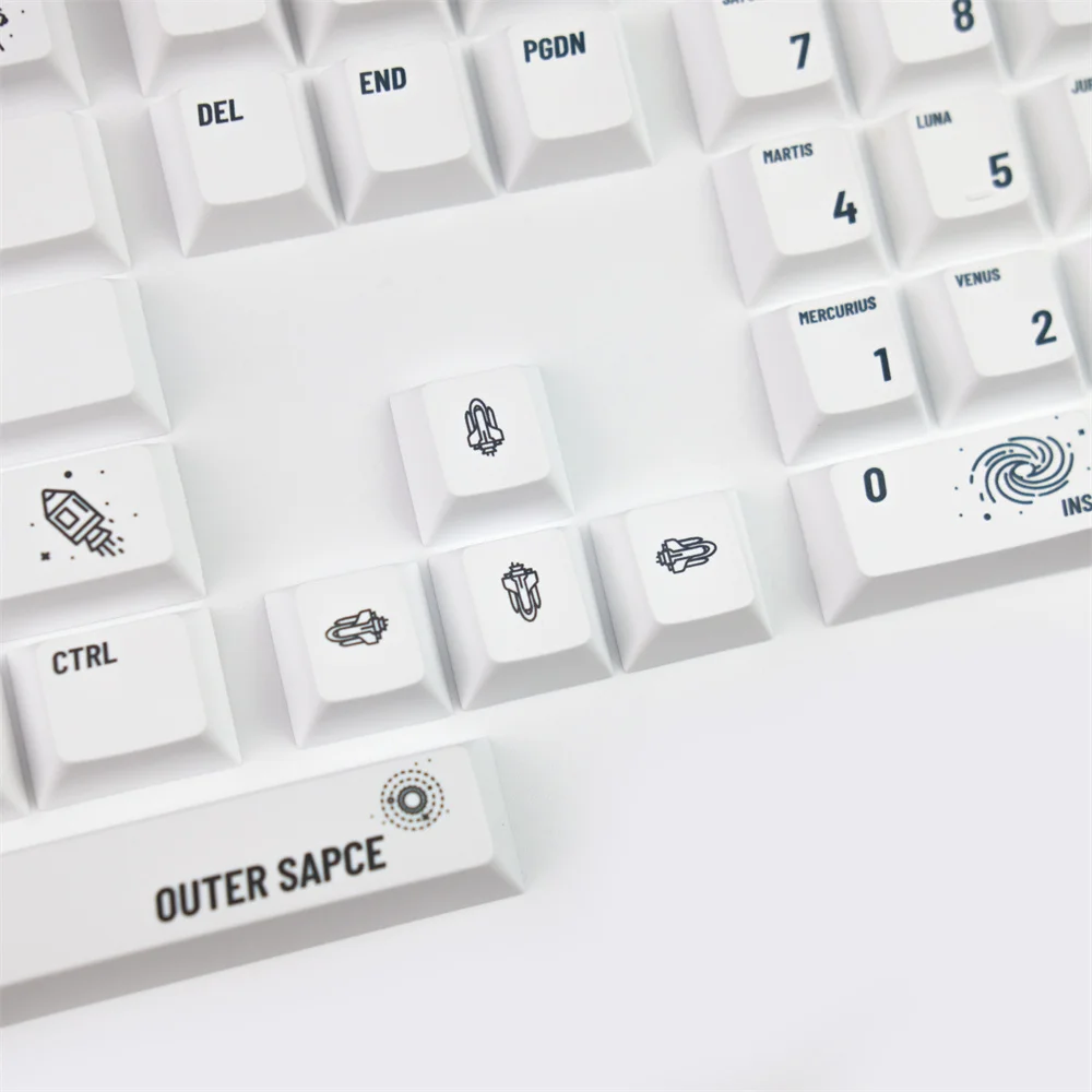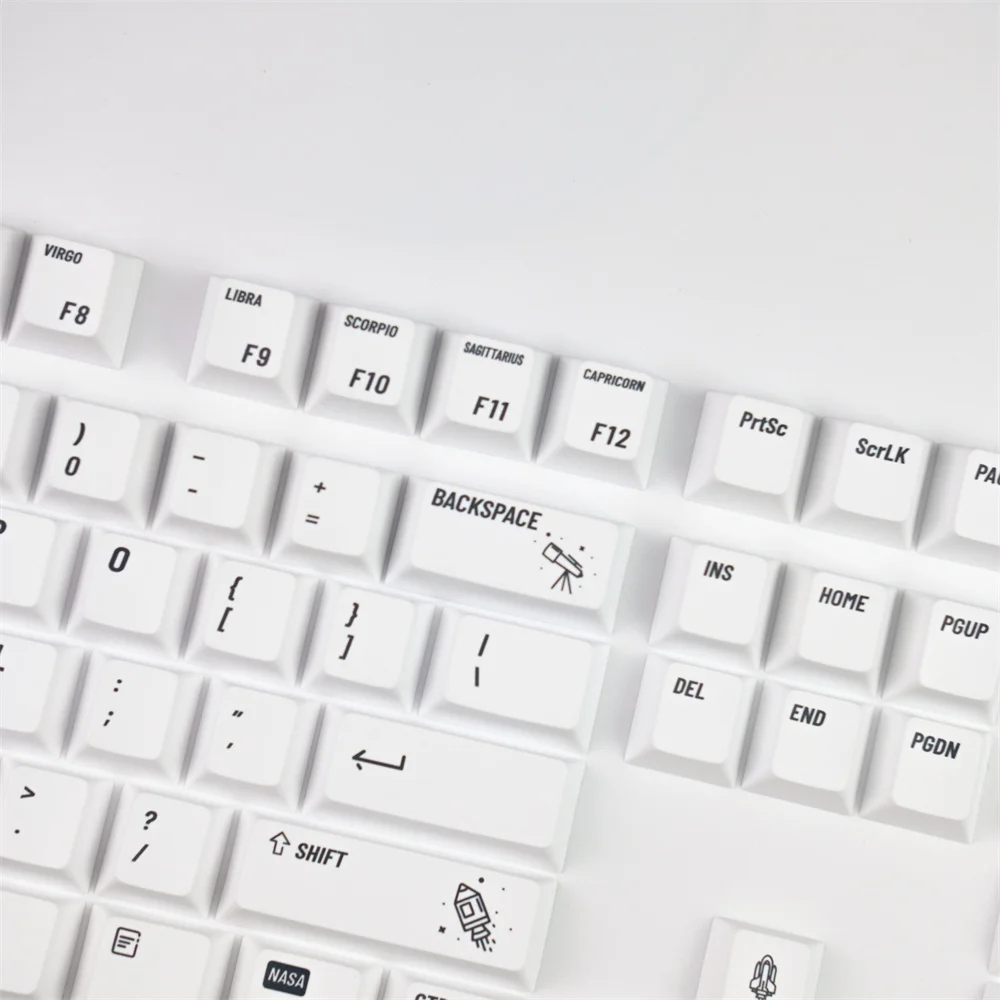 Comprar Teclas PBT Space Man minimalistas, teclas blancas y negras, perfil de cereza, teclas de teñido subcama para teclado de juegos mecánico, 140 teclas
