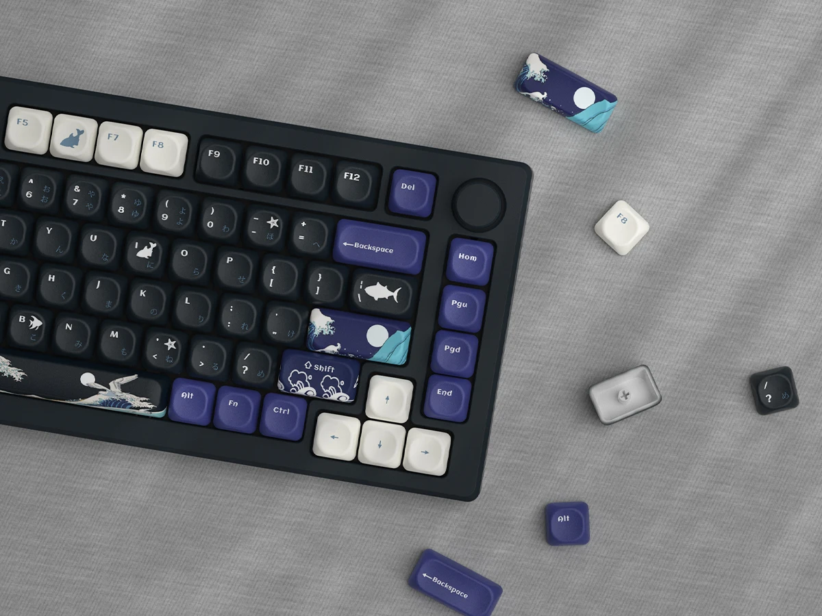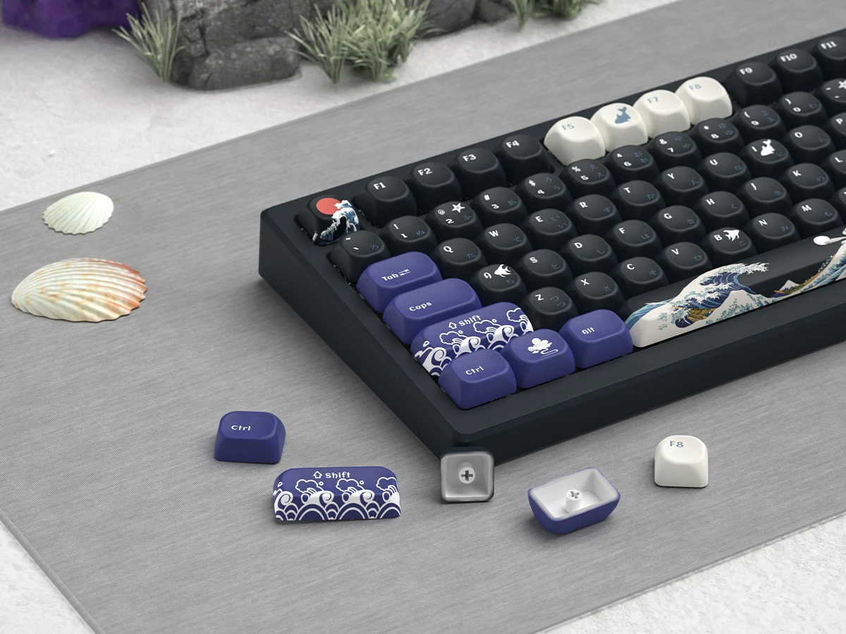 Qué hay en la caja:*Recordatorio: este conjunto no incluye teclado. Comprar Teclas PBT de sublimación de perfil MOA, teclas negras con tema Kanagawa, teclas japonesas, Teclado mecánico Cherry MX Switch, 134 teclas
