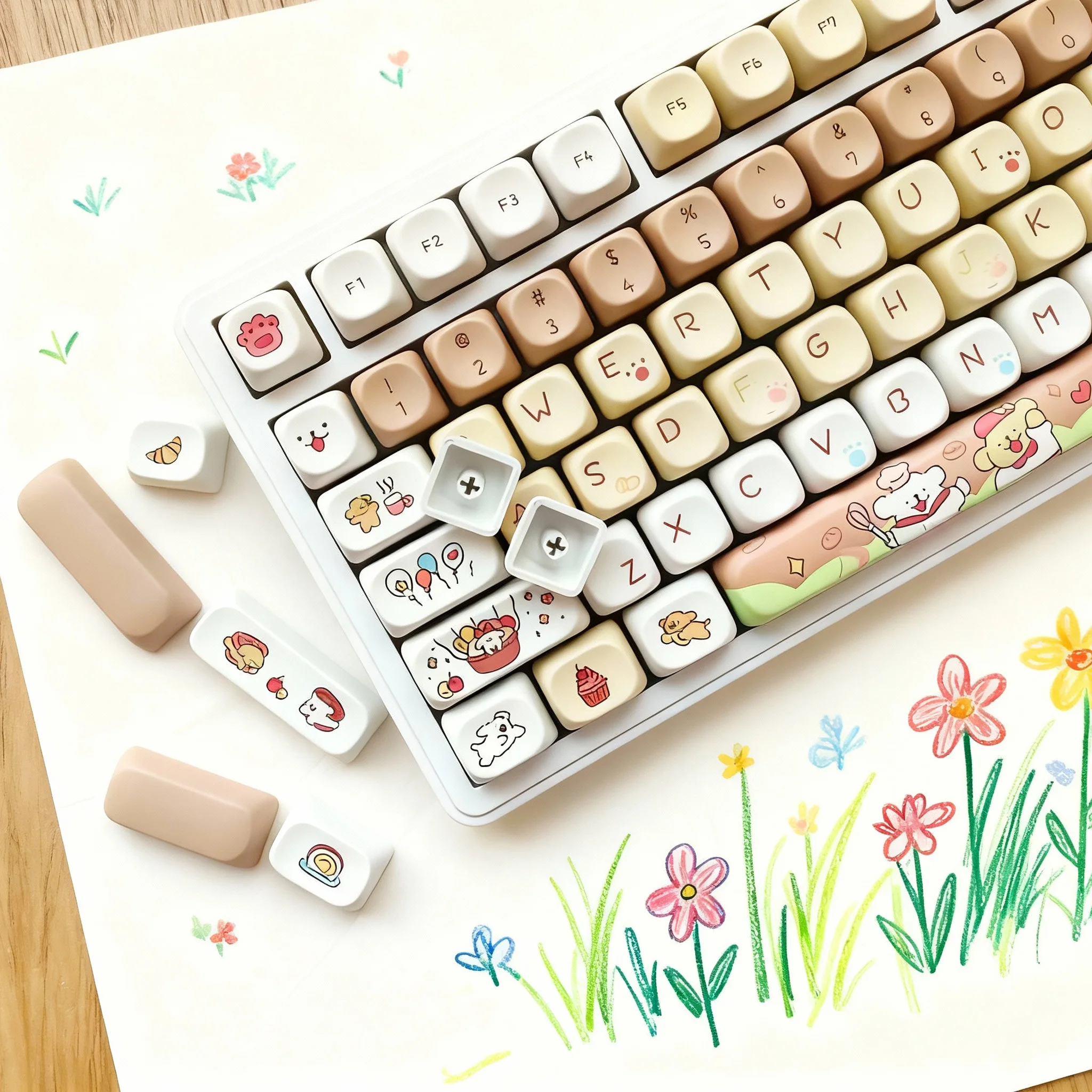 Comprar Teclas PBT de sublimación de tinte personalizadas, teclas bonitas de cachorros de Chocolate con perfil MOA para teclado mecánico Cherry Gateron MX Switch